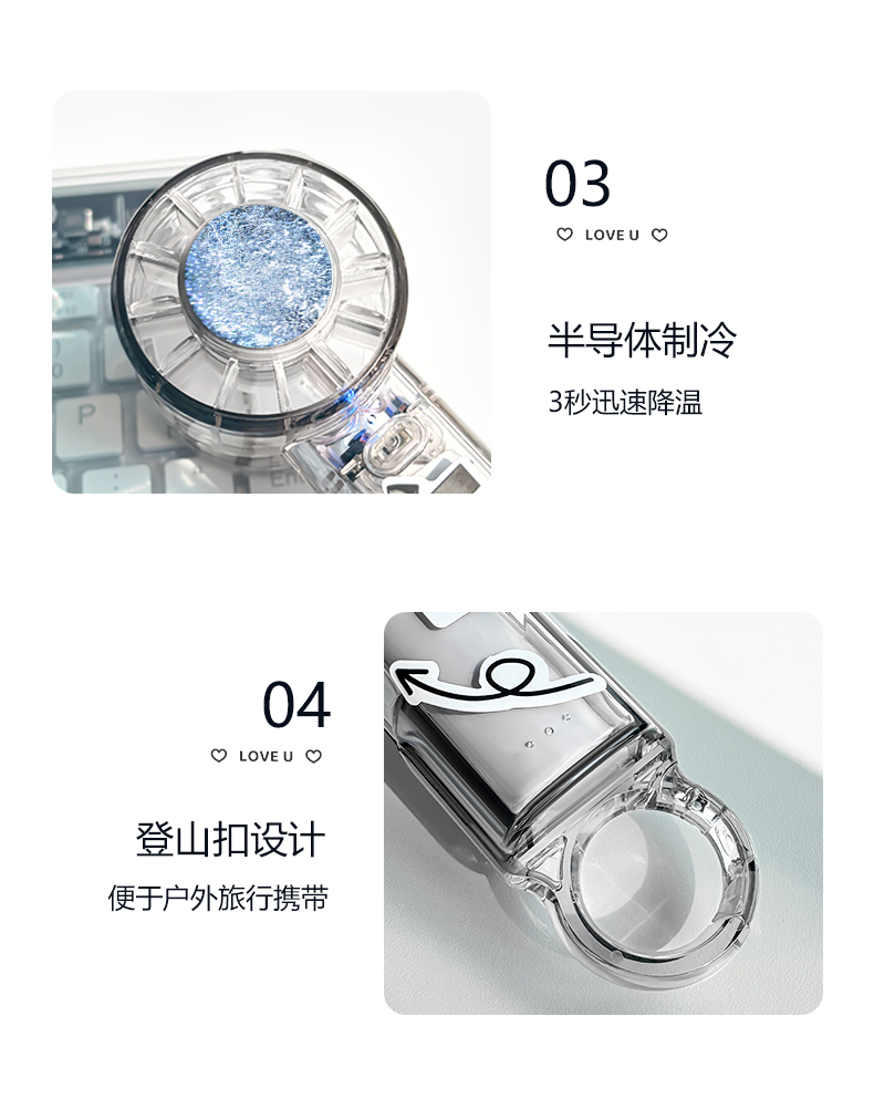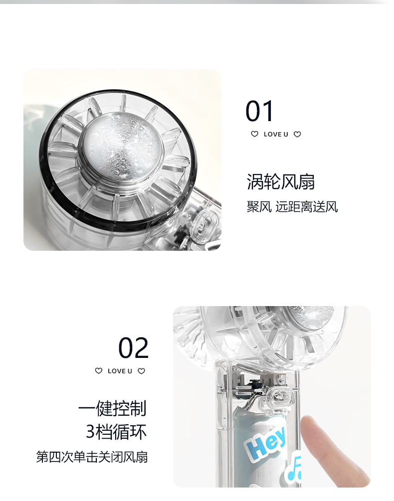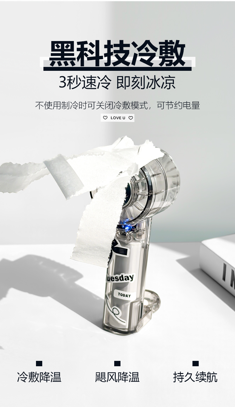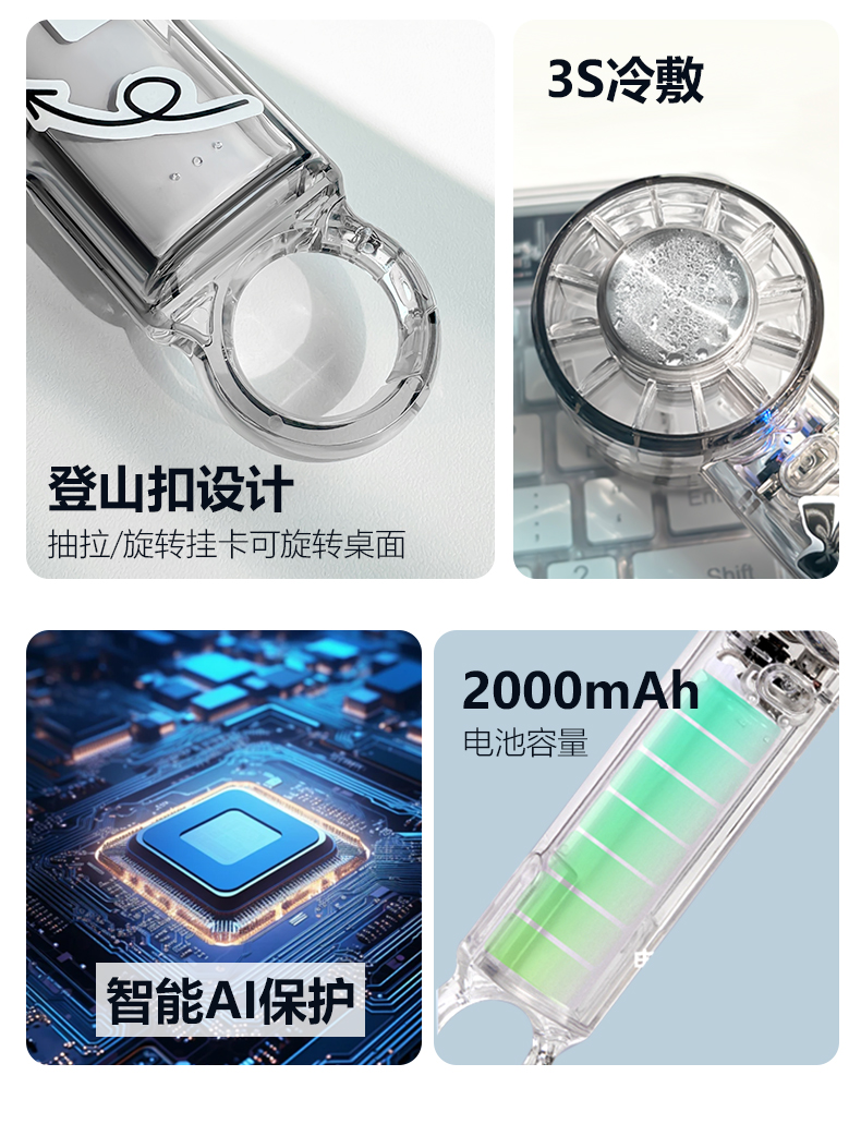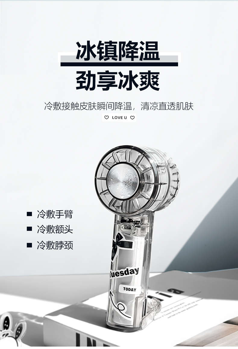 透明手持制冷小风扇2025新款便携式随身迷你涡轮风扇学生上课静音办公室桌上usb电风扇超大风力户外降温神器