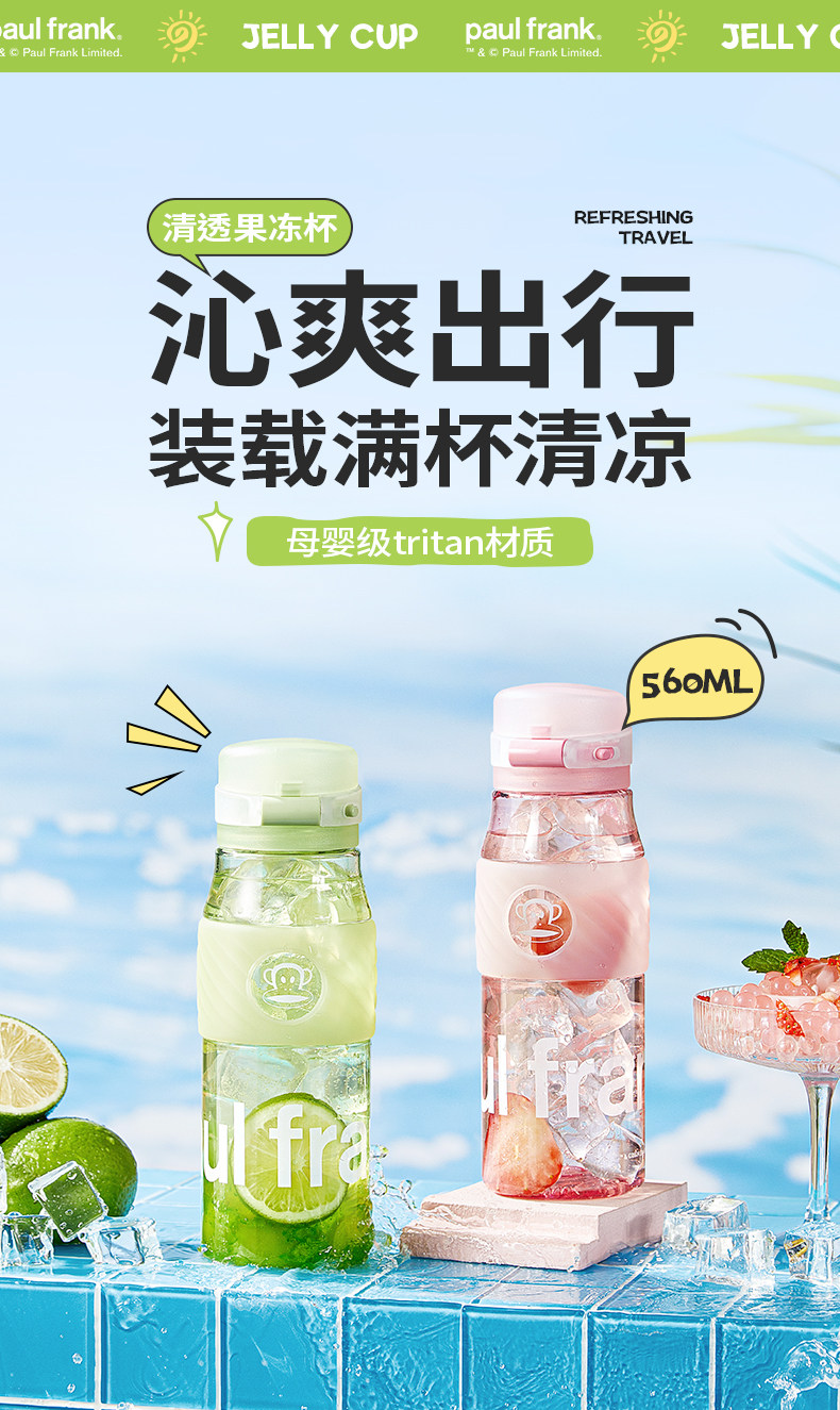 大嘴猴tritan水杯女生夏天学生杯子便携男生运动上学塑料随手杯