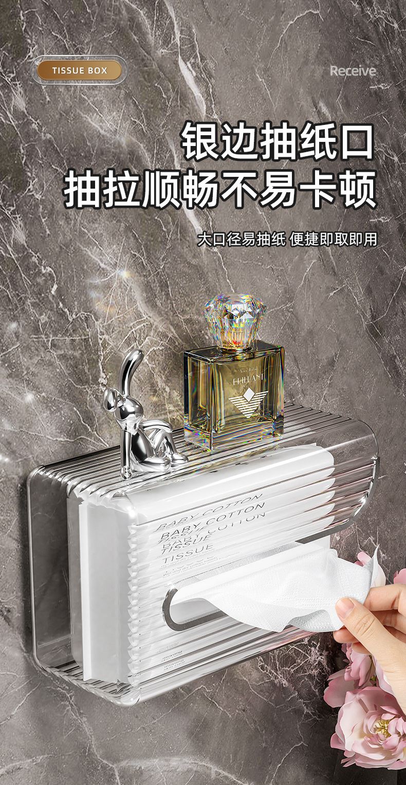 卫生间洗脸巾收纳盒壁挂式浴室纸巾厕所抽纸盒洁面巾化妆棉置物架