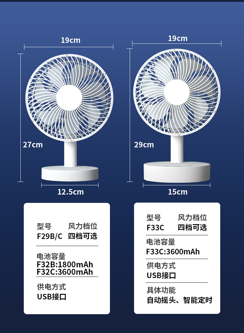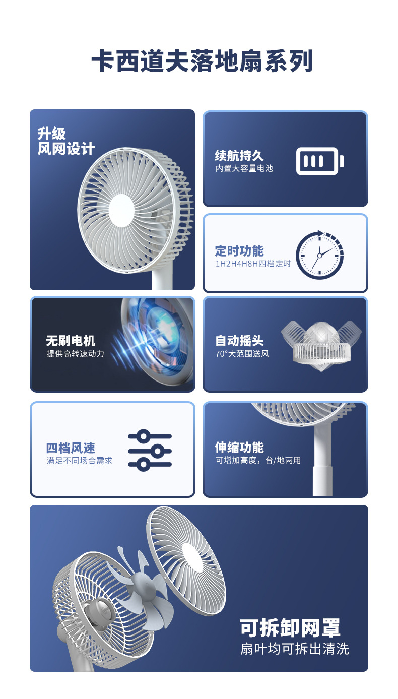 卡西道夫桌面小风扇充电usb电风扇办公室静音摇头宿舍迷你台式型