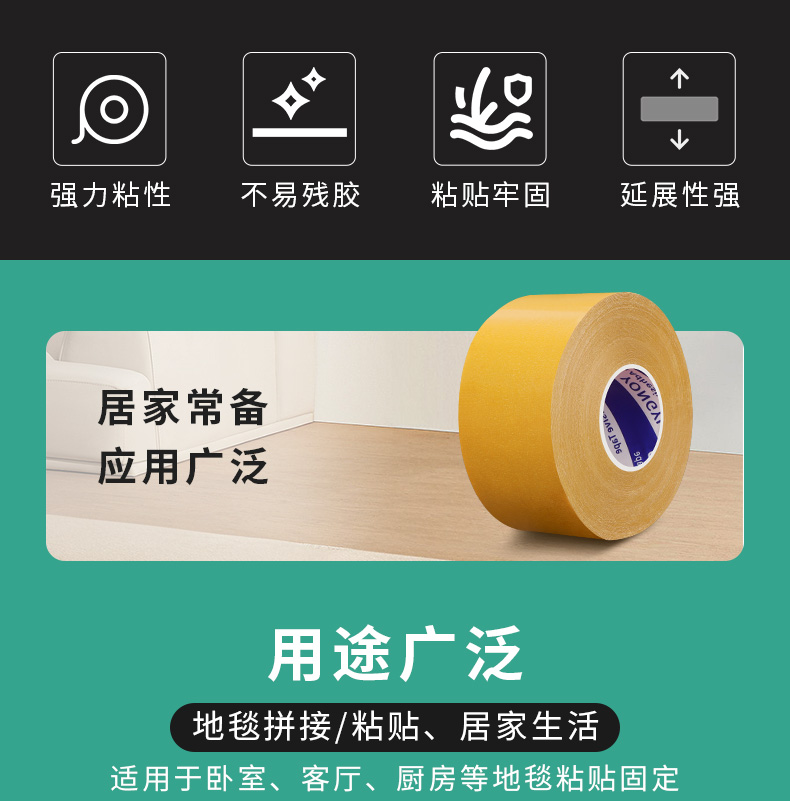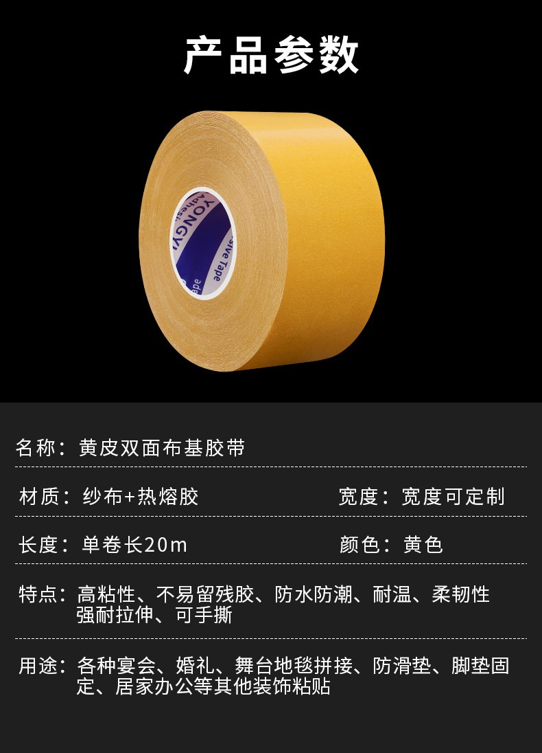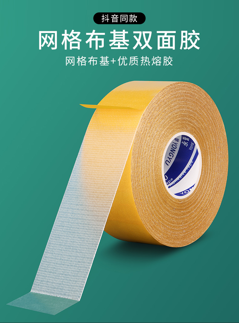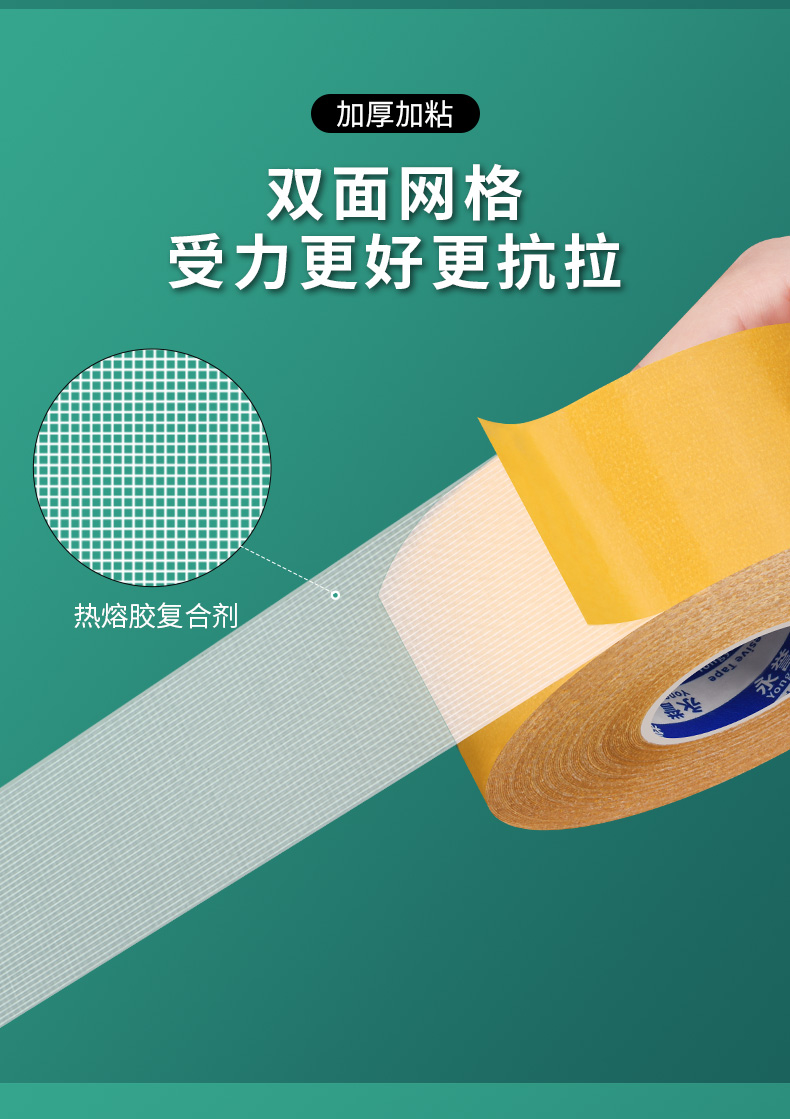 高粘度双面布基胶带加厚网格纤维强力固定地板革防滑垫双面胶布防水不留痕拼接红毯气球婚庆透明春联双面胶带
