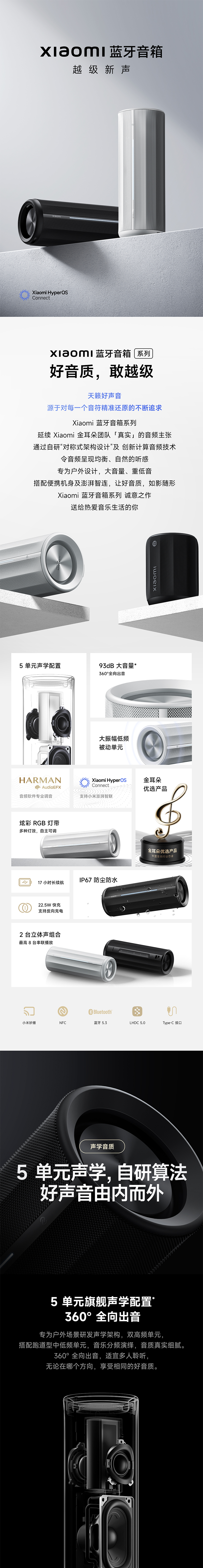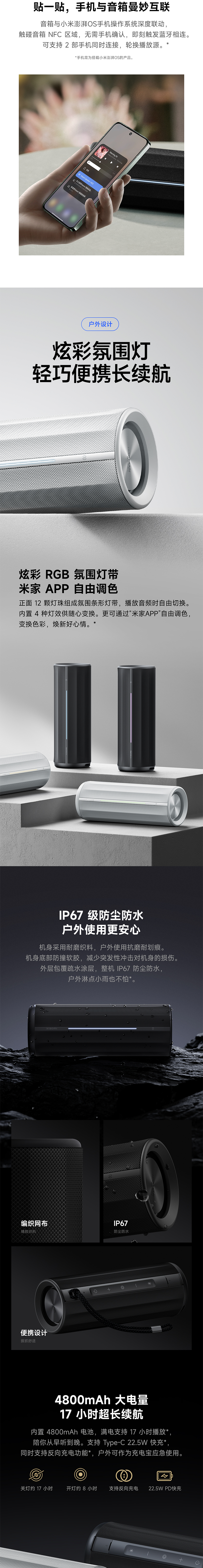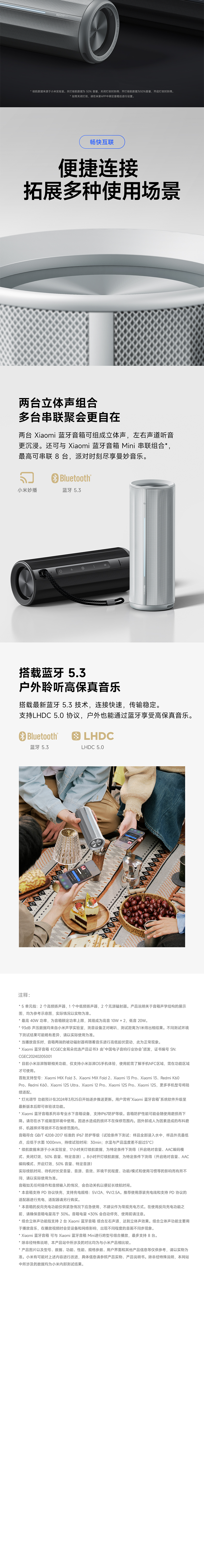 小米Xiaomi蓝牙音箱音响无线家用户外防水防尘轻巧便携随身低音炮