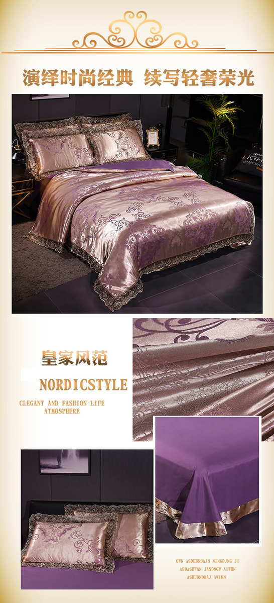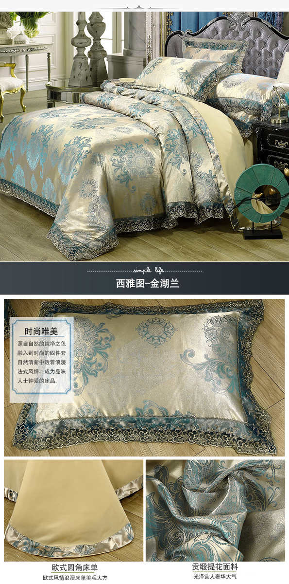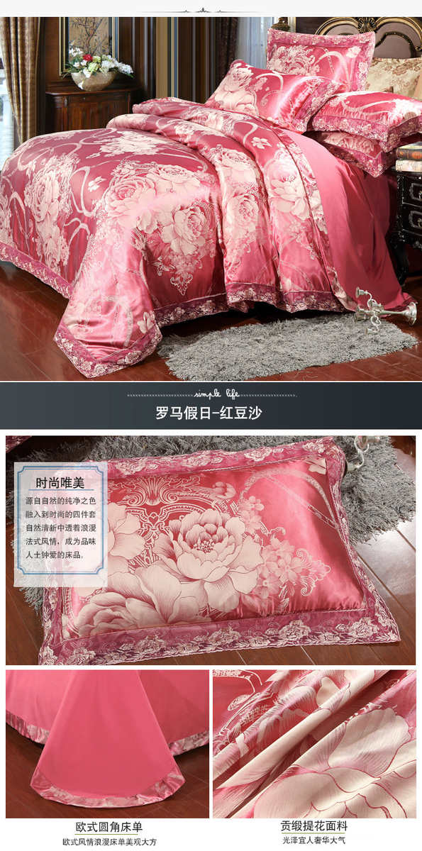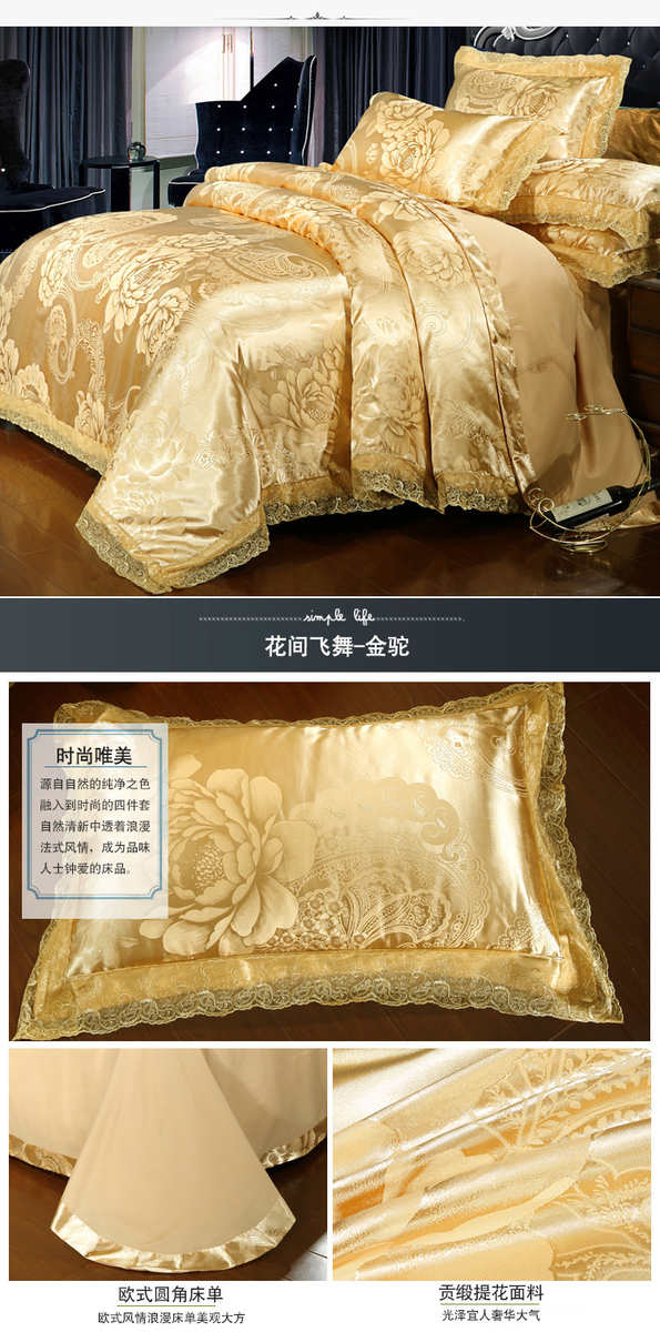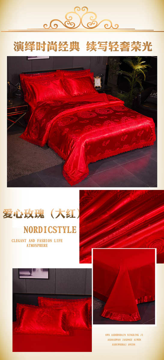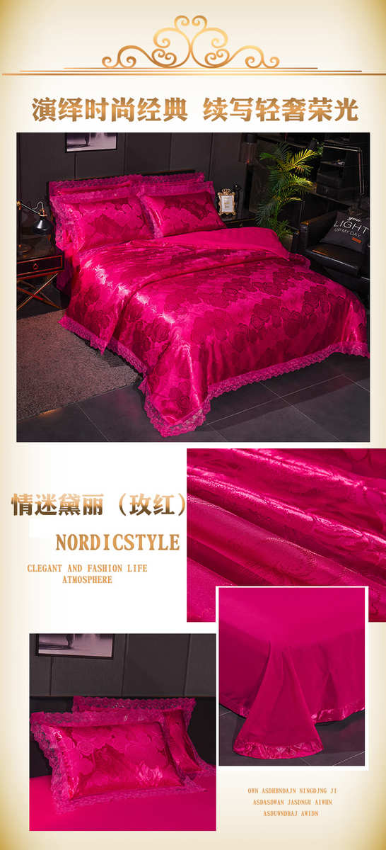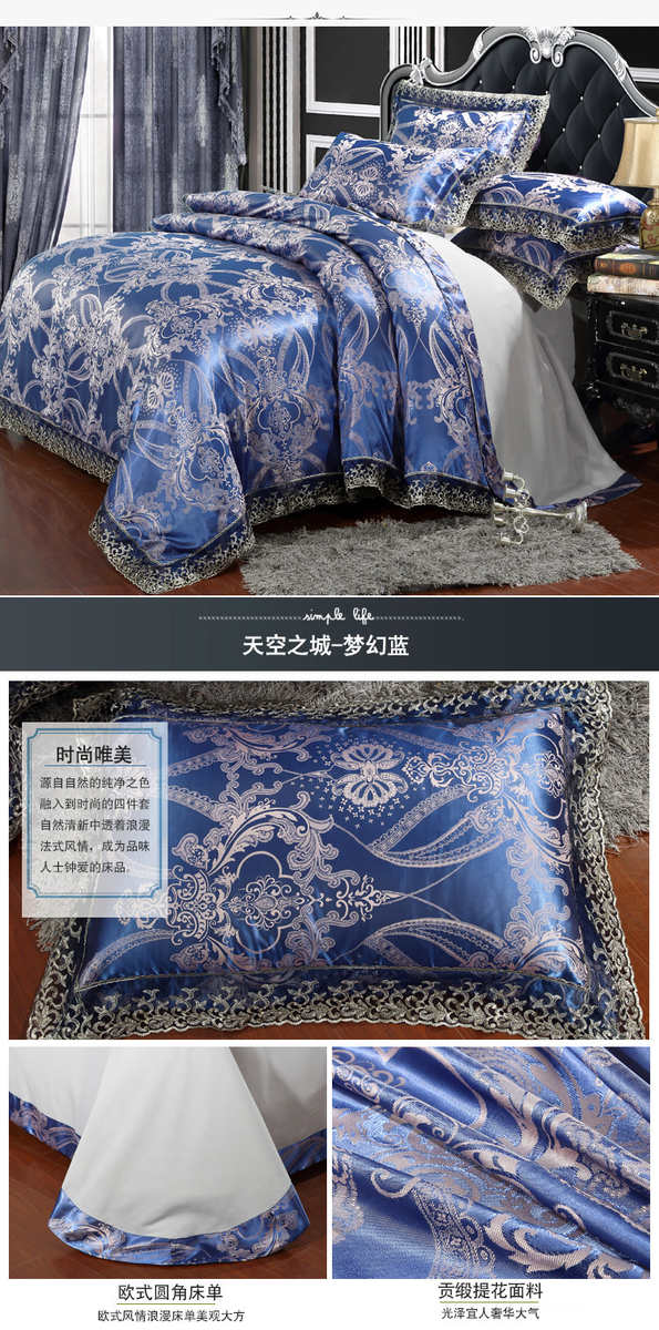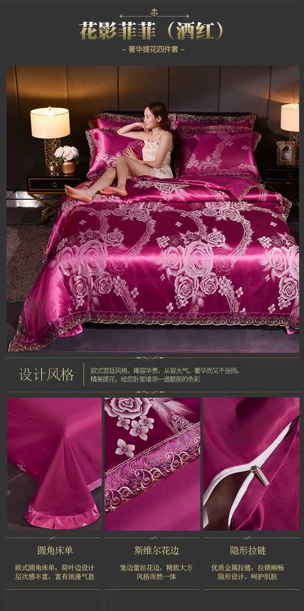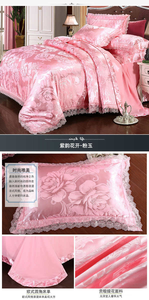 高档欧式贡缎提花四件套结婚庆宫廷蕾丝花边被套床单双人床上用品