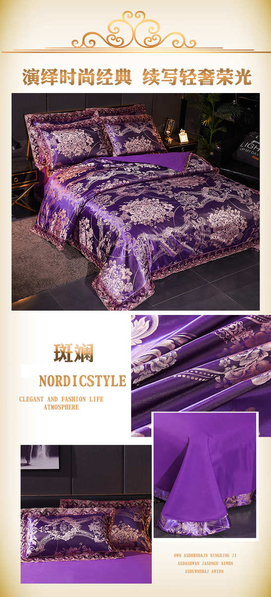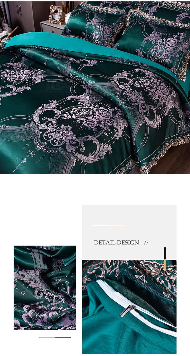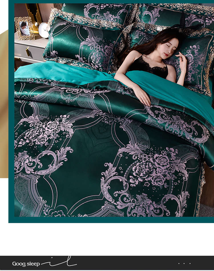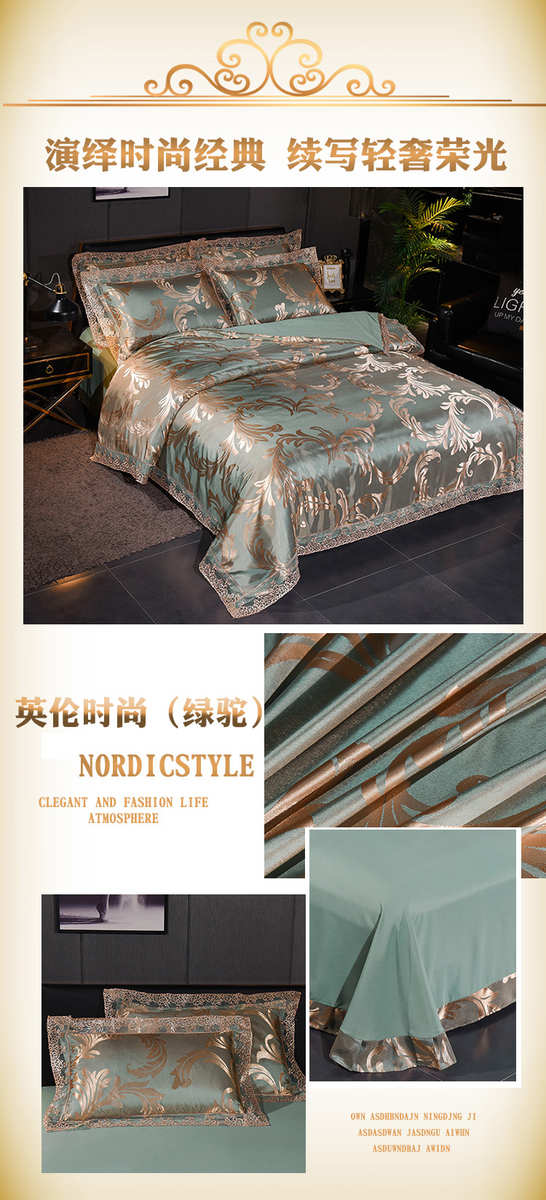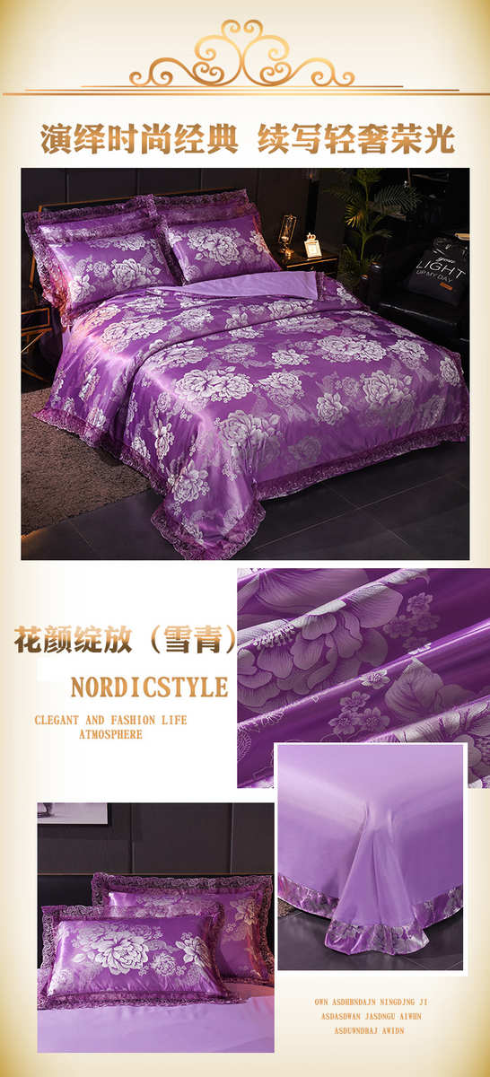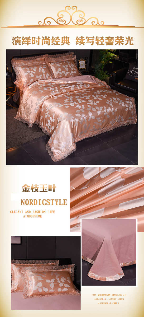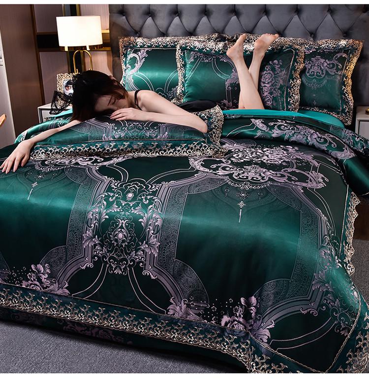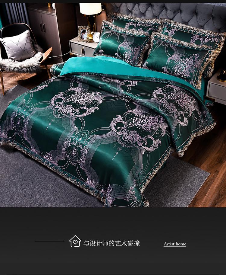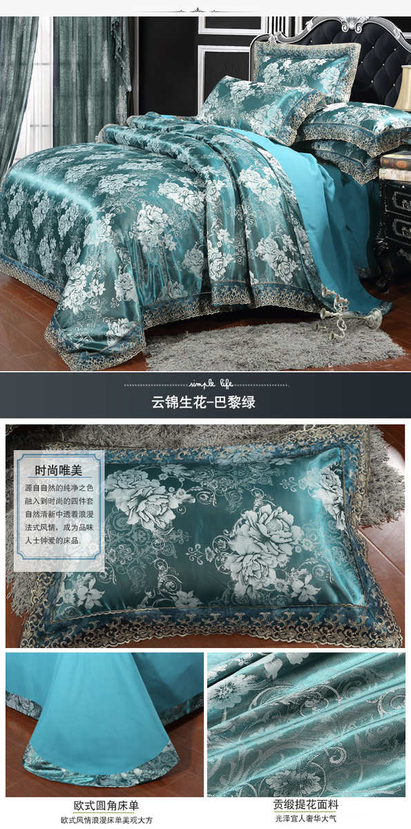 高档欧式贡缎提花四件套结婚庆宫廷蕾丝花边被套床单双人床上用品