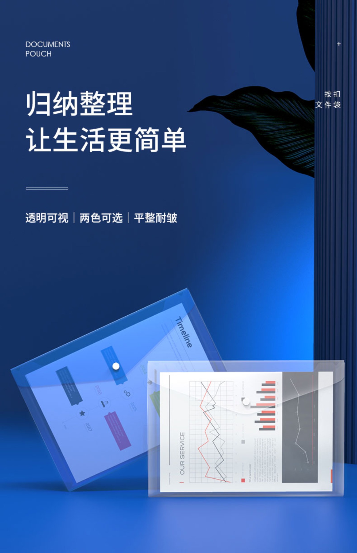 加厚透明A4文件袋斜纹按扣袋资料档案袋彩色文件袋办公文件收纳袋