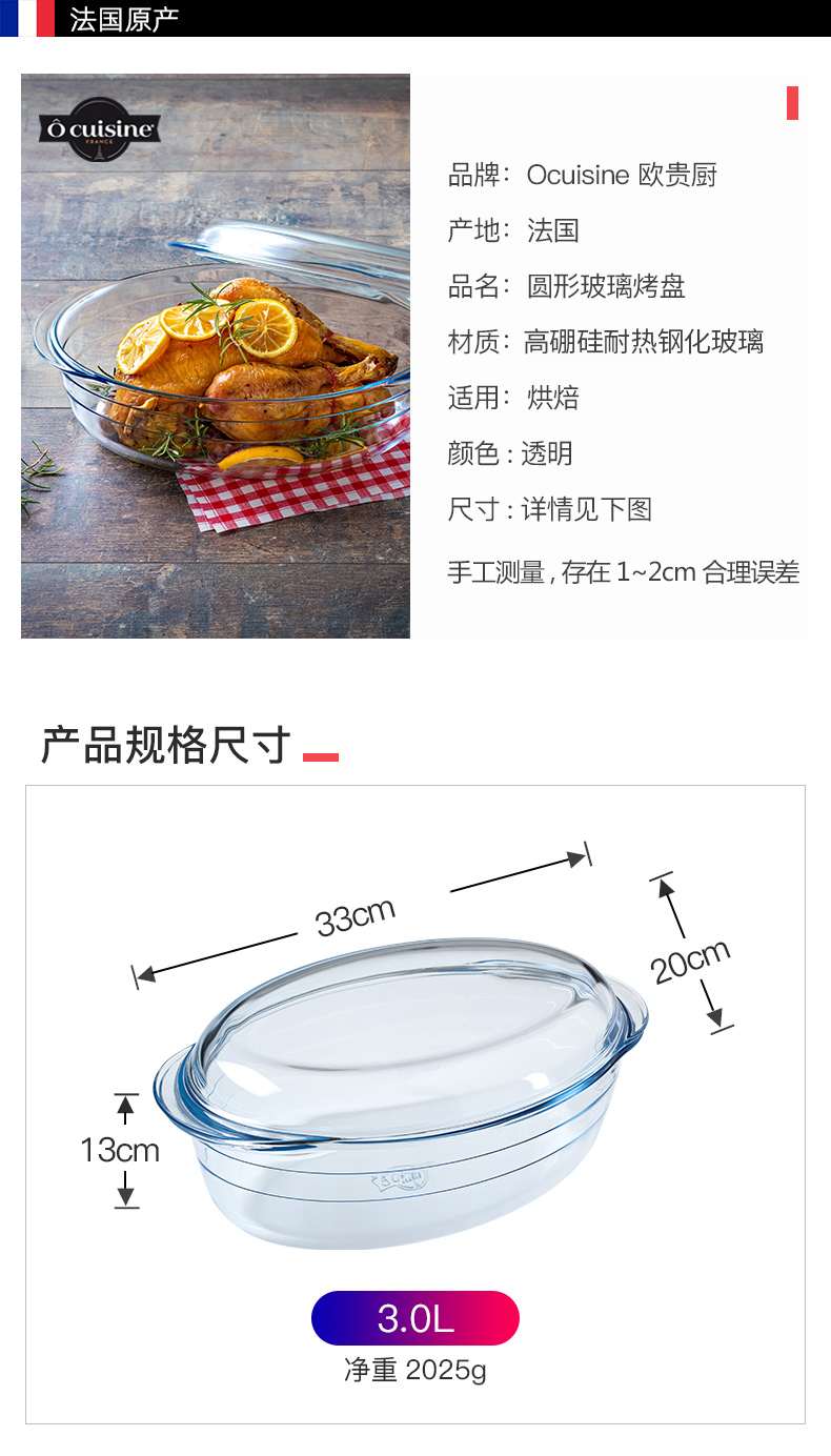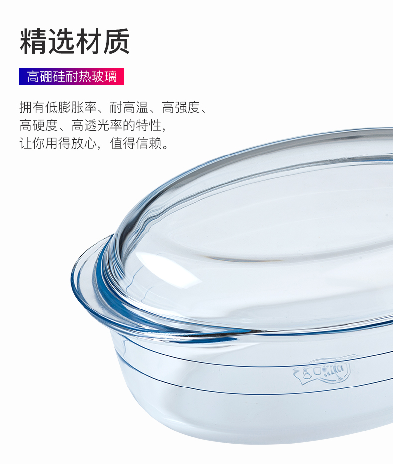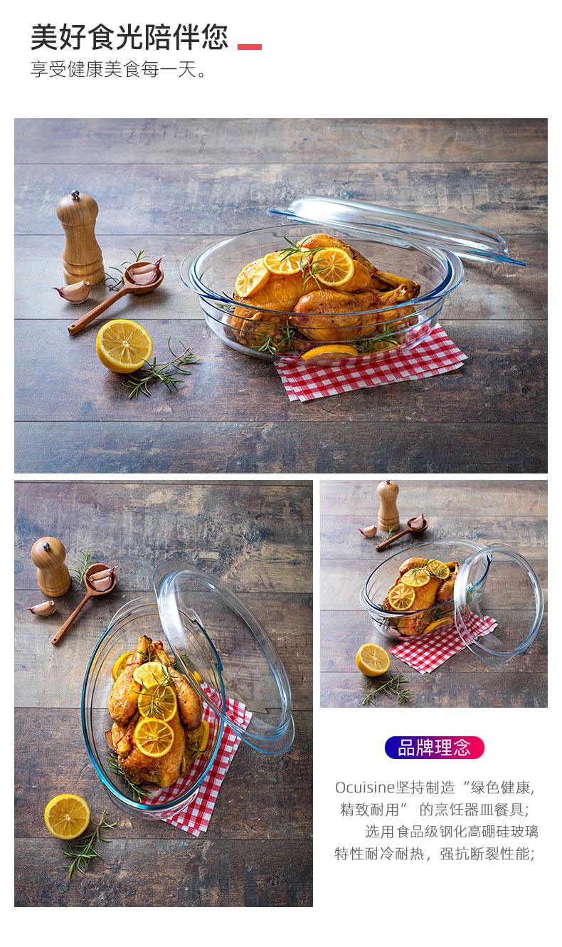 欧贵厨微波炉蒸烤箱专用耐热玻璃长方形烤盘家用蒸鱼带盖盘子餐具