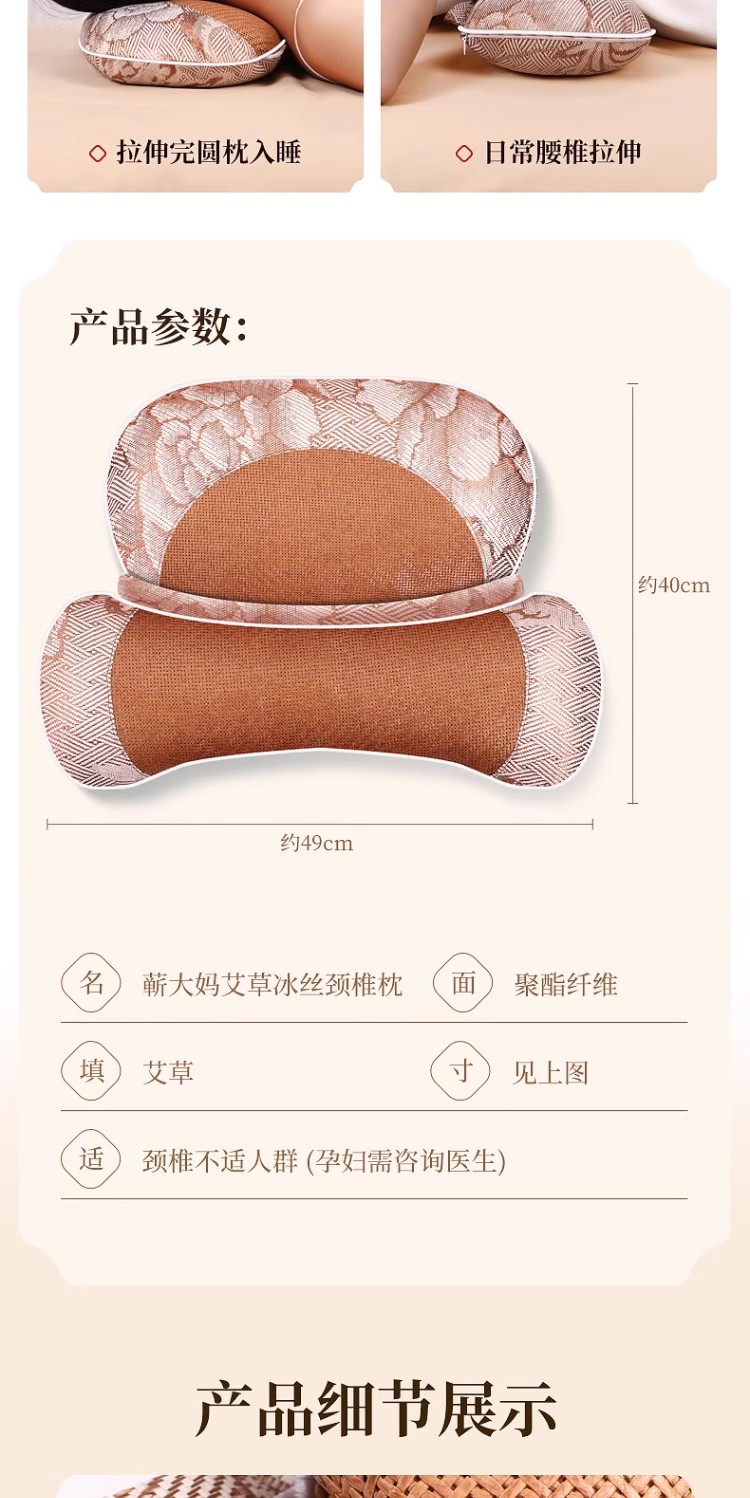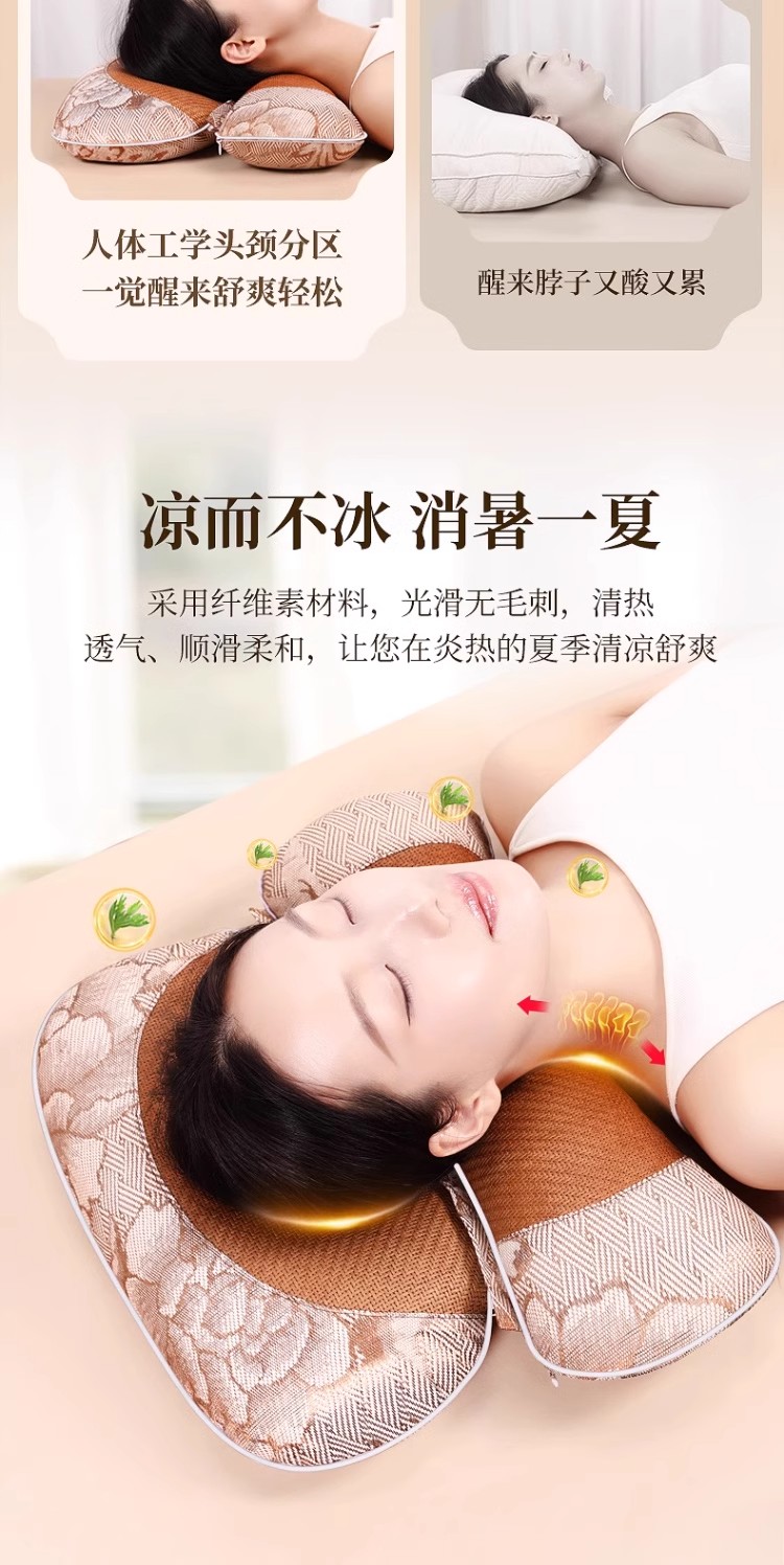 2025新款艾草护颈椎枕助睡眠睡觉夏季透气冰丝凉席可拆分艾叶枕头