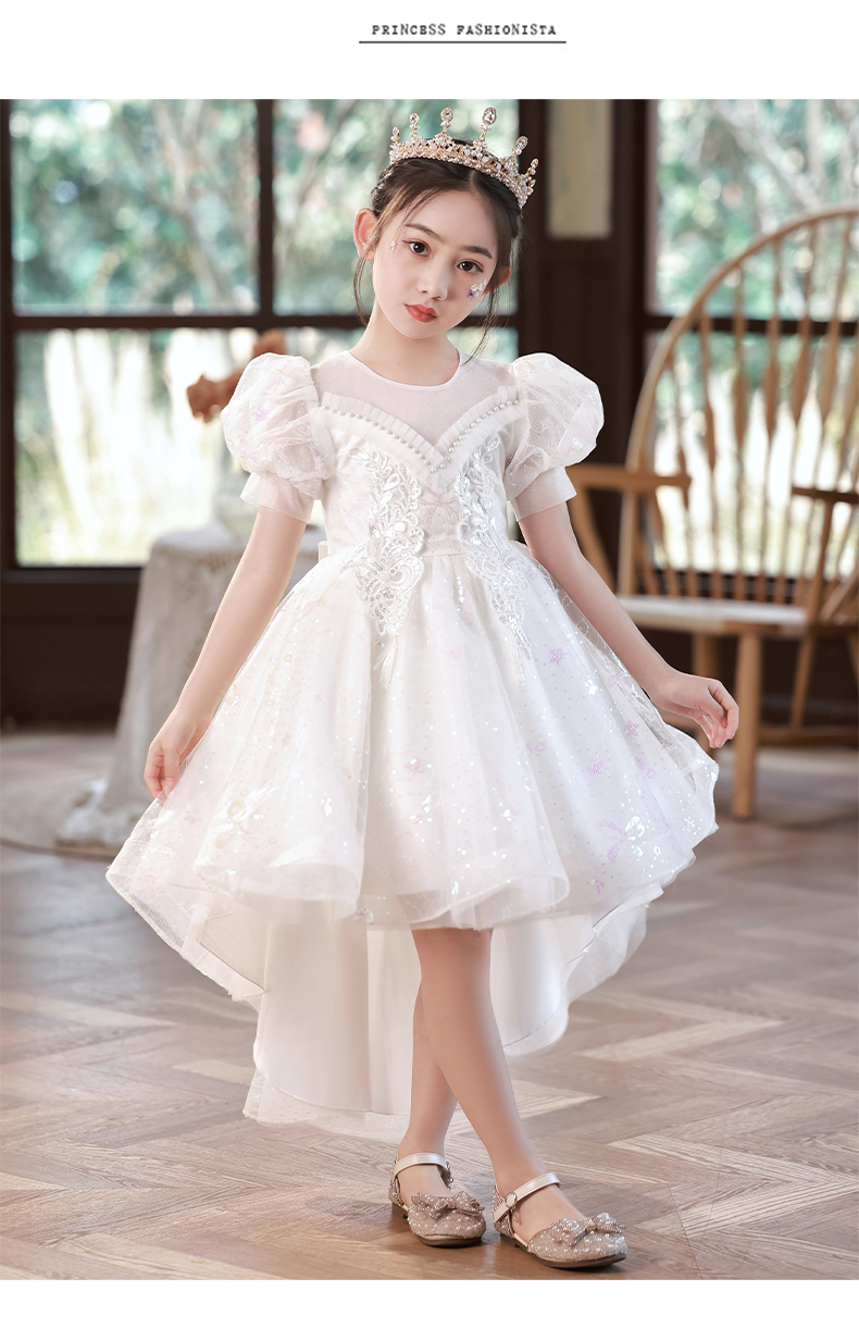 儿童拖尾晚礼服花童公主裙女童主持人婚纱蓬蓬纱女孩钢琴演出服夏