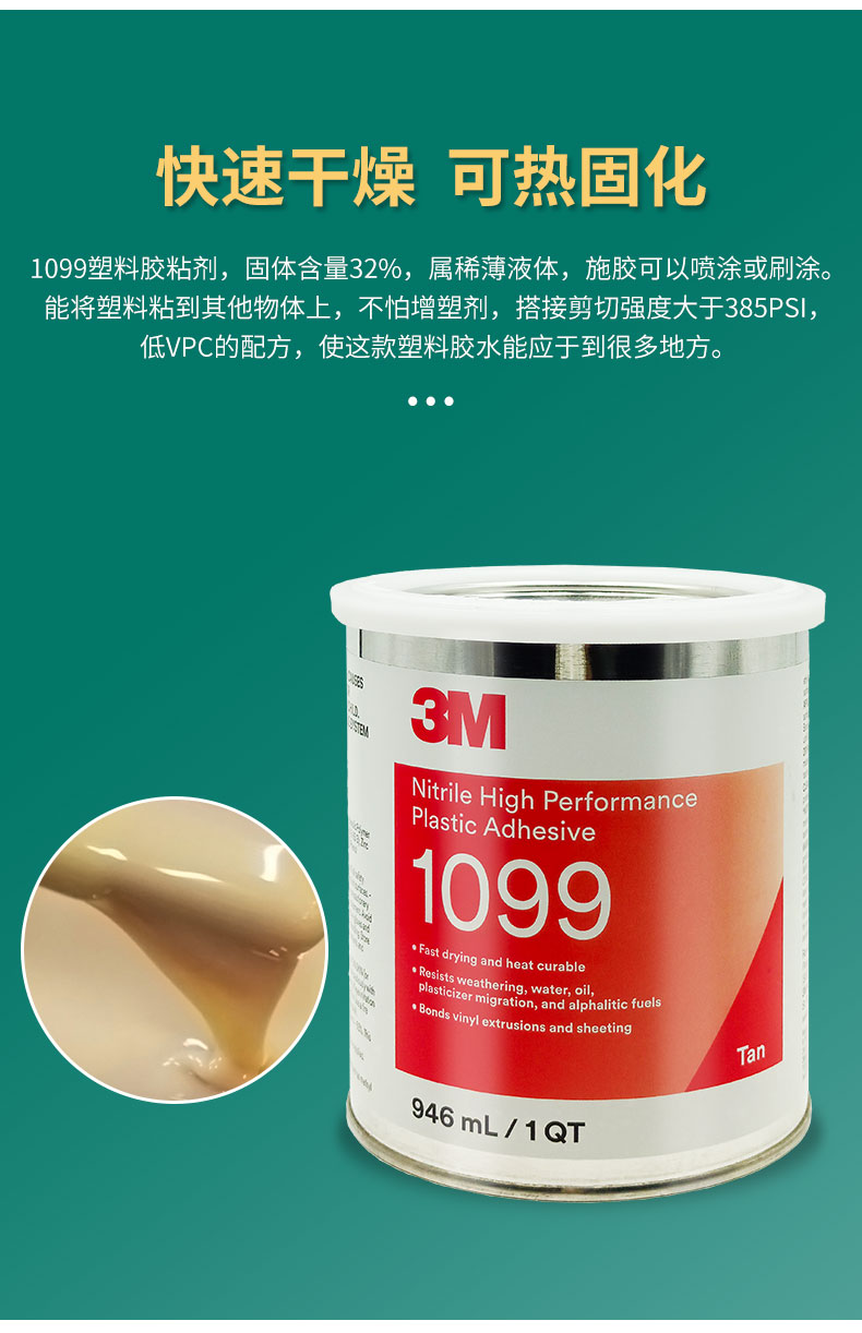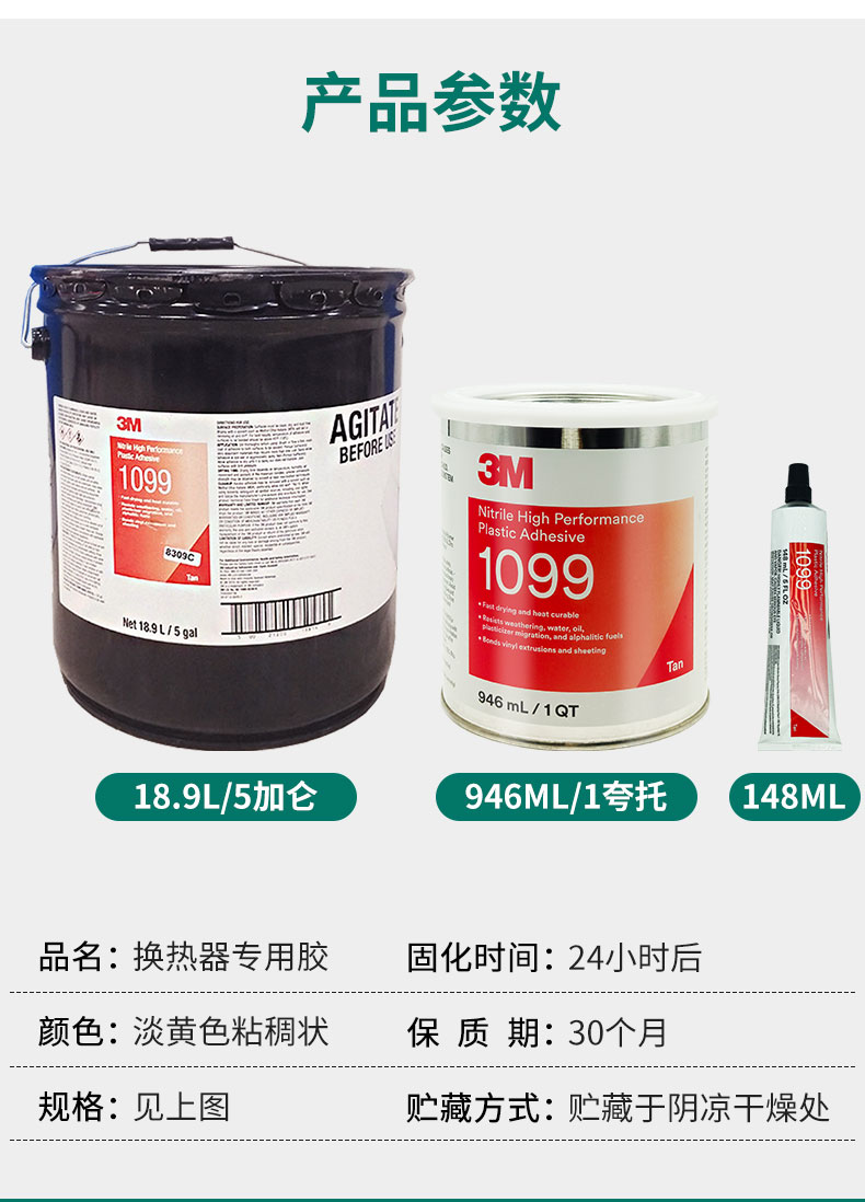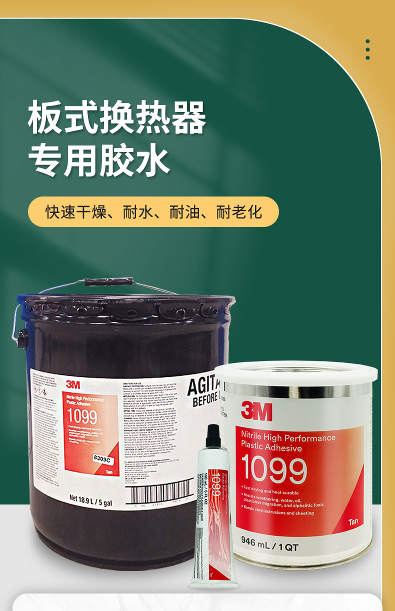 3M 1099胶水板式换热器专用橡胶塑料冷却器密封圈固定胶148ml/946ml/ 5加仑装船用密封垫专用胶 黄色氯丁胶