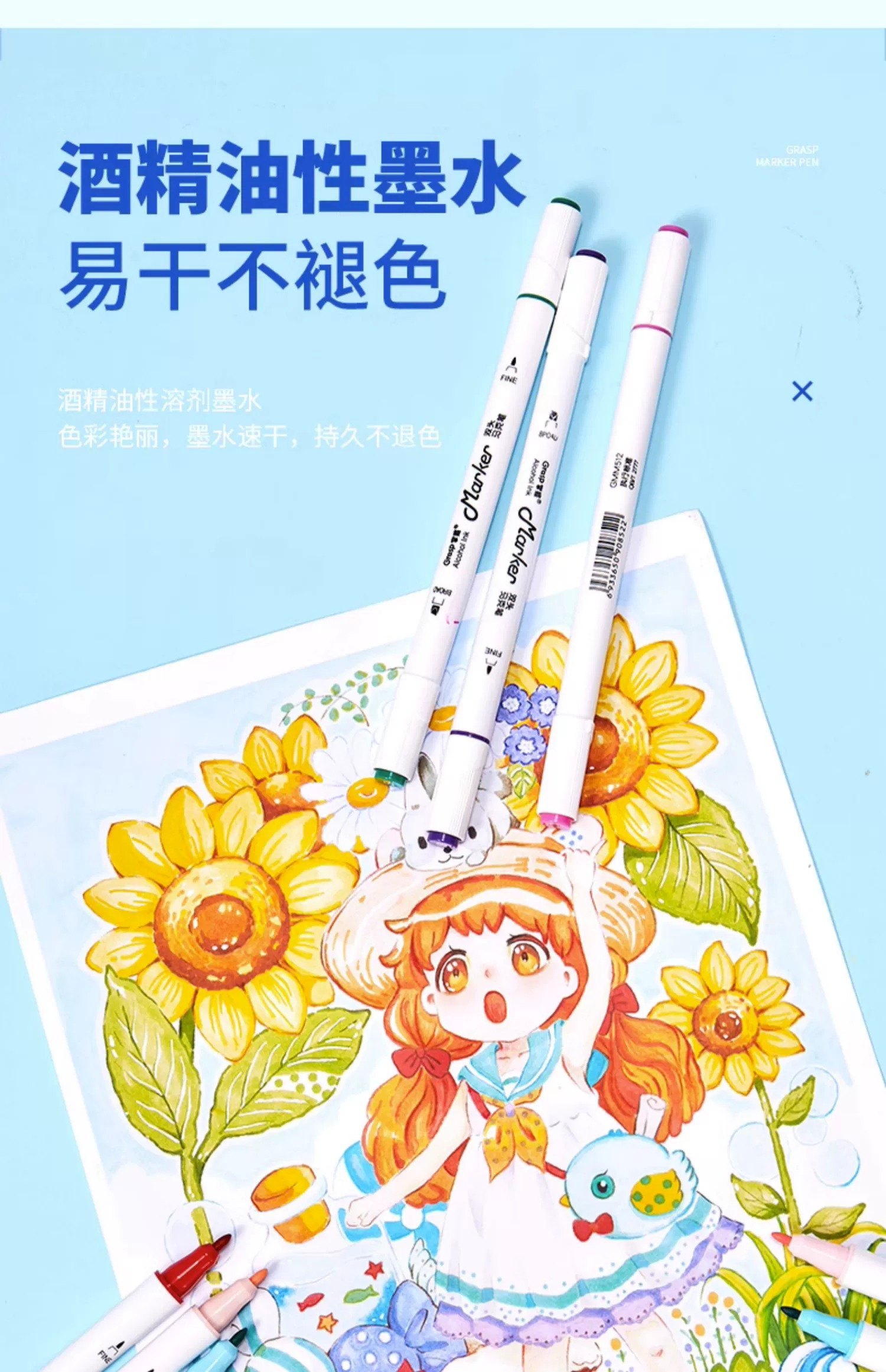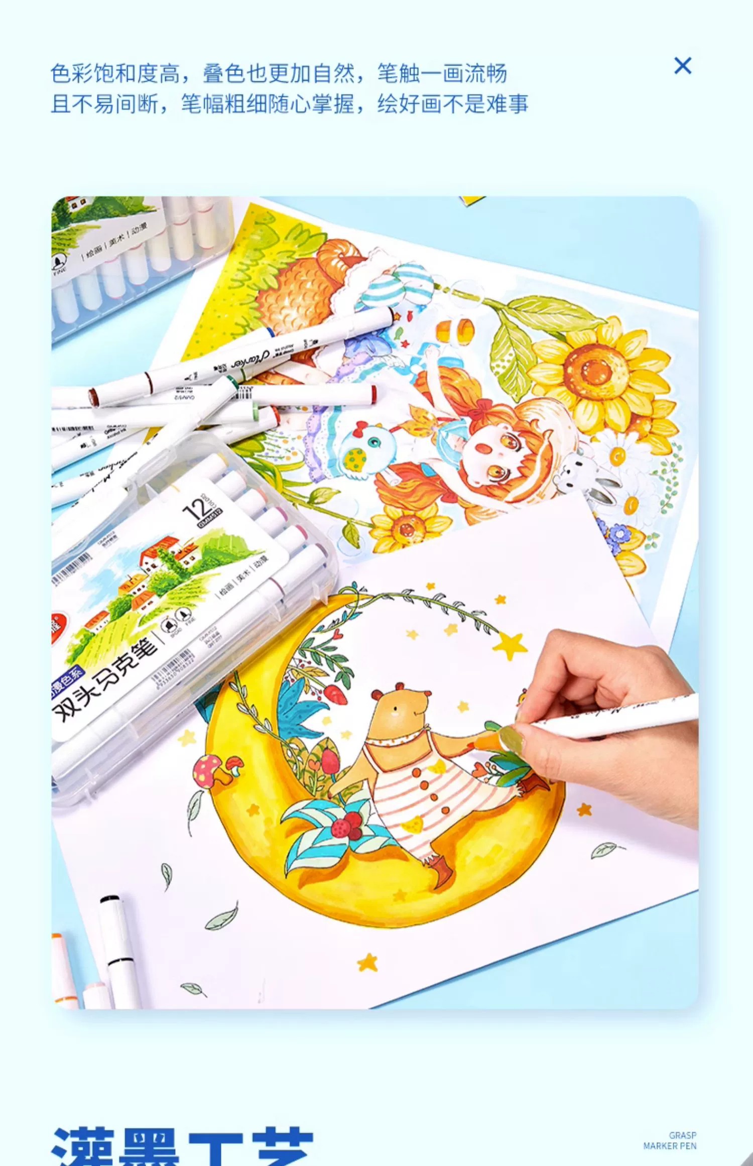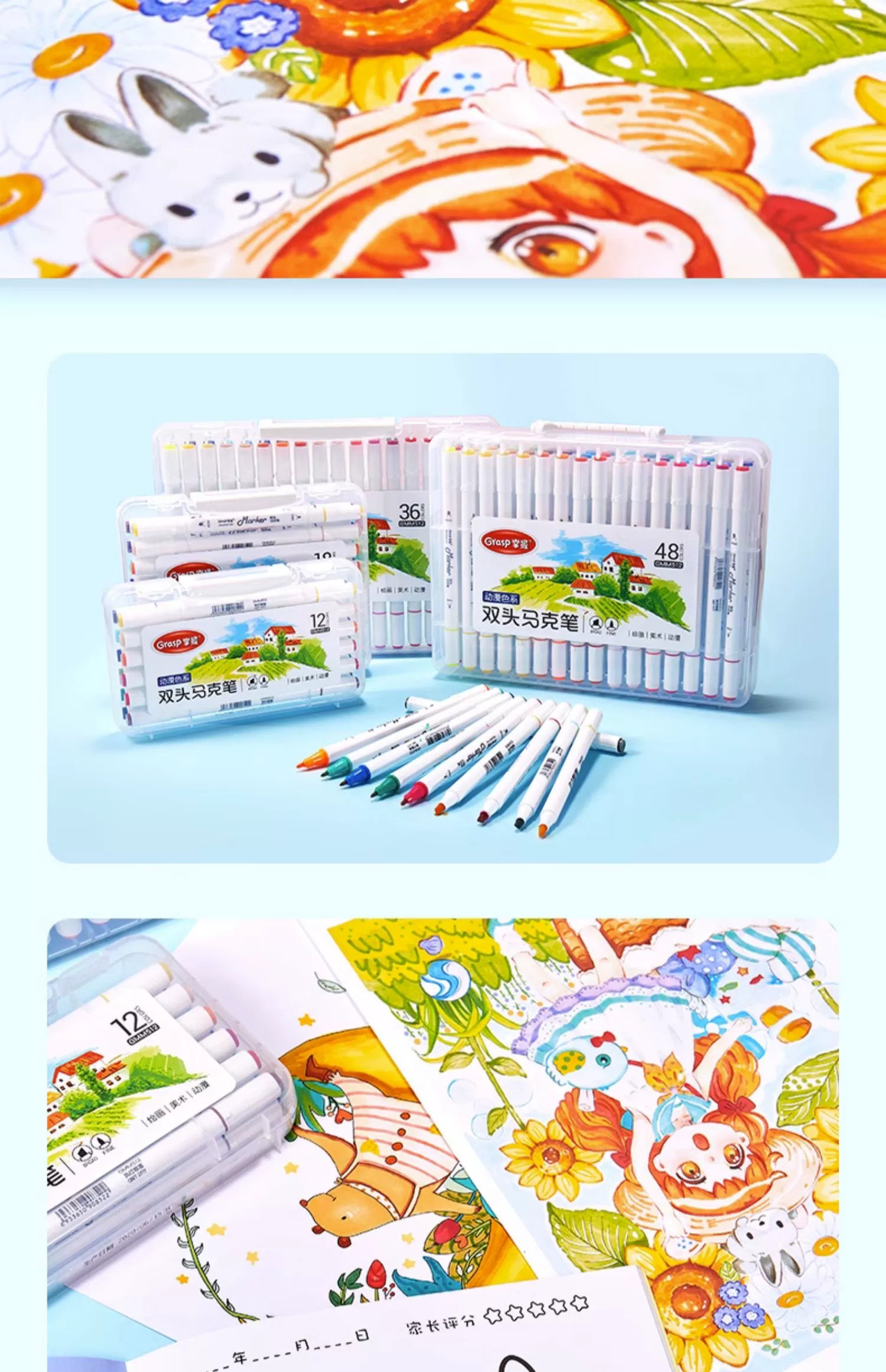 掌握双头马克笔12色18色24色36色48色 儿童绘画水彩笔 学生手绘画酒精油性马克笔套装 动漫设计彩绘笔礼盒装