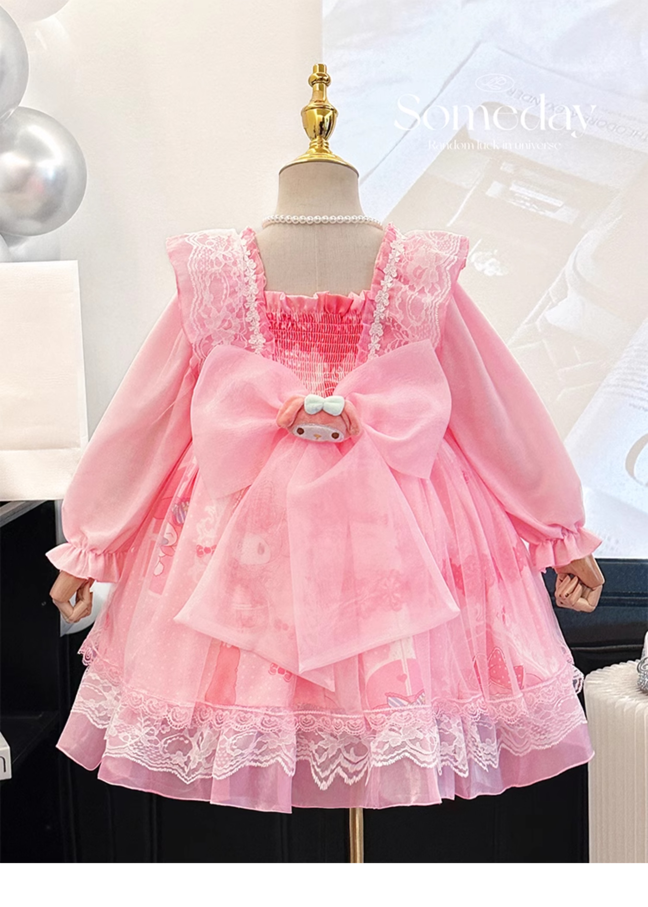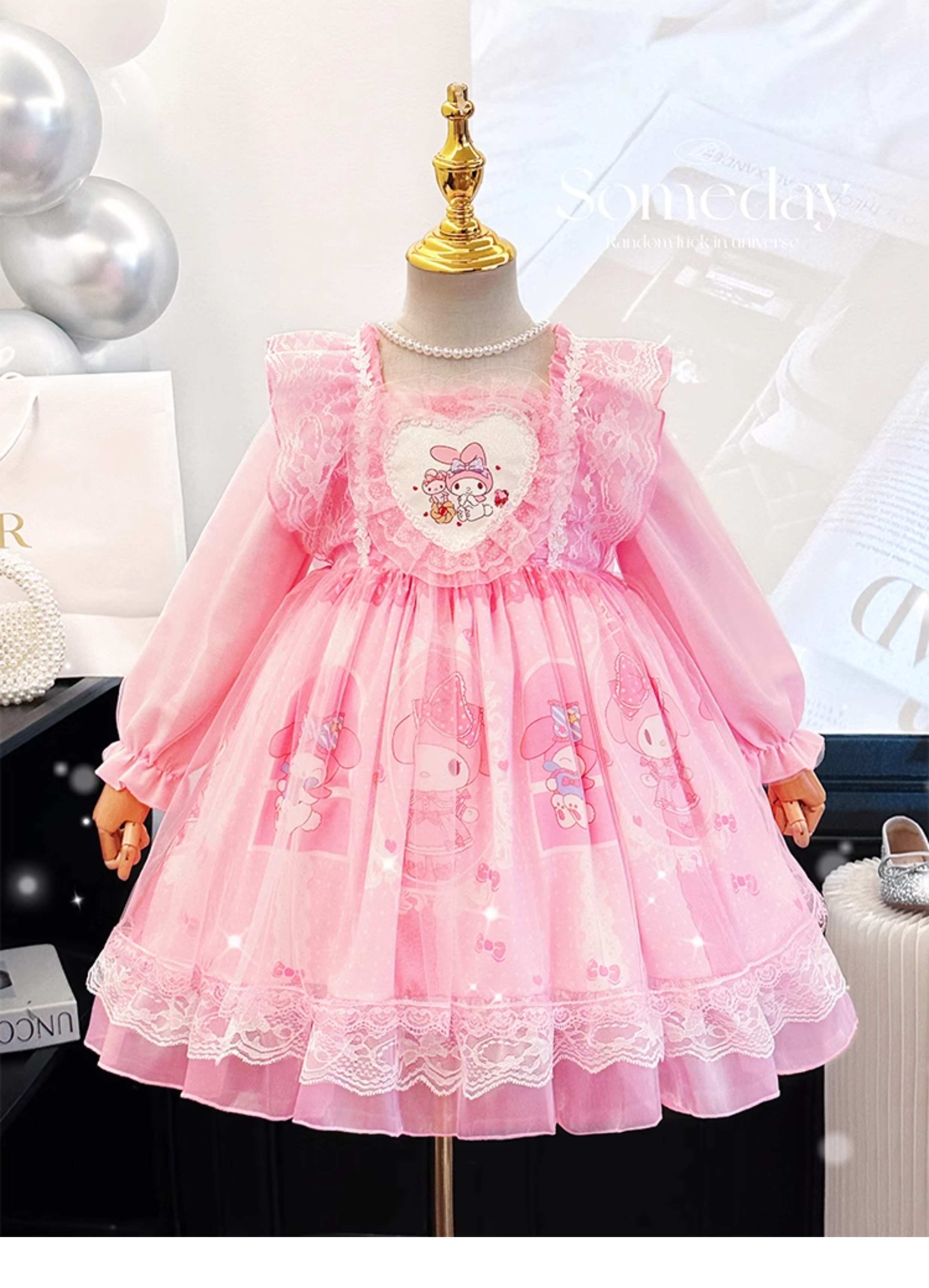 美乐蒂裙子女童莲雾粉连衣裙春秋甜美洛丽塔公主裙儿童长袖裙子潮