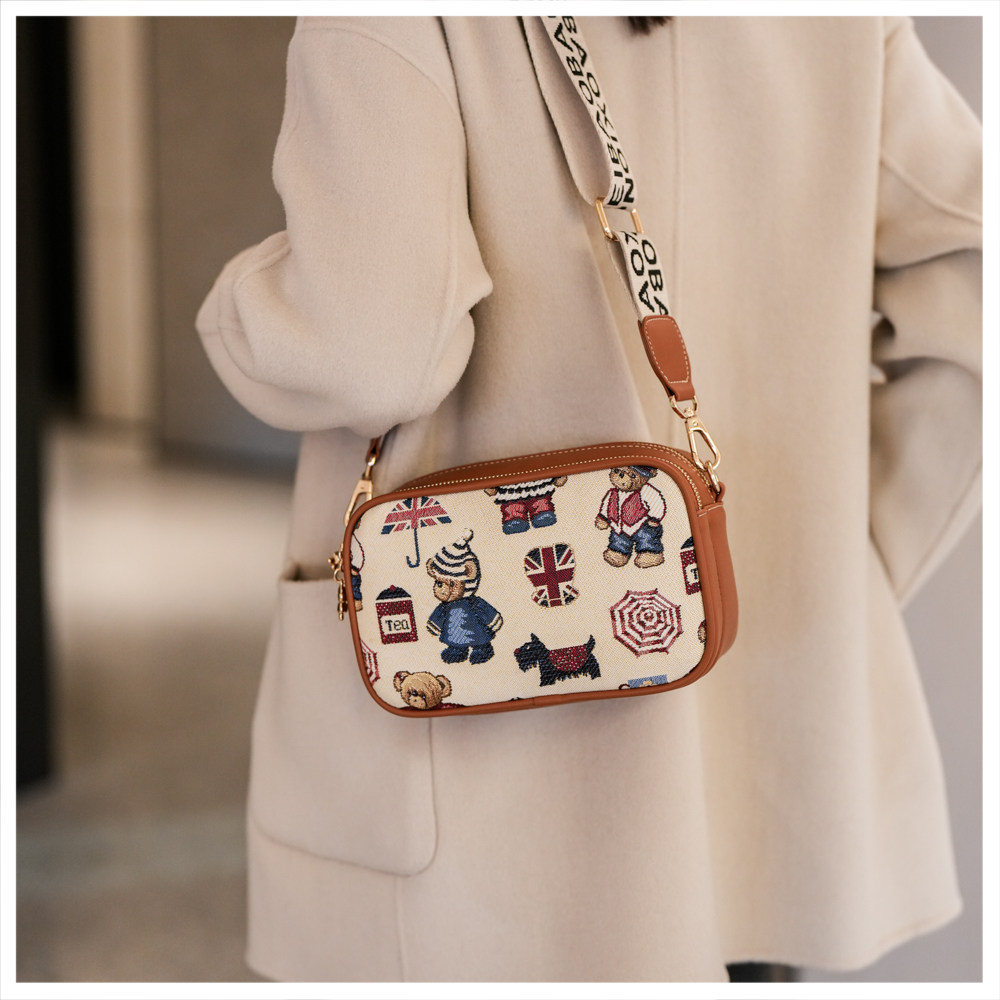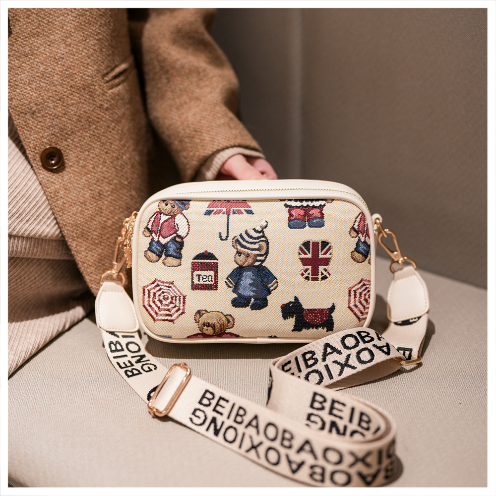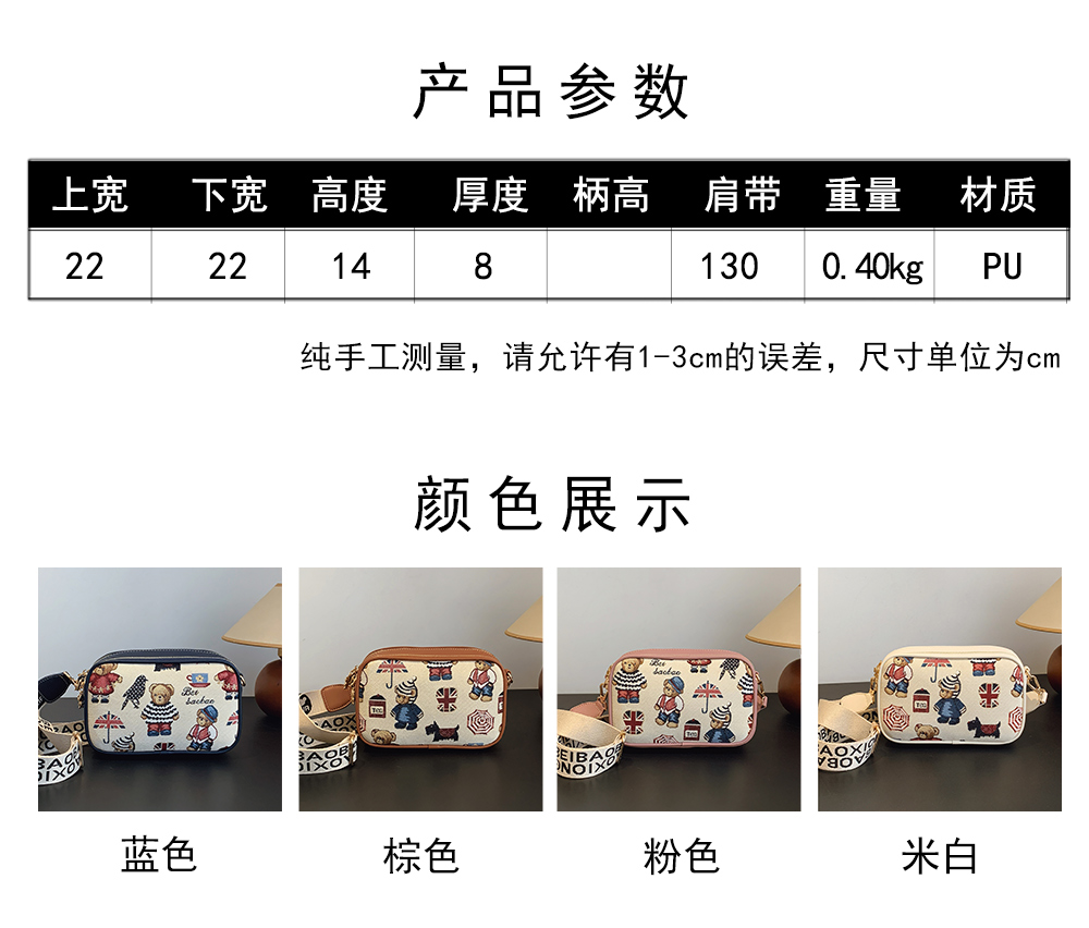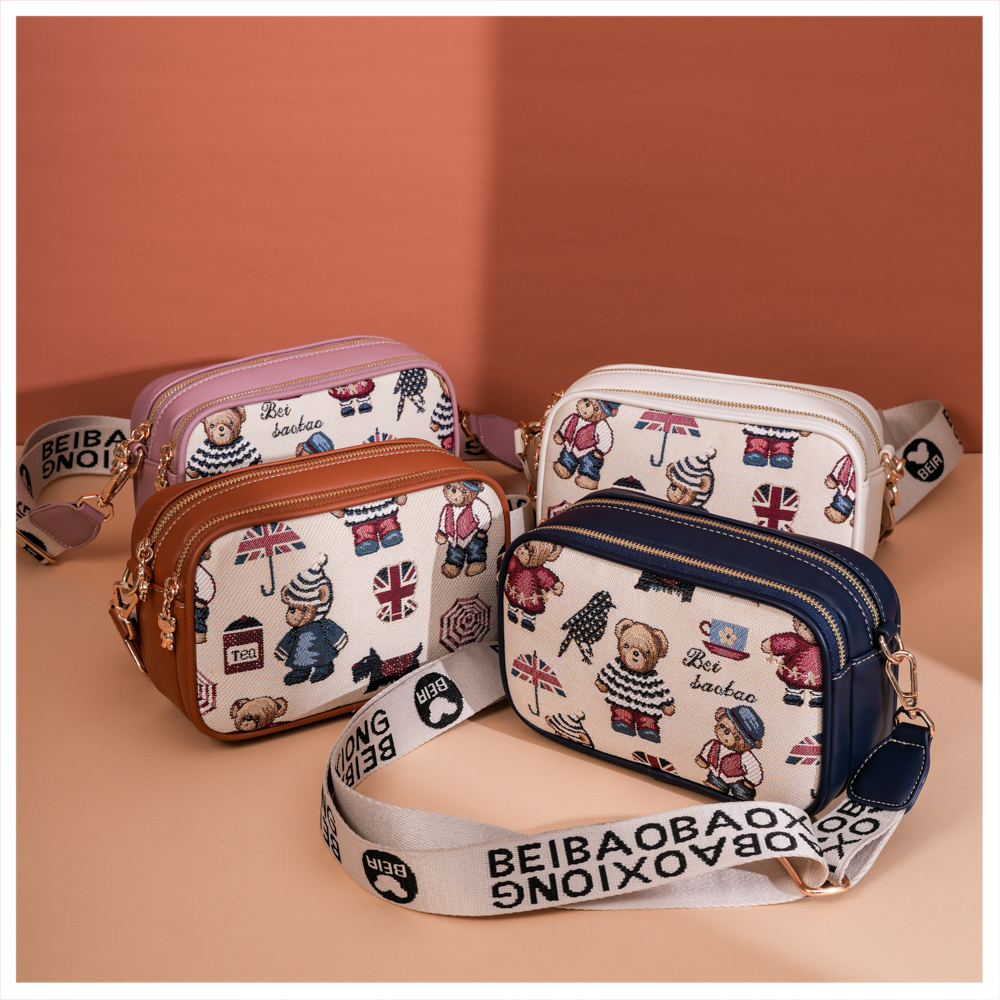 2025新款时尚百搭宽肩带斜挎包女大容量手机包卡通小熊单肩小方包