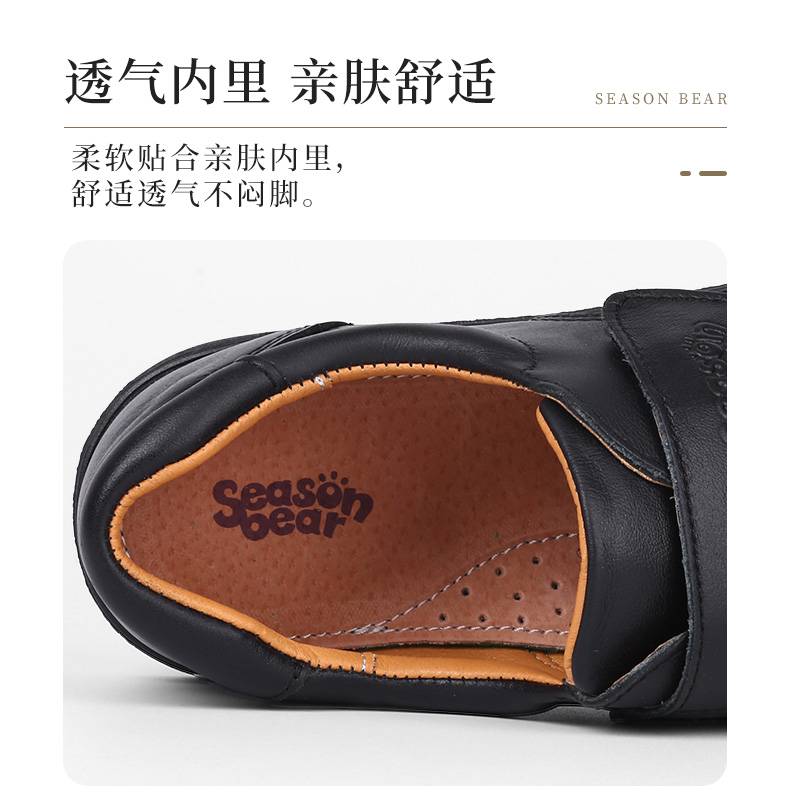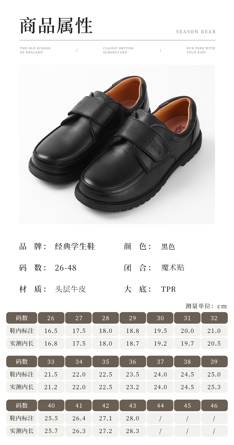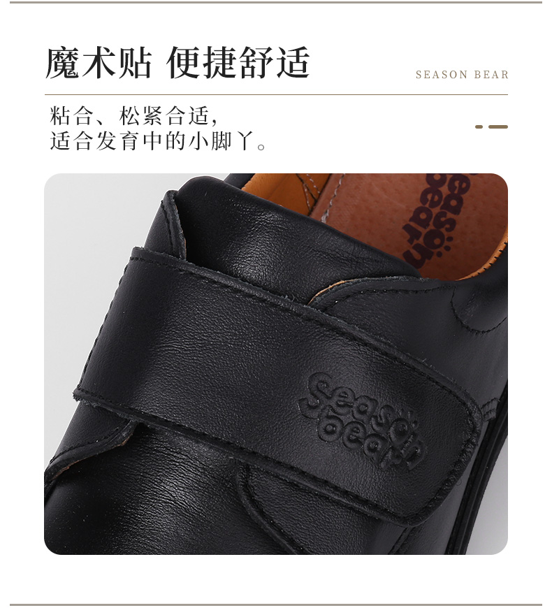 四季熊儿童演出鞋黑色真皮小黑鞋男孩2025真皮软底中大童男童皮鞋