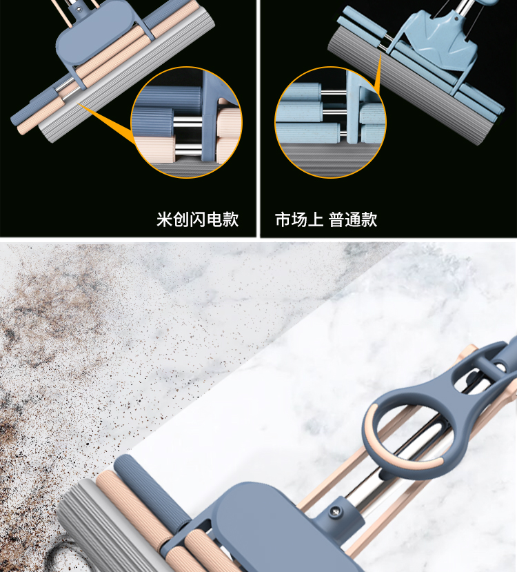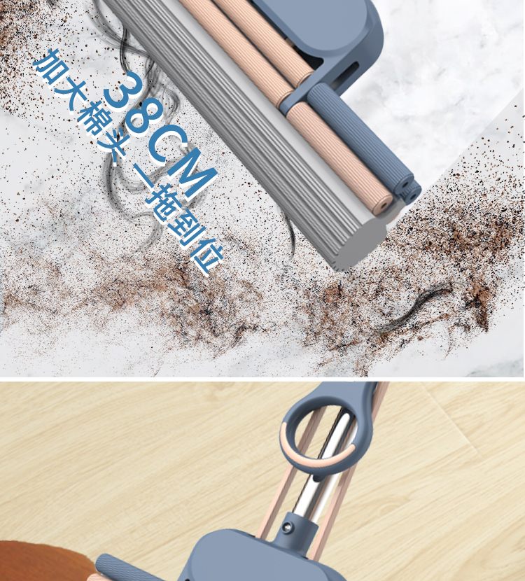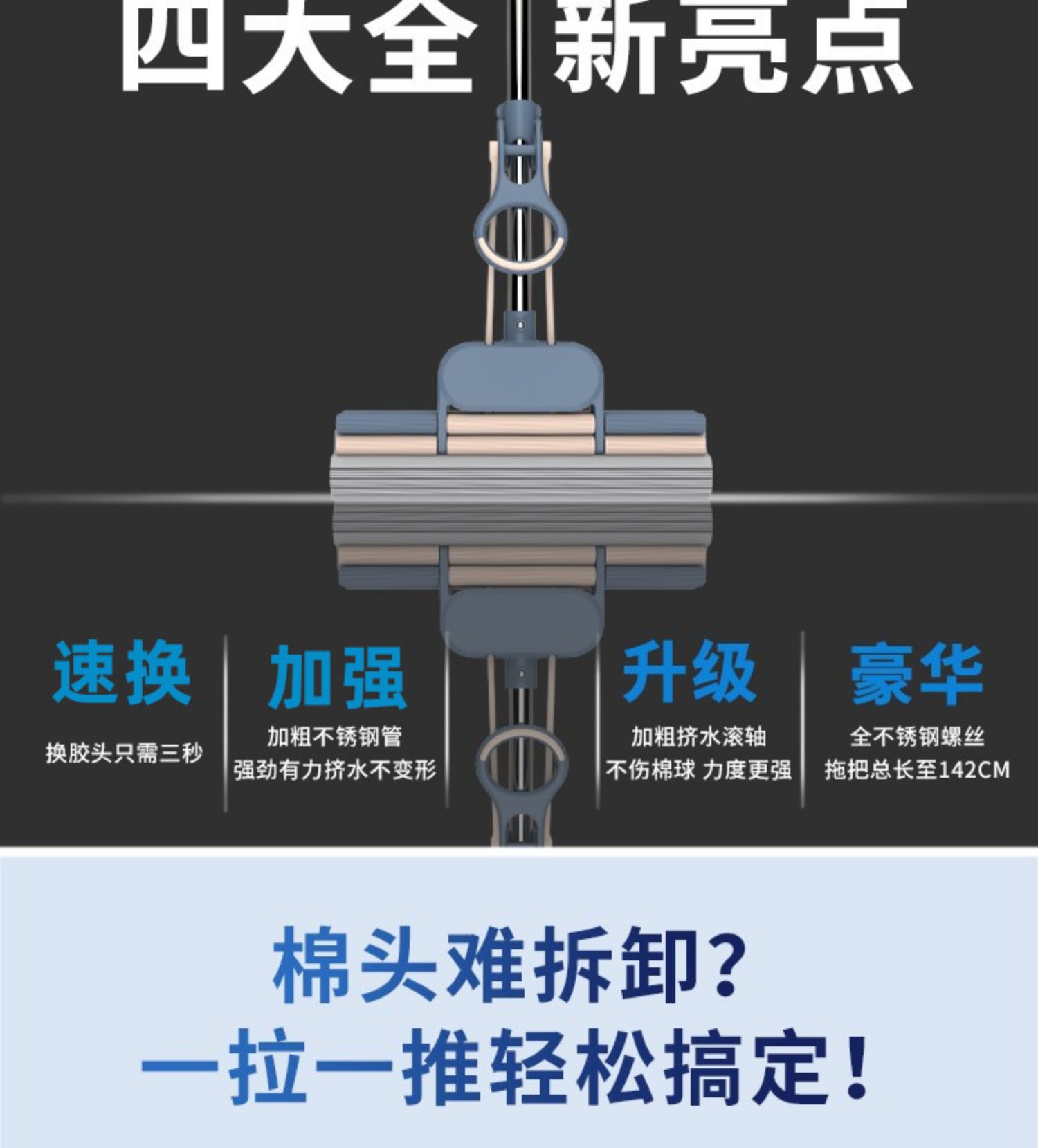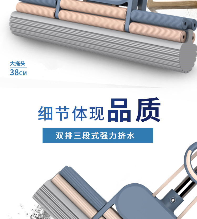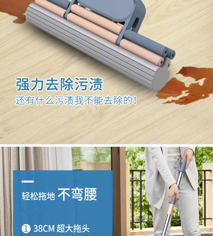 滚轮式海绵拖把家用一拖净干湿两用吸水拖把免手洗懒人胶棉式拖布