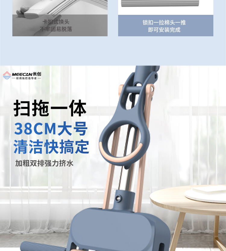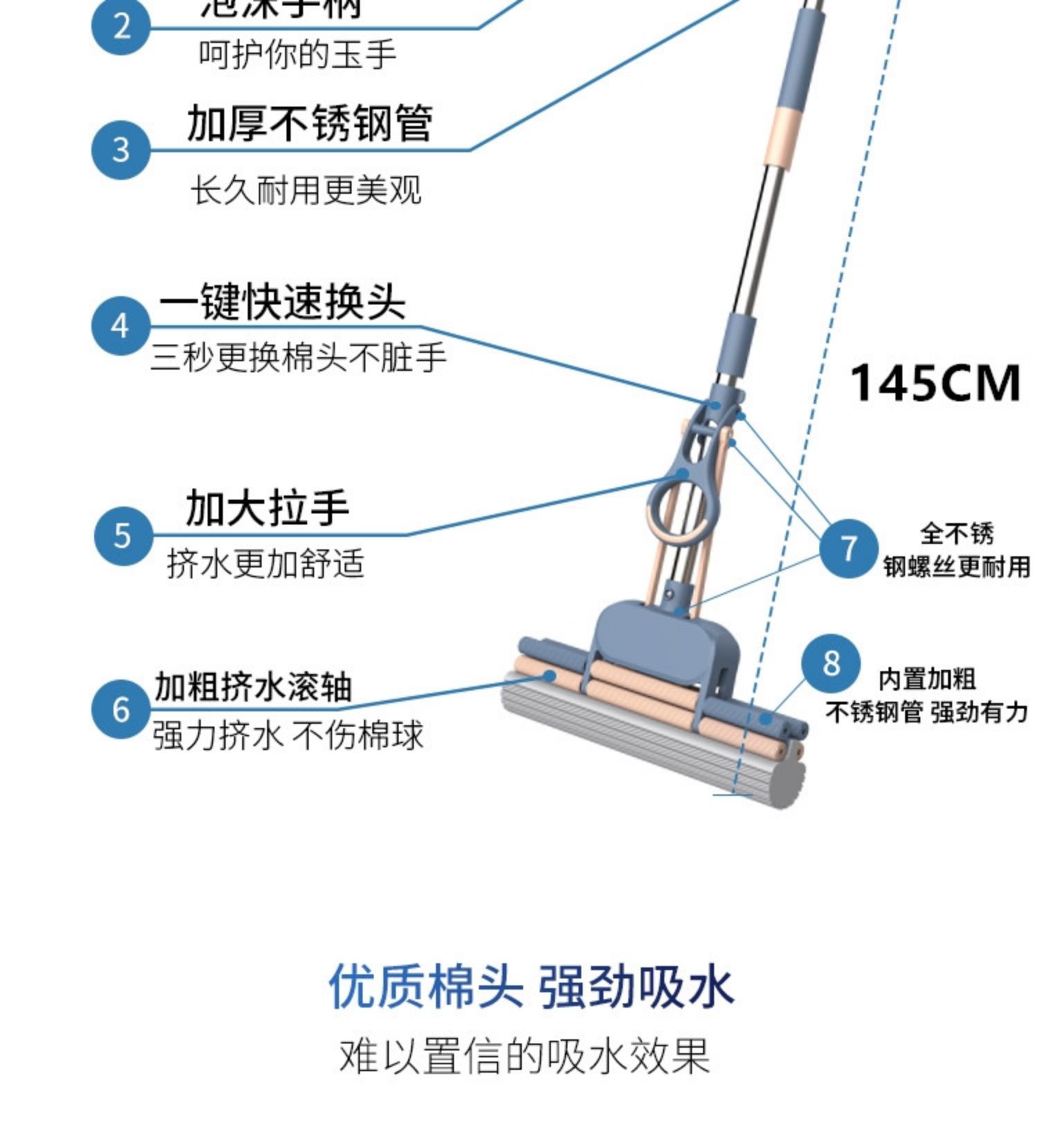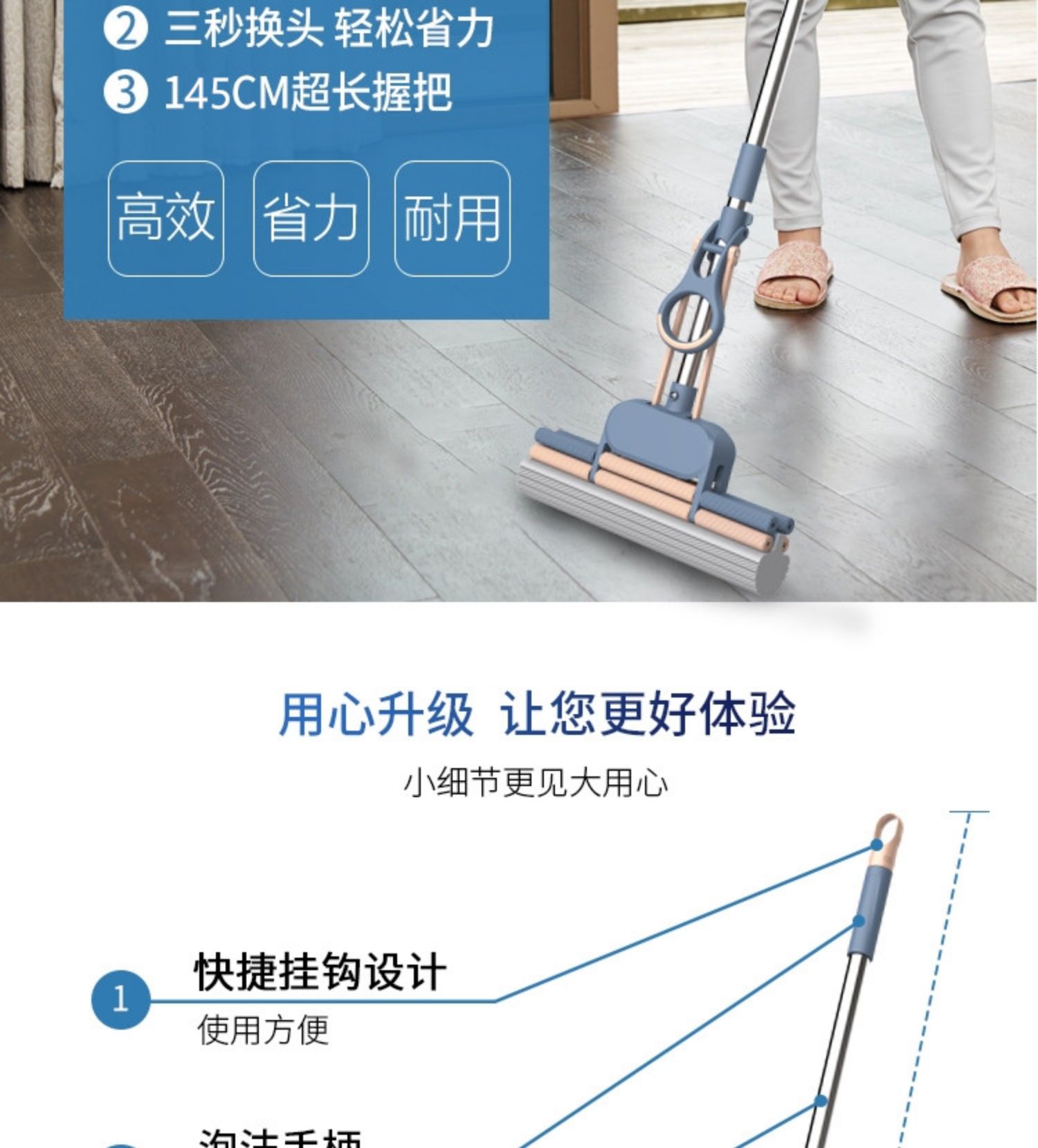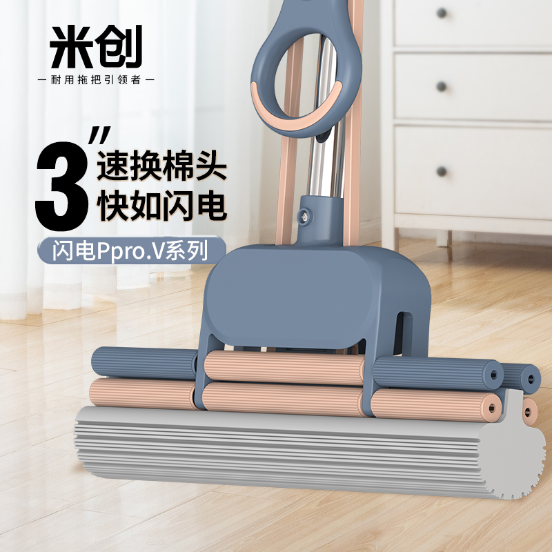 滚轮式海绵拖把家用一拖净干湿两用吸水拖把免手洗懒人胶棉式拖布