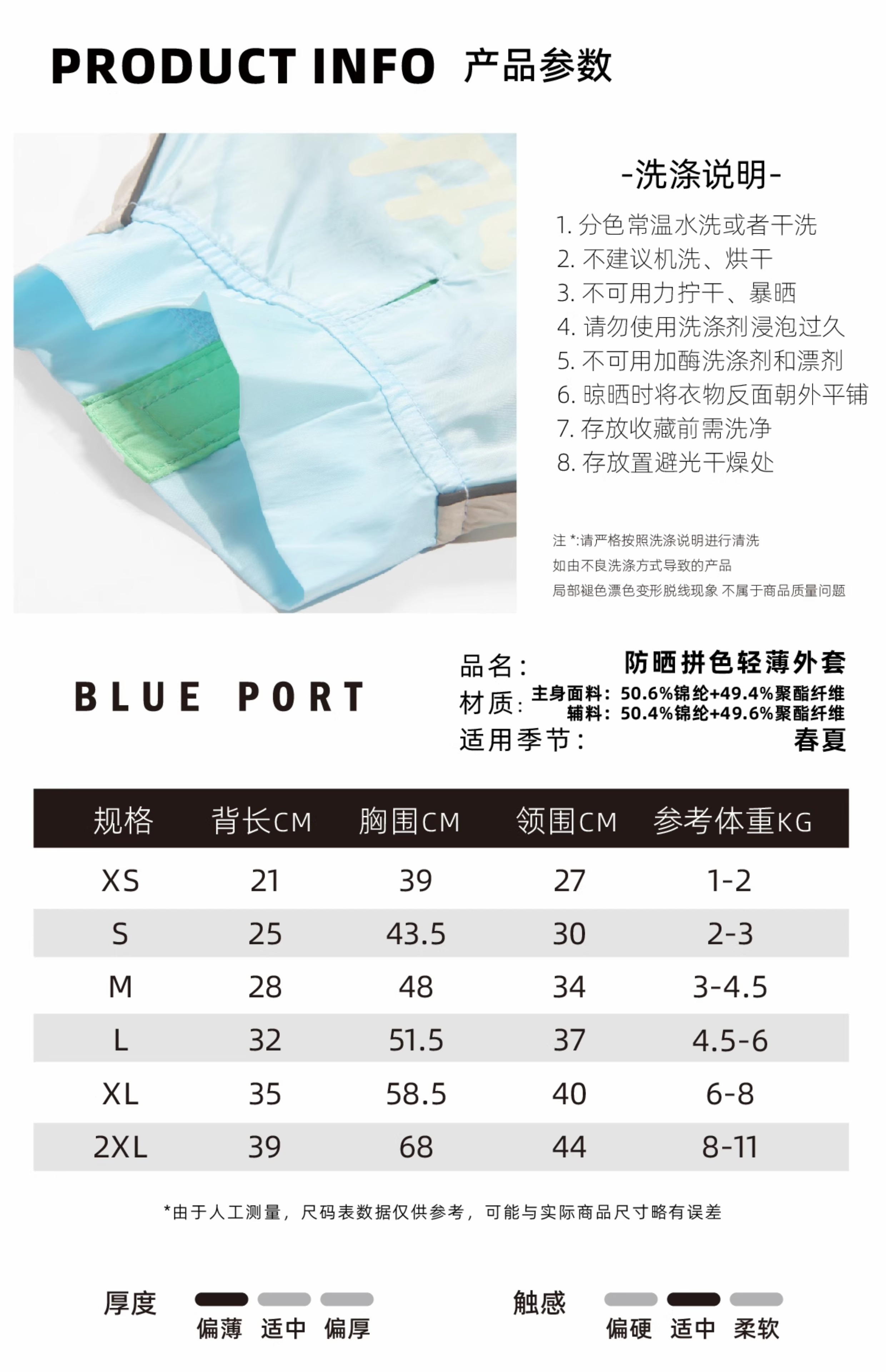 BluePort狗衣服牛仔马甲冷感遮阳帽斜挎包防晒T
