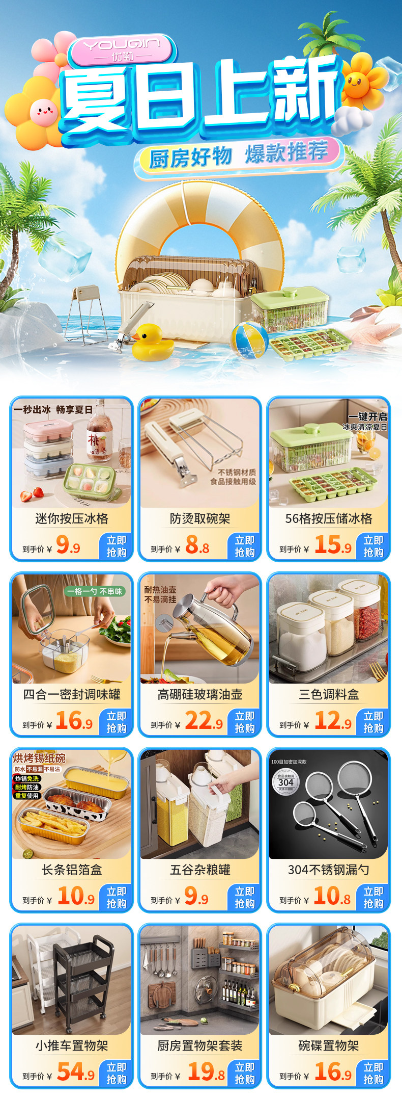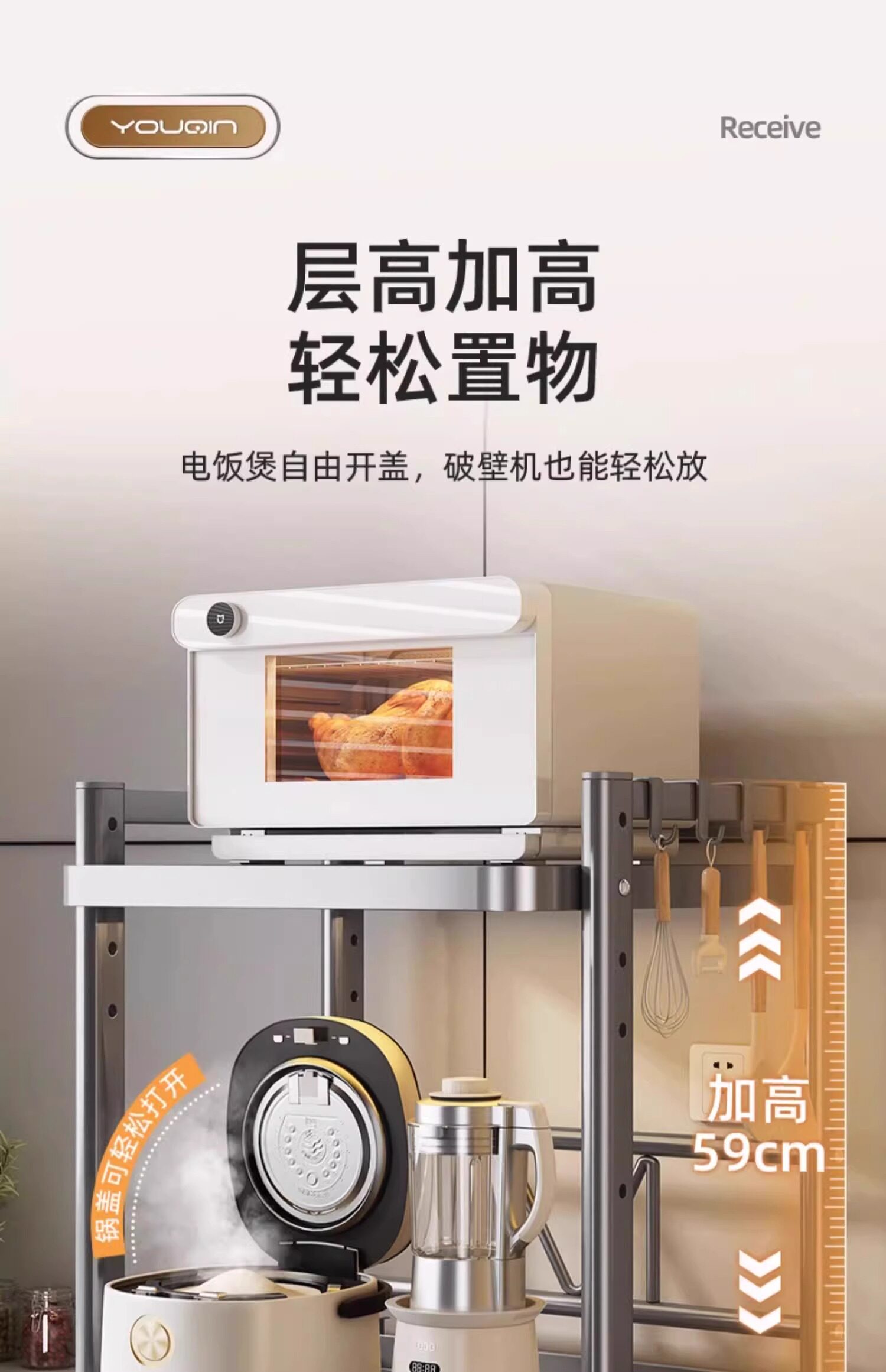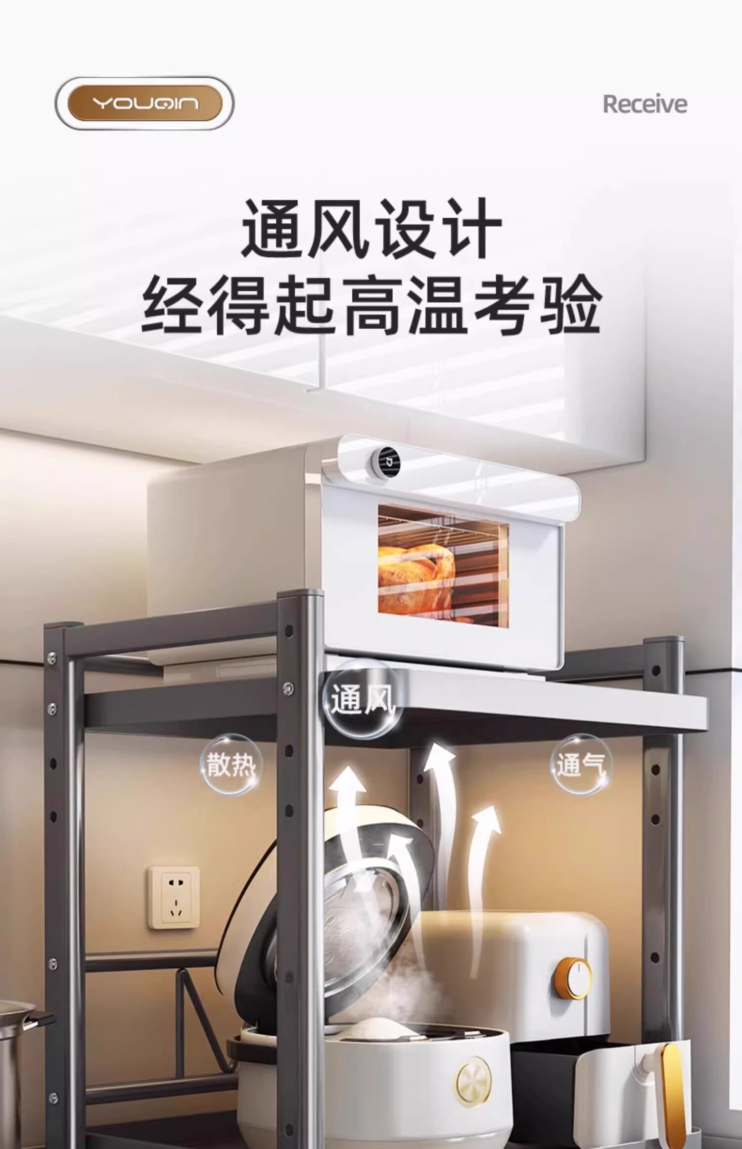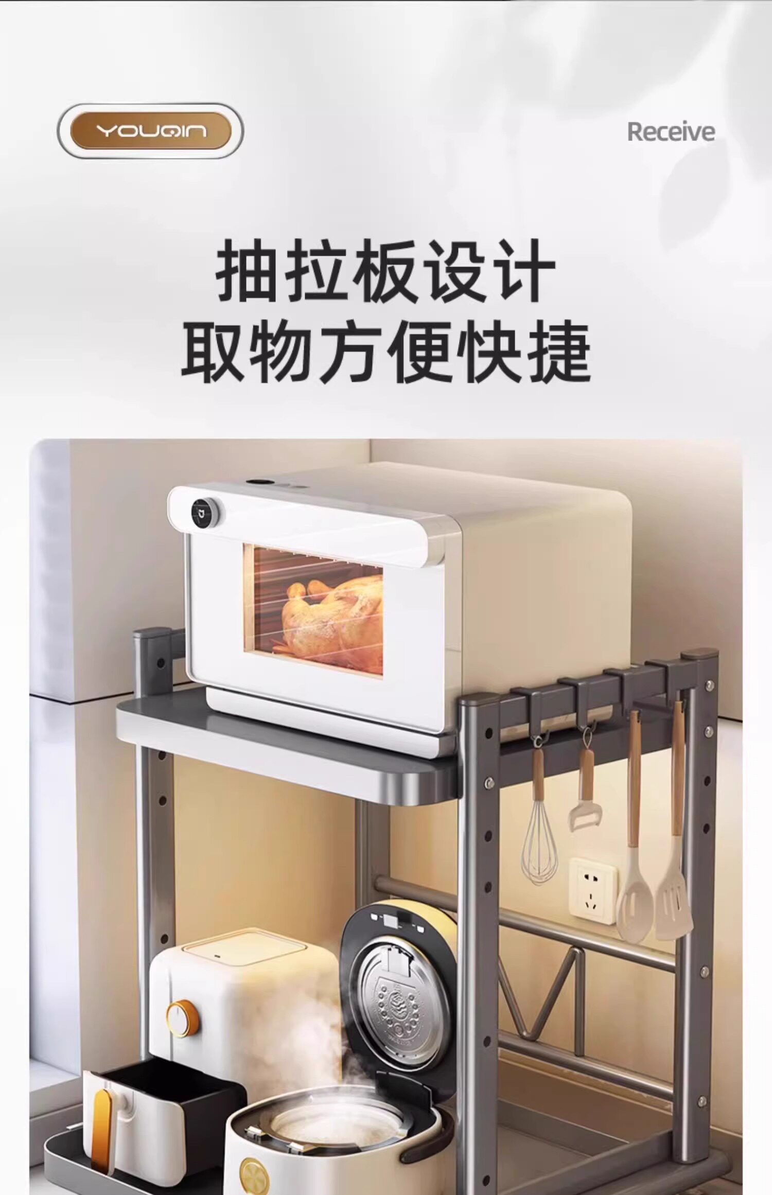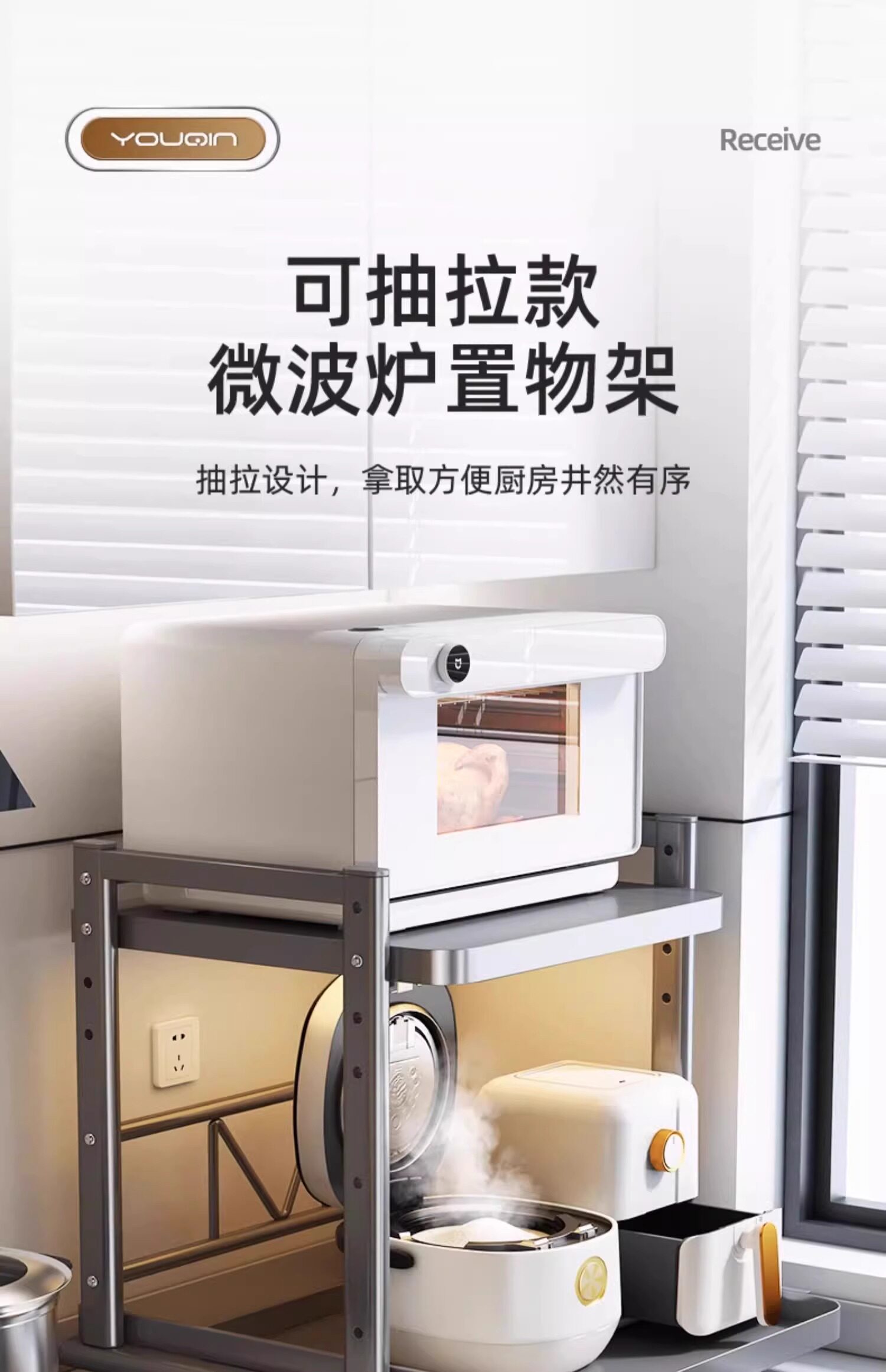 包邮优勤微波炉置物架厨房多功能台面电饭煲烤箱收纳架一体抽拉式