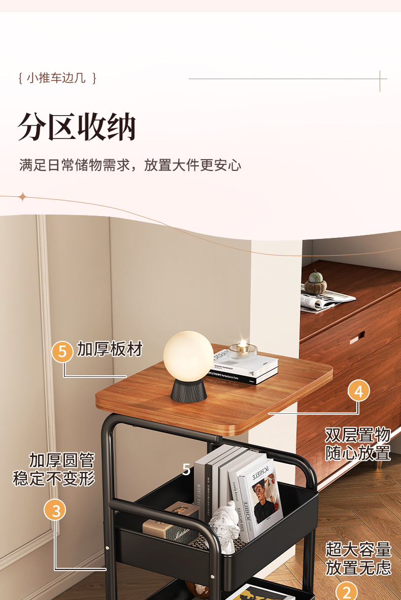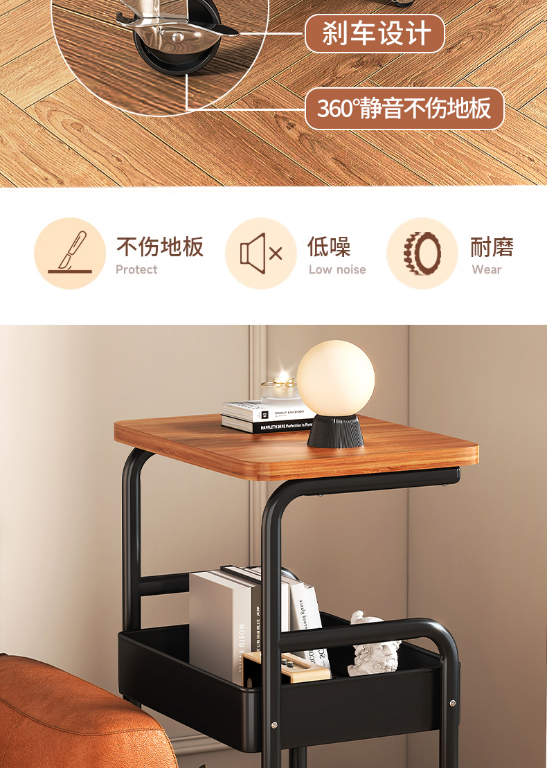 沙发边几小推车可移动床边置物架中古客厅茶几桌子卧室零食收纳架
