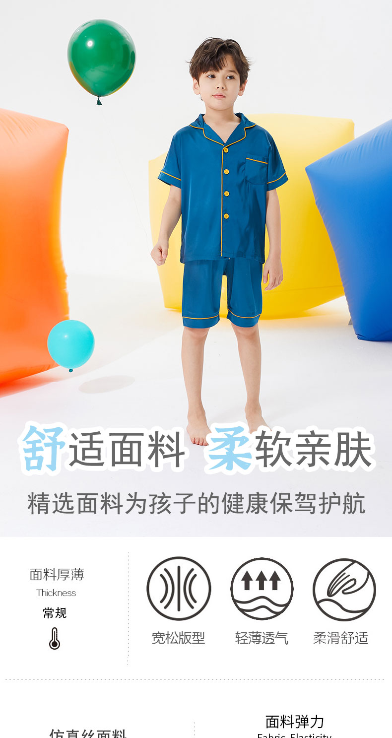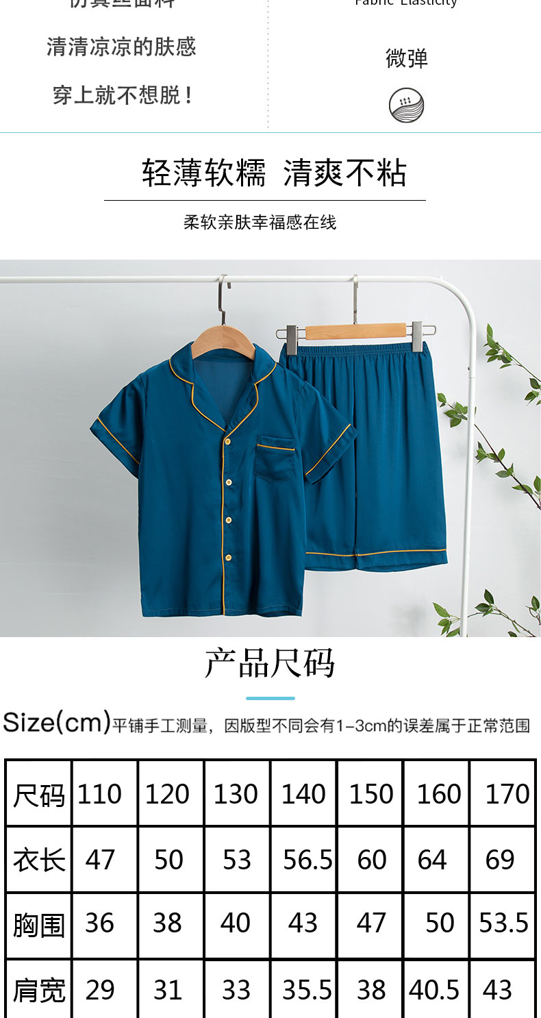猫人男童仿真丝睡衣春夏季儿童薄款宝宝冰丝短袖亲子母家居服套装