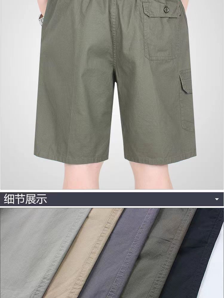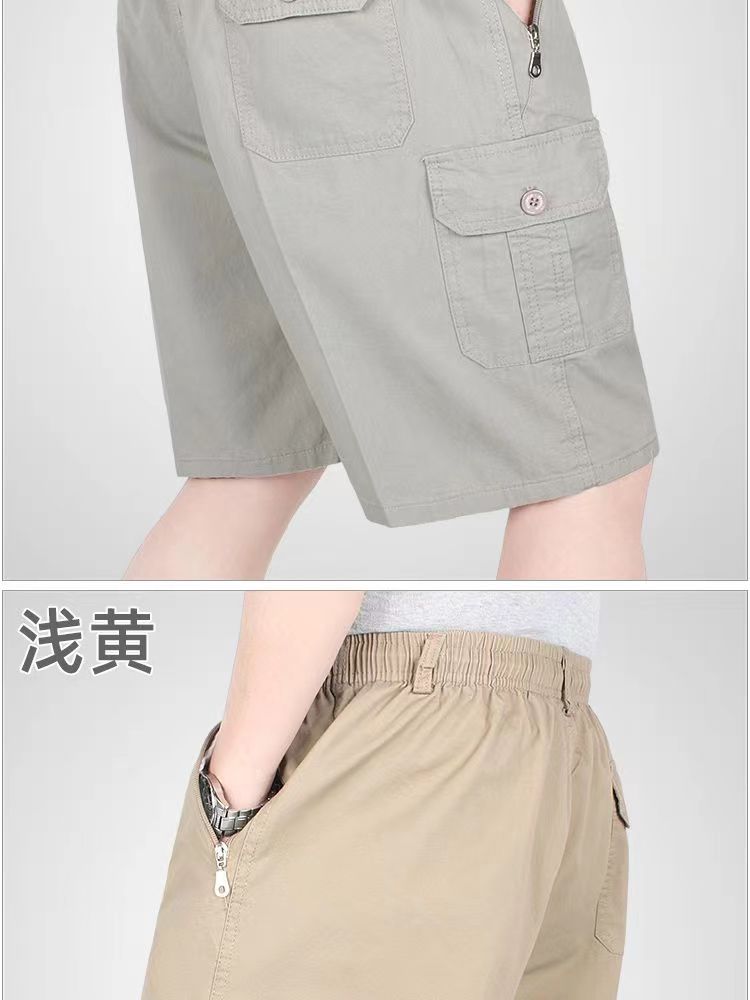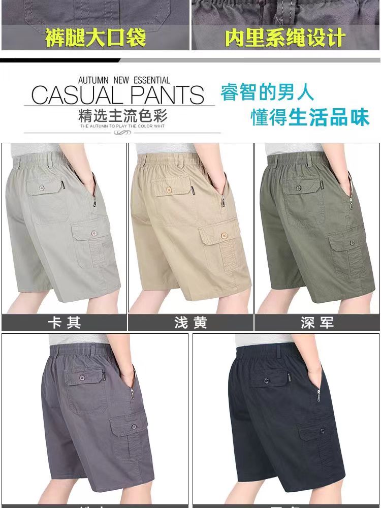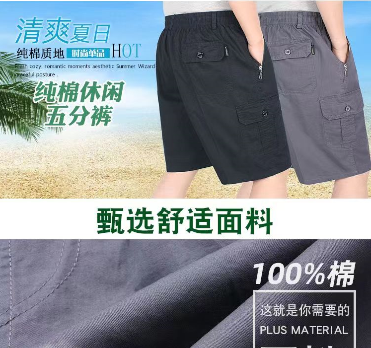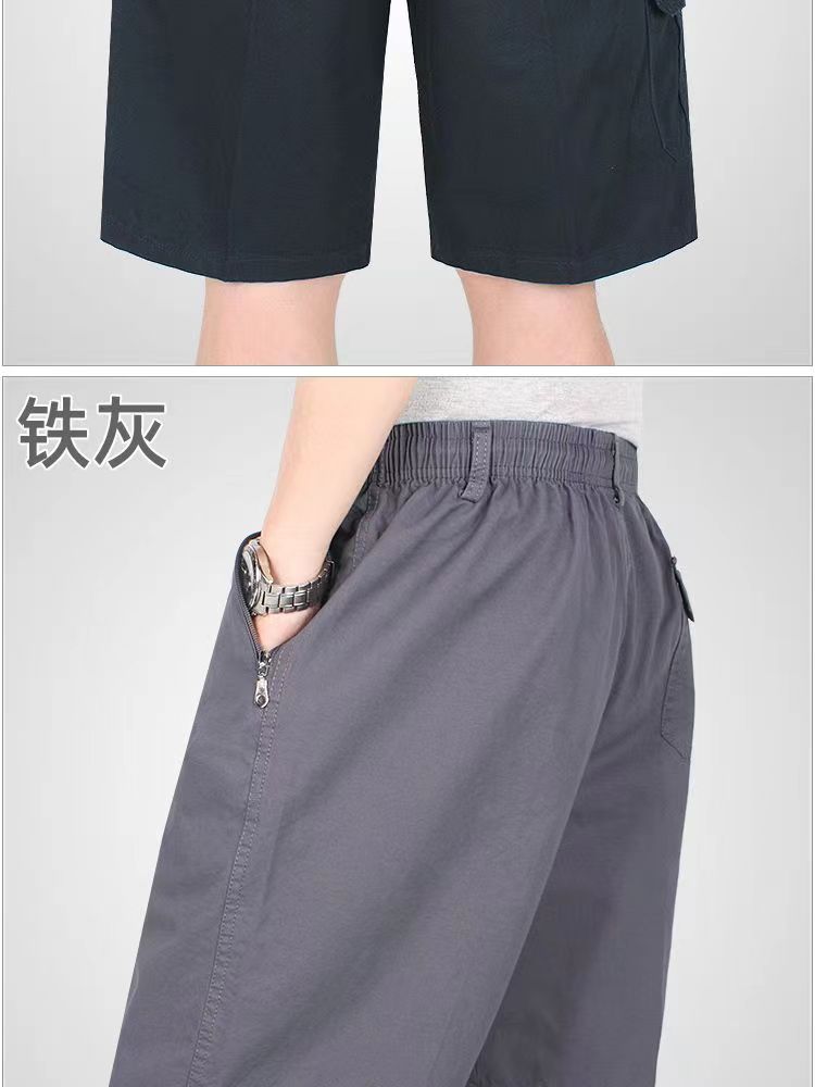 宽松中老年男士沙滩裤纯棉夏季短裤爸爸装高档五分裤深裆薄款外穿