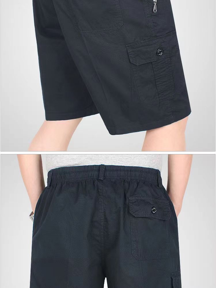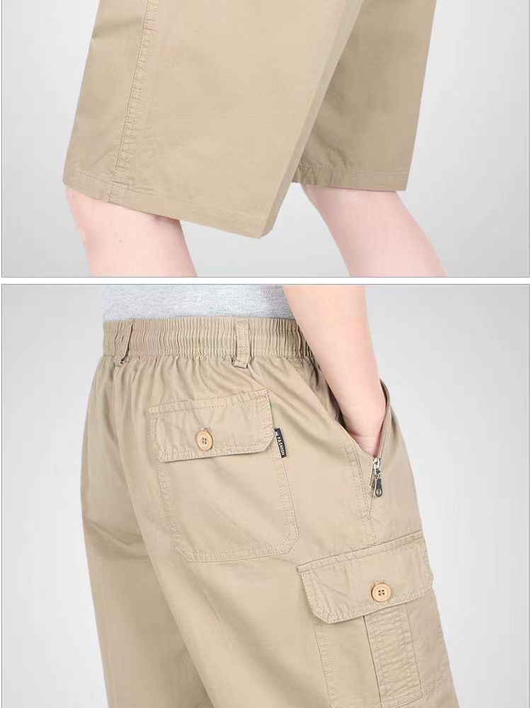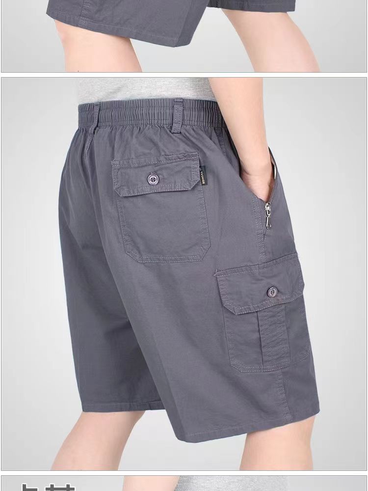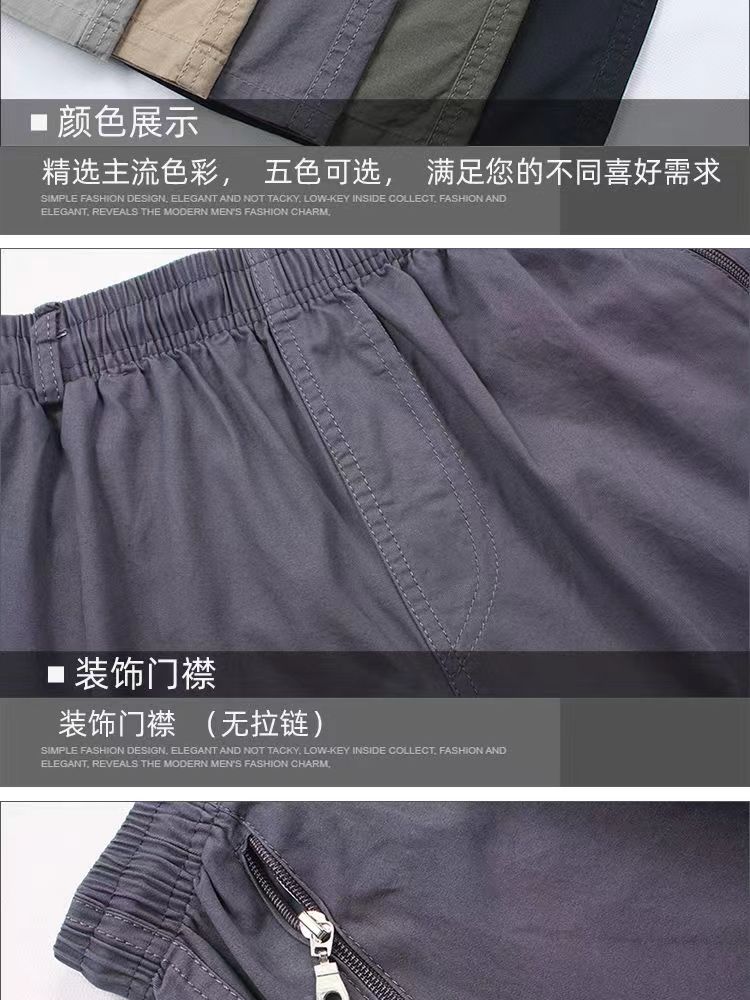 宽松中老年男士沙滩裤纯棉夏季短裤爸爸装高档五分裤深裆薄款外穿