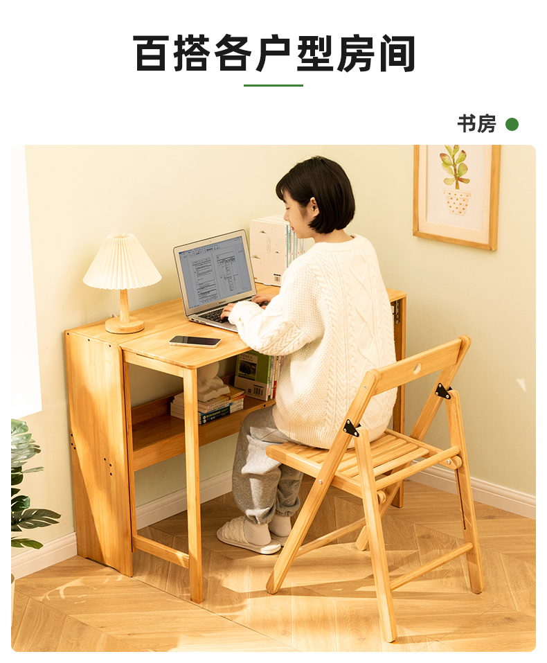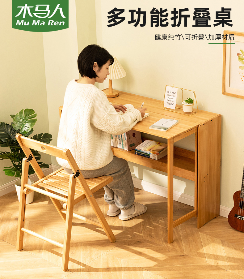 折叠书桌电脑桌子办公桌学生家用小型台式实木卧室工作台床边写字