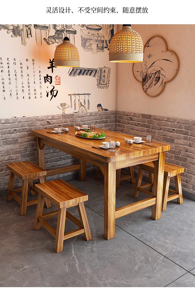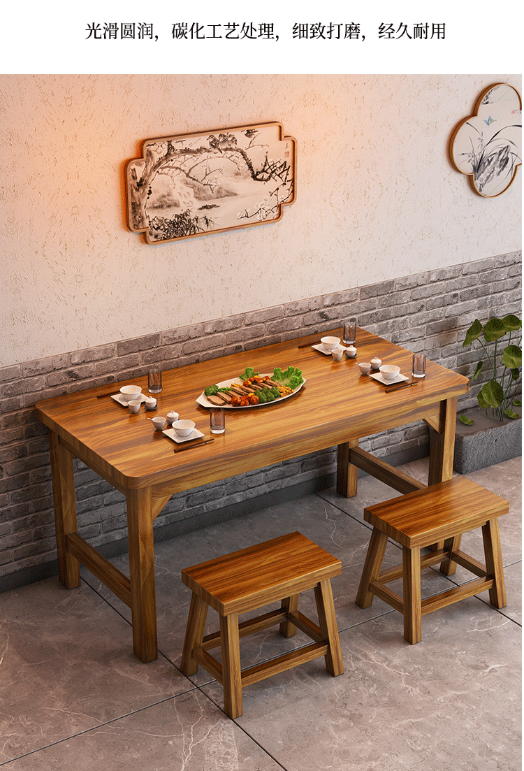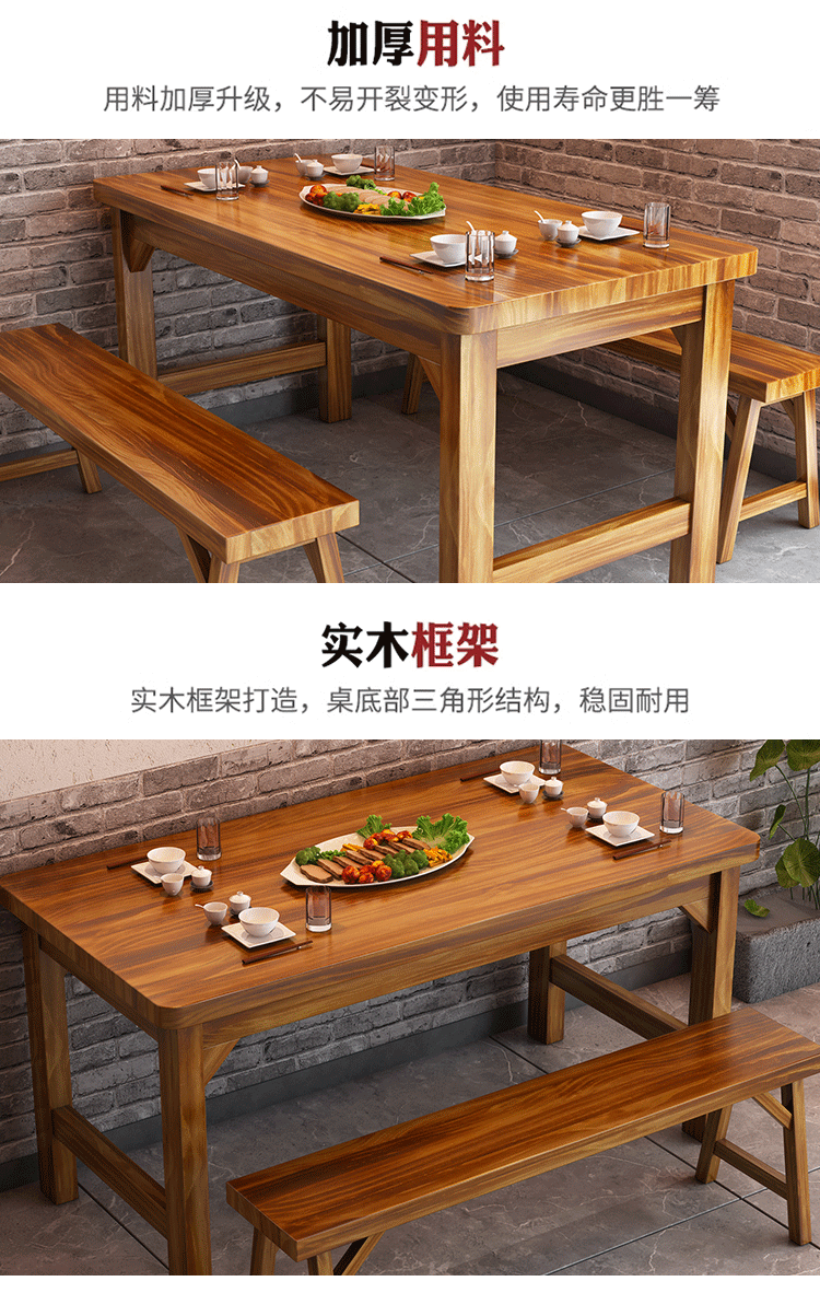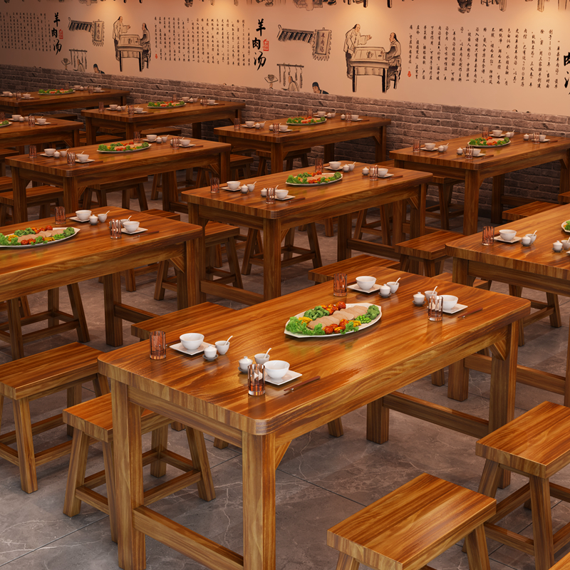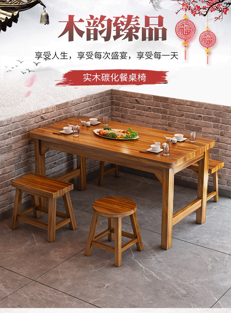 实木碳化饭店桌椅餐厅快餐桌椅面馆小吃烧烤火锅店商用餐桌椅组合