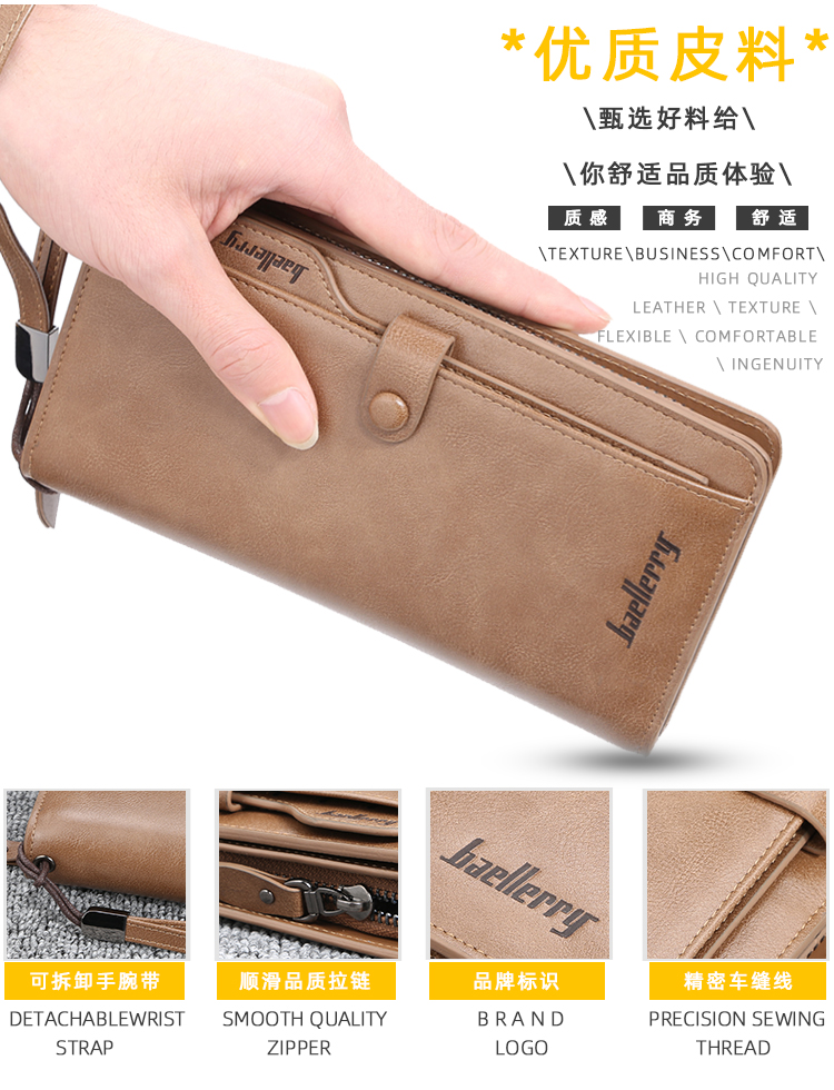 新款钱包男士长款拉链手包男大容量商务青年手拿包多卡位手机包潮