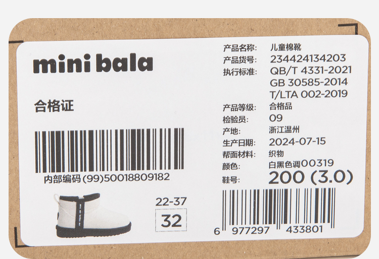 迷你巴拉巴拉童鞋儿童雪地靴男童女童中筒加厚加绒冬季靴子