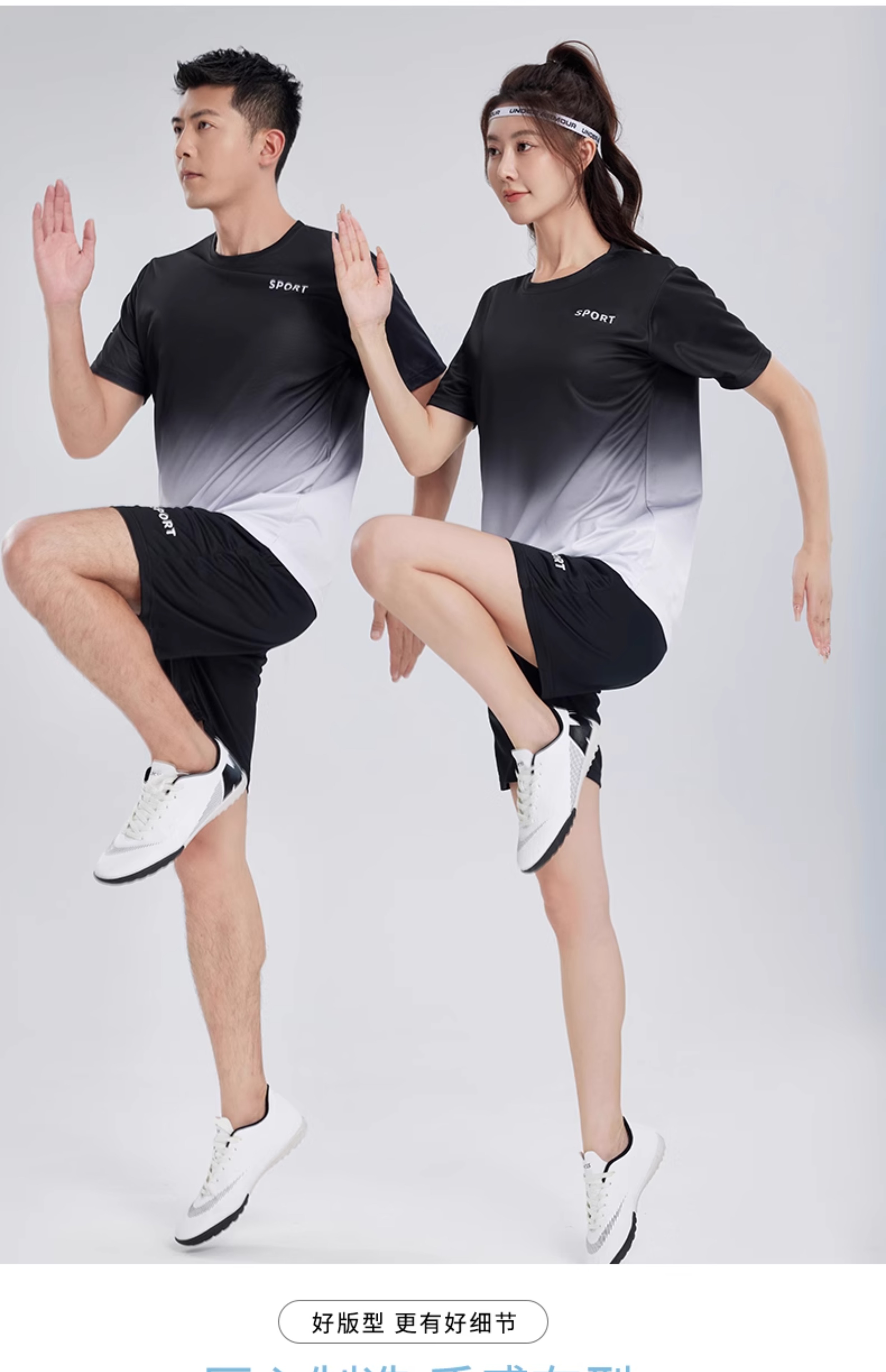 健身衣服跑步运动套装女速干冰丝t恤晨跑短袖男团队定制羽毛球服