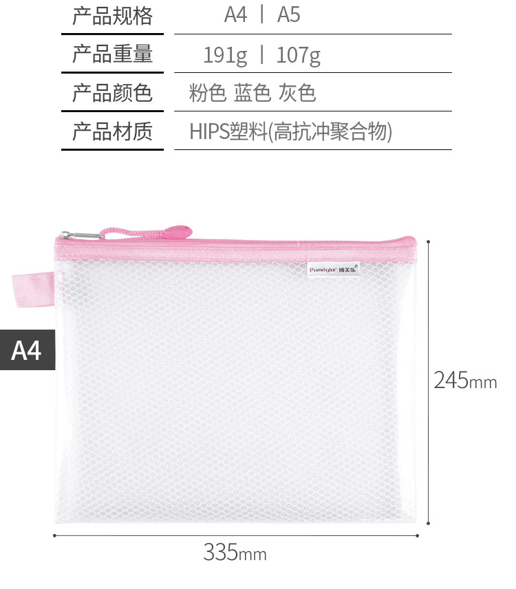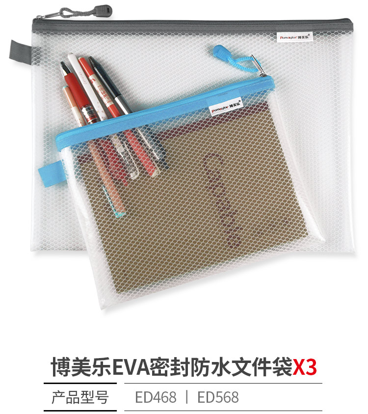 博美乐a4文件袋透明网格学生用拉链档案袋a5塑料中小学生试卷袋收纳卷子装作业文具资料袋大容量手提袋子夹