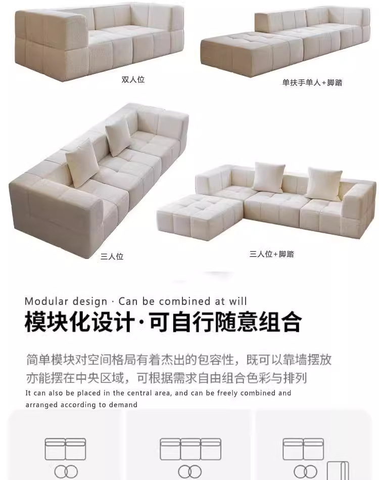 跨境出口压缩真空沙发奶油风棉花糖沙发自由组合布艺客厅沙发