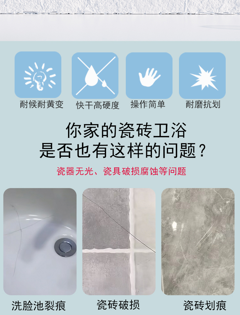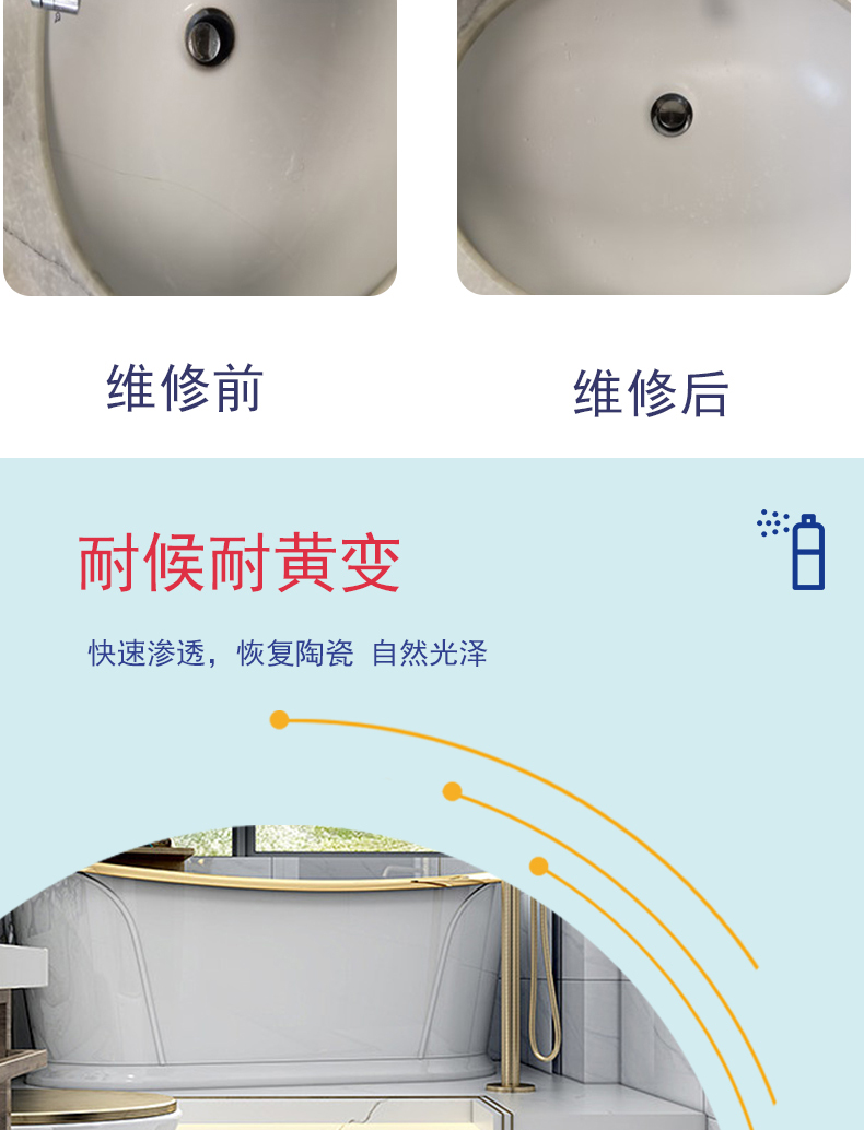 快干陶瓷釉瓷砖划痕开裂修补漆洗手盆马桶浴缸亮光哑光翻新漆
