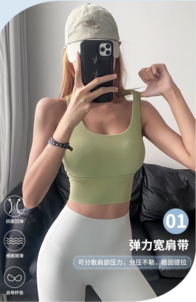 防震聚拢运动内衣带胸垫高强度健身文胸撸铁普拉提瑜伽背心套装夏