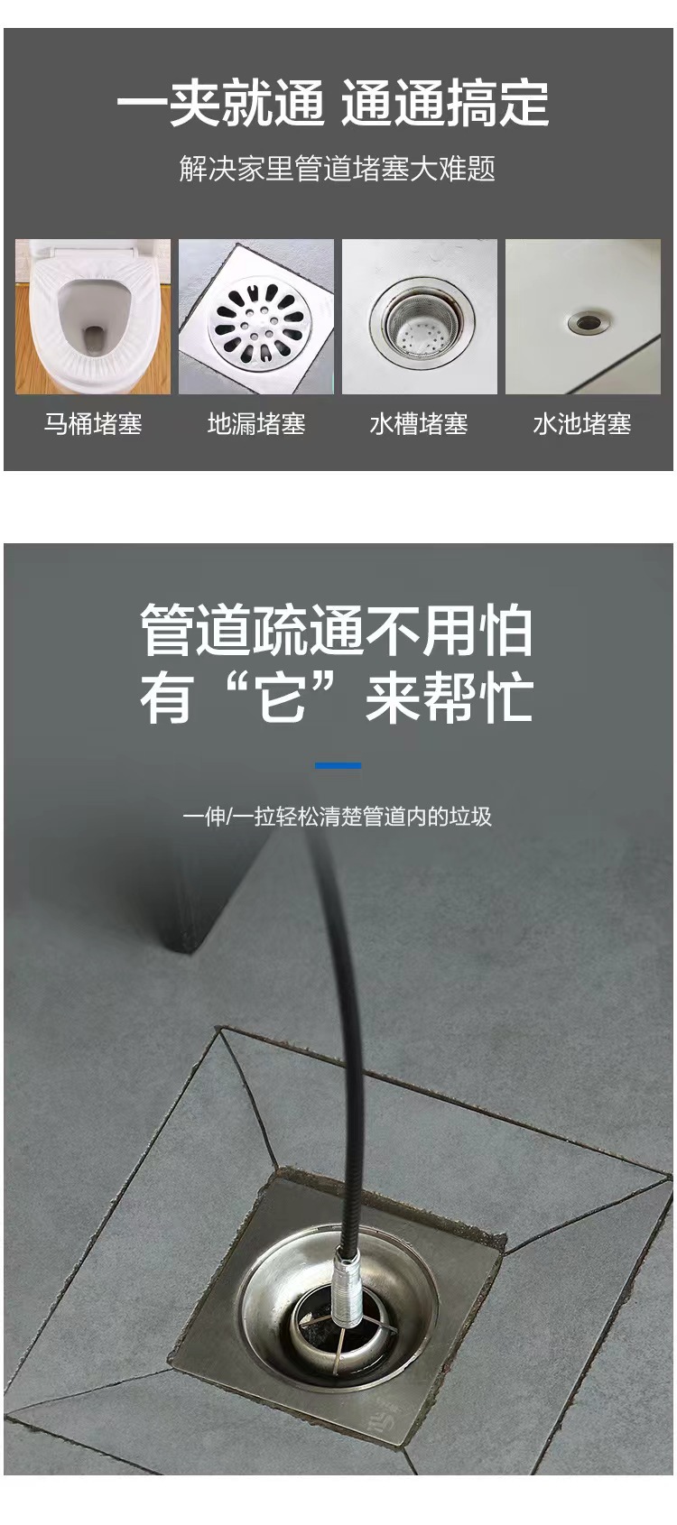 下水道疏通器强力多功能通马桶厕所地漏清理堵塞四爪疏通神器夹子