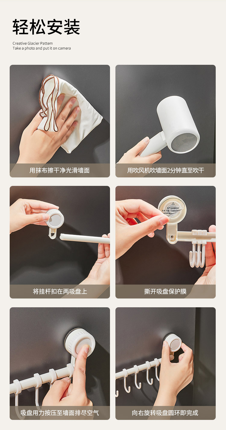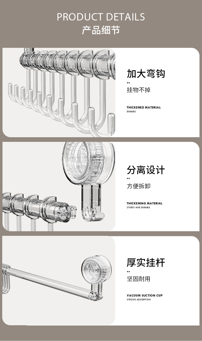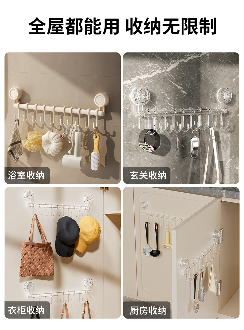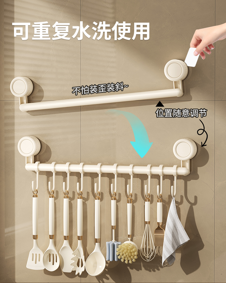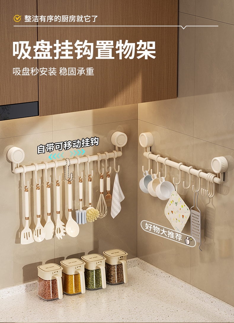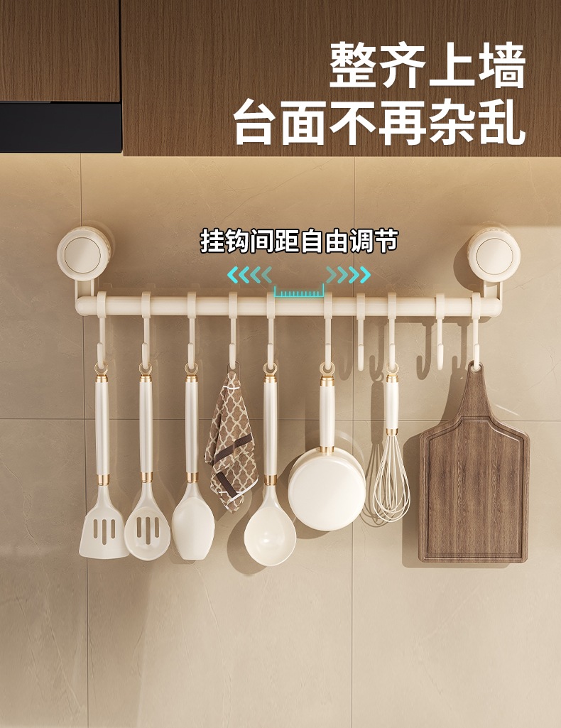 吸盘厨房挂钩免打孔挂杆锅勺子铲子挂架多功能壁挂置物架门后收纳