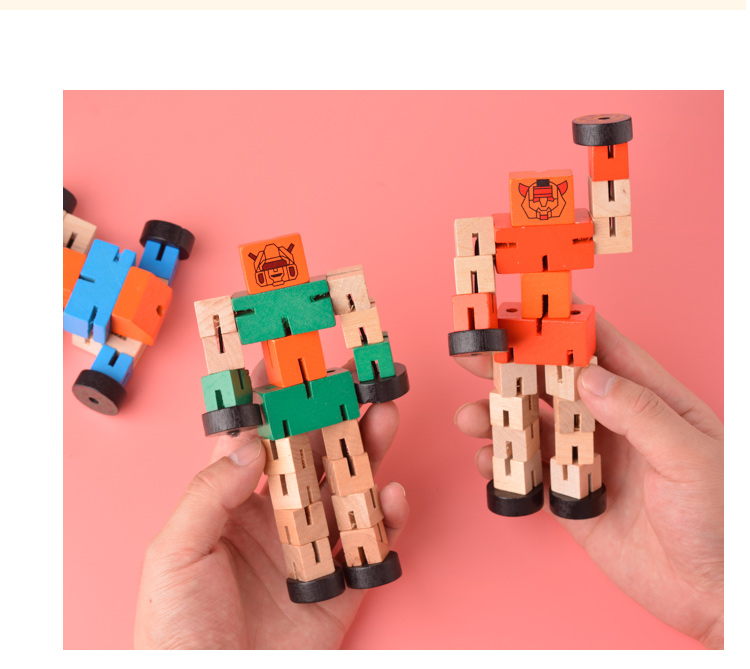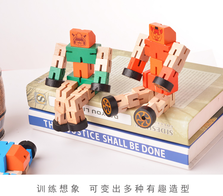 创意百变机器人木质玩具幼儿园礼物奖品变形汽车人可爱积木