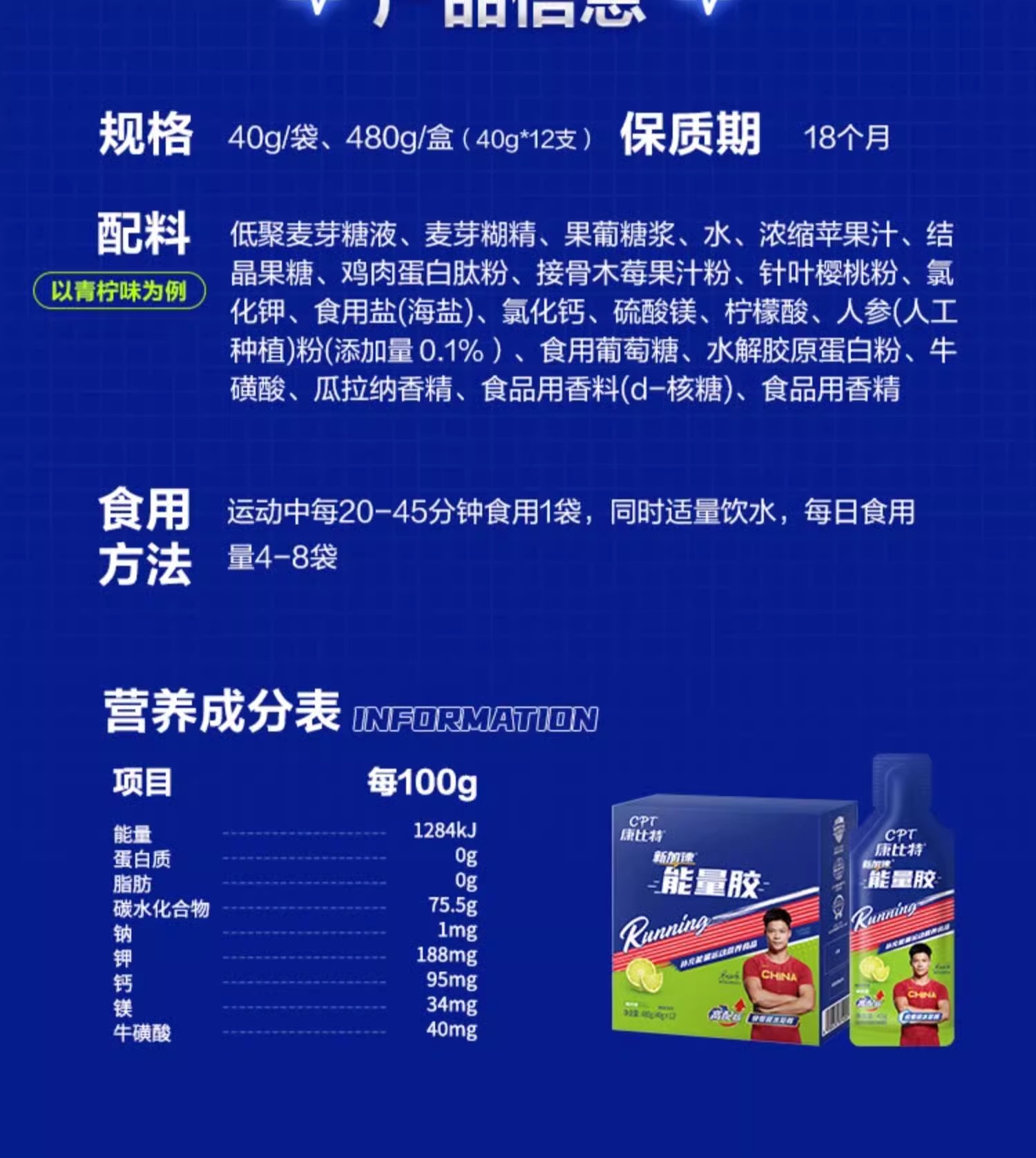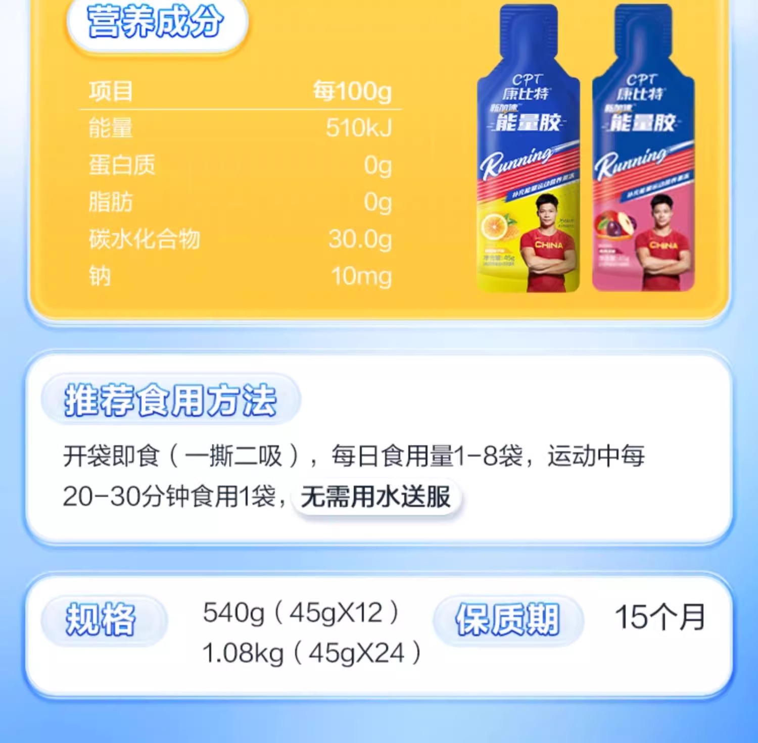 康比特能量胶等渗马拉松骑行体育生长跑步提耐力登山越野游泳比赛