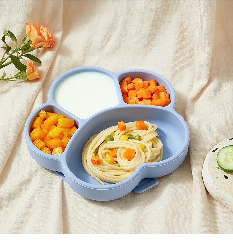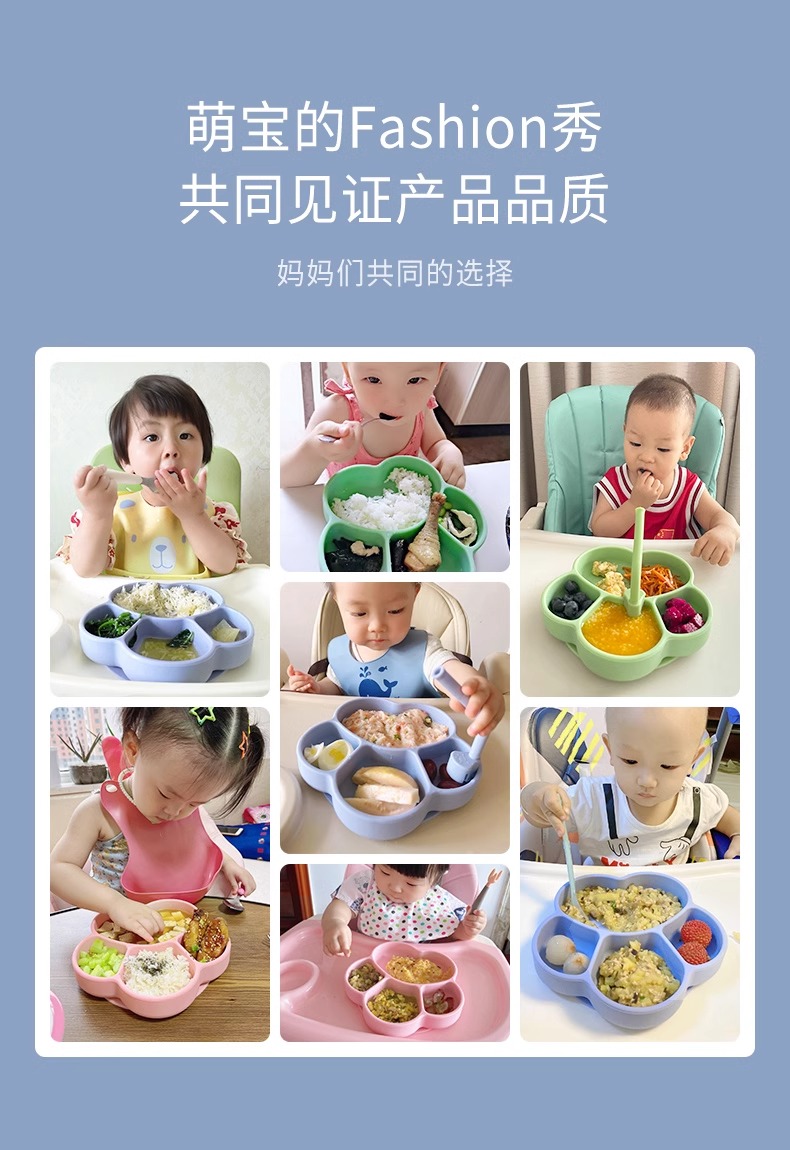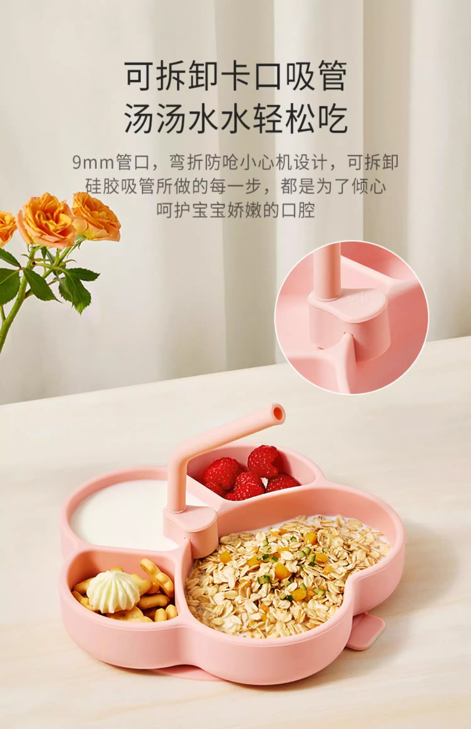 宝宝餐盘吸盘分格盘婴儿硅胶吸管辅食碗吃饭训练勺子儿童餐具套装