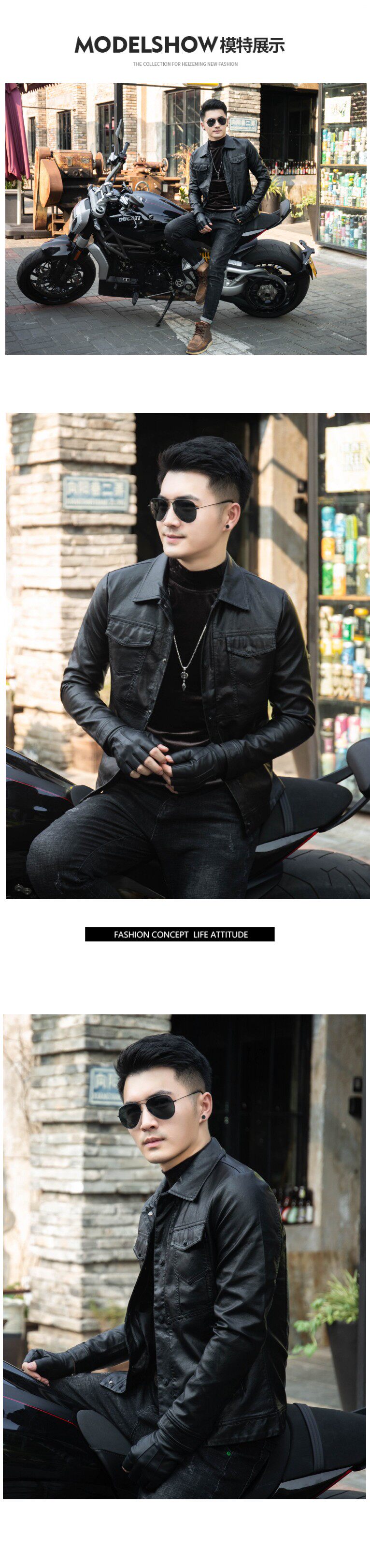 型男机车皮衣修身短款秋冬新款皮外套男士韩版潮流痞帅气翻领夹克