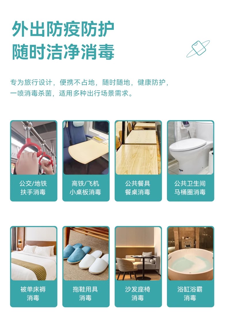 旅行便携消毒喷雾HPV酒店床单浴缸马桶水壶杀菌公用洗衣机消毒液