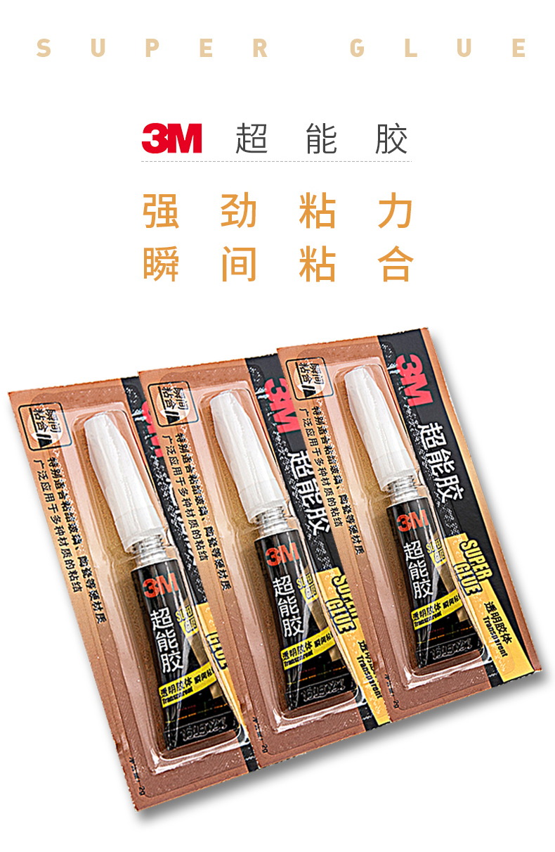 3M超能胶502强力胶正品粘玻璃补鞋铁金属陶瓷木头塑料鞋子的专用胶水粘合胶粘剂手工软性多功能防水万能快干