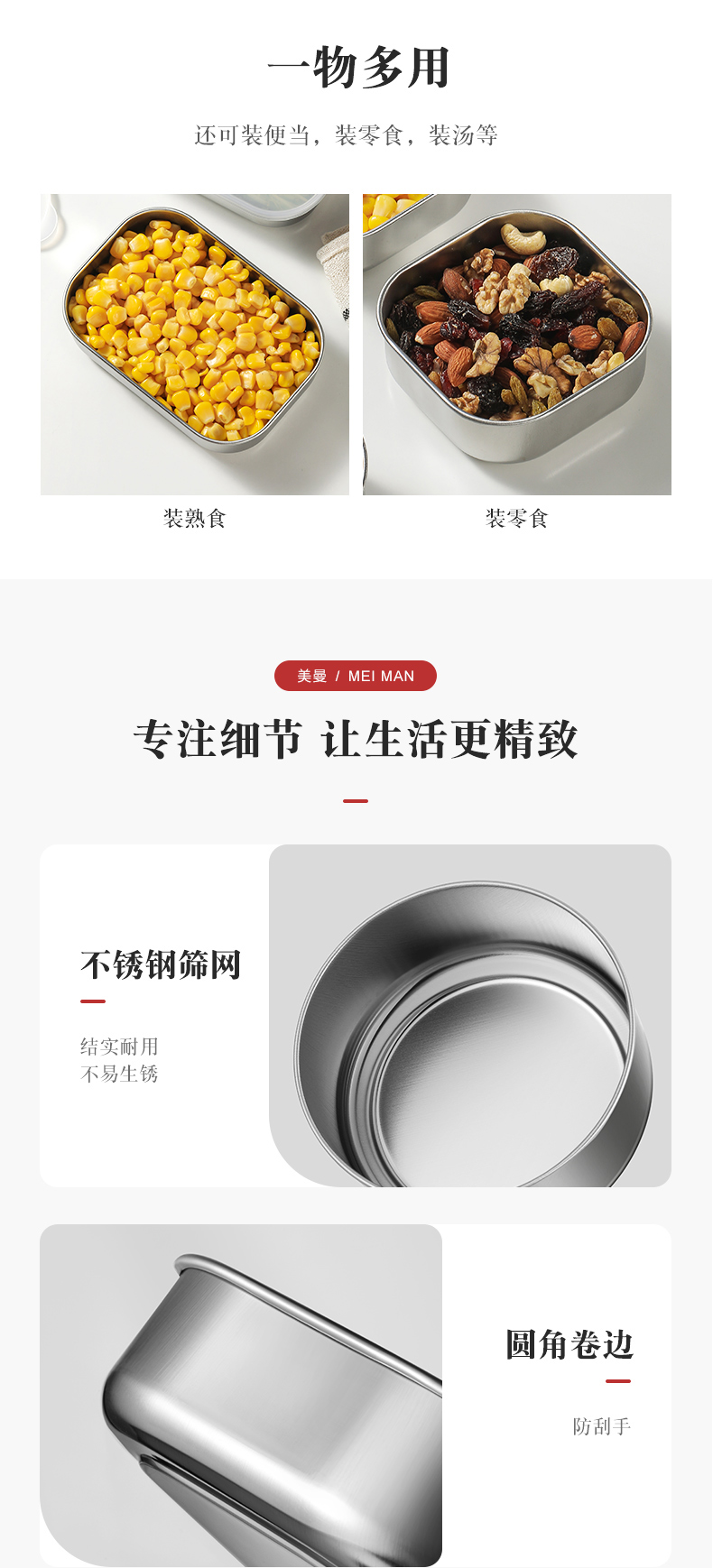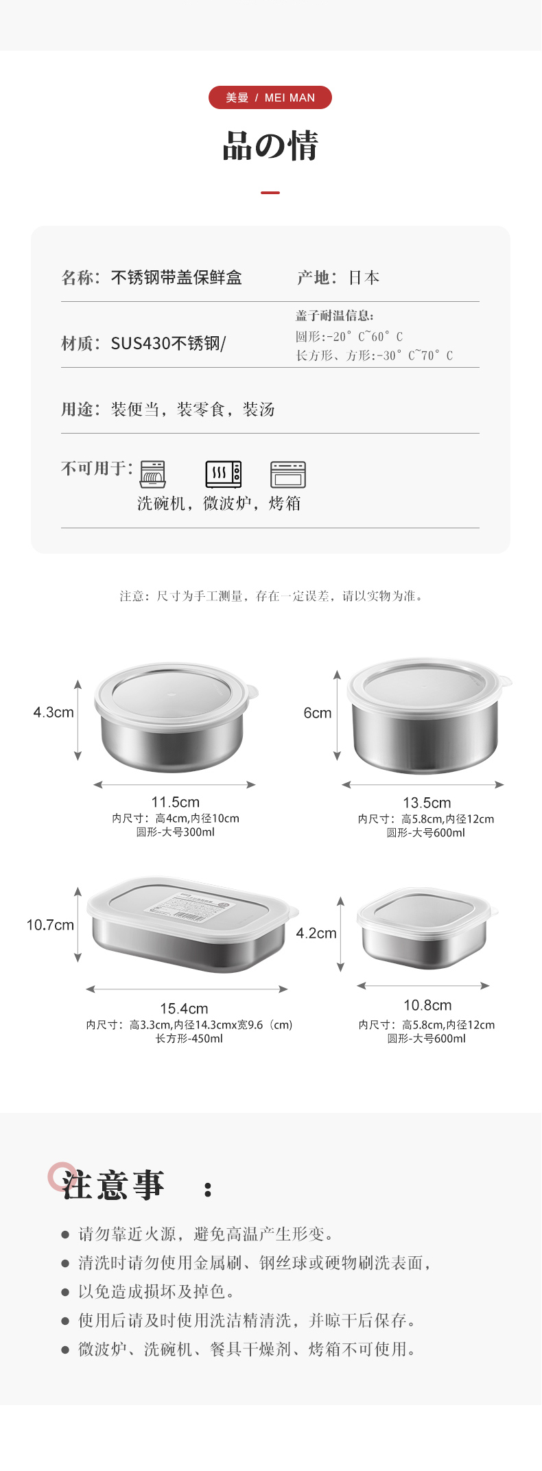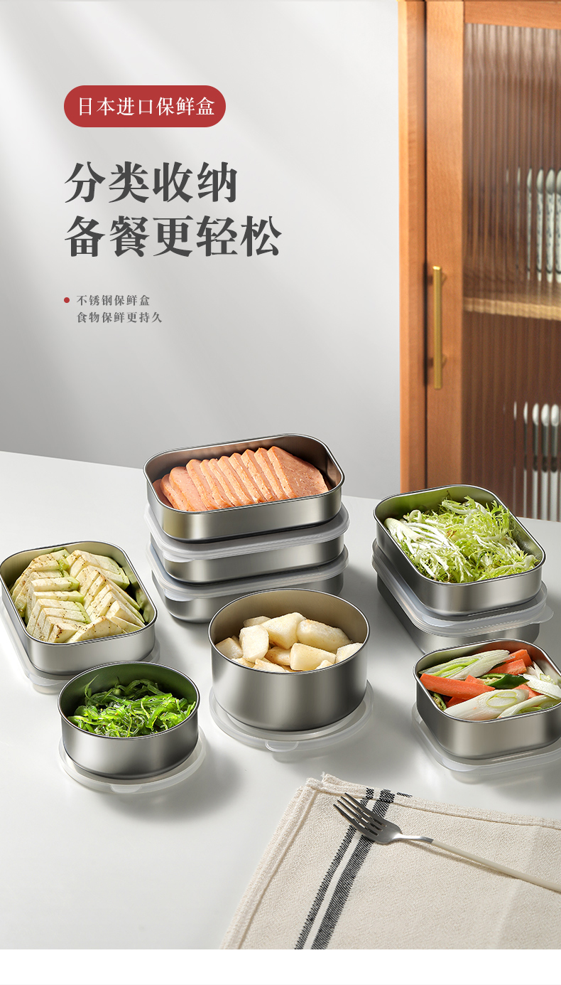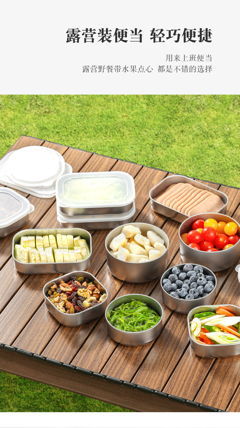 日本进口保鲜盒不锈钢饭盒食品级密封水果盒便当盒分装盒露营野餐