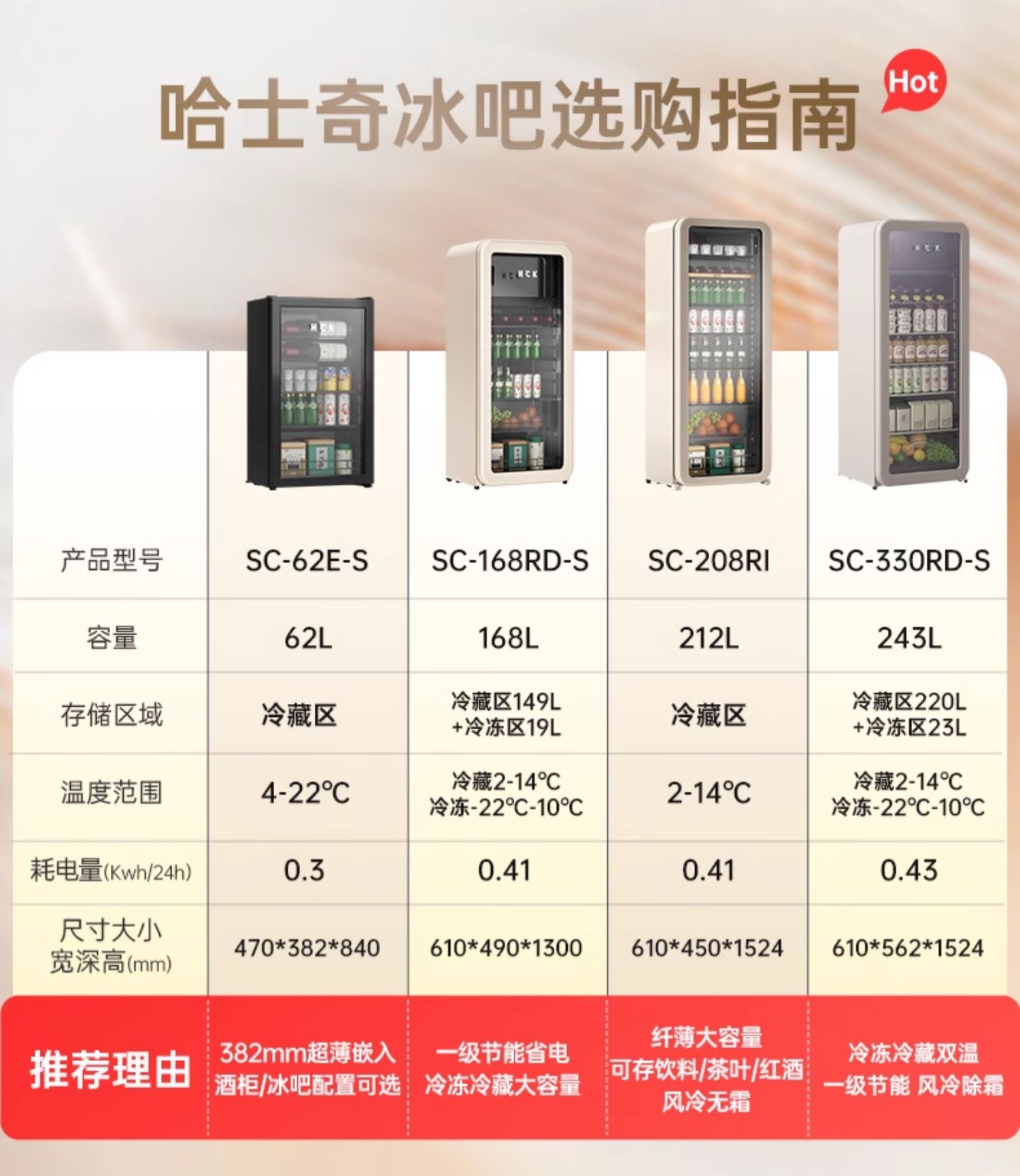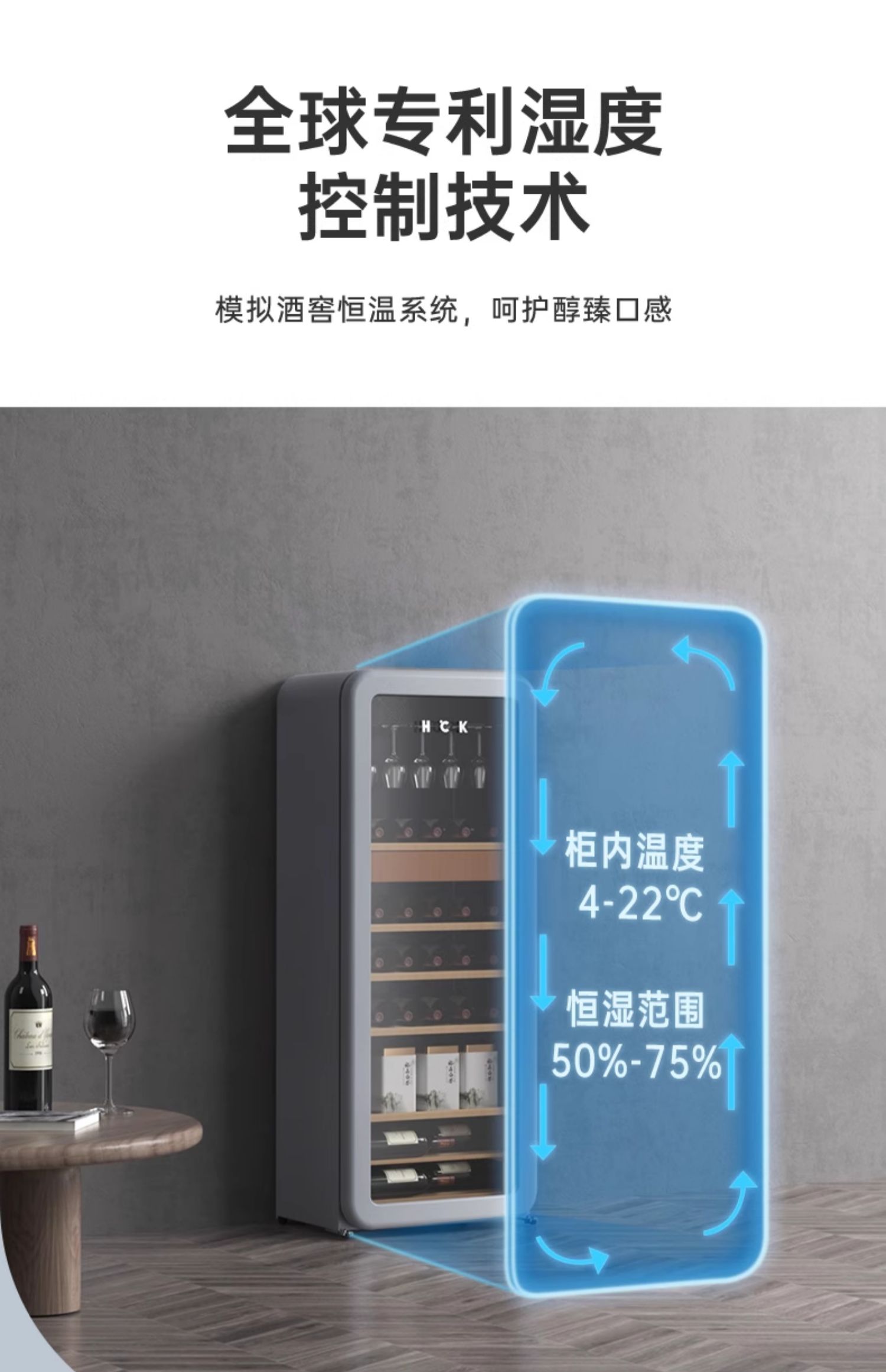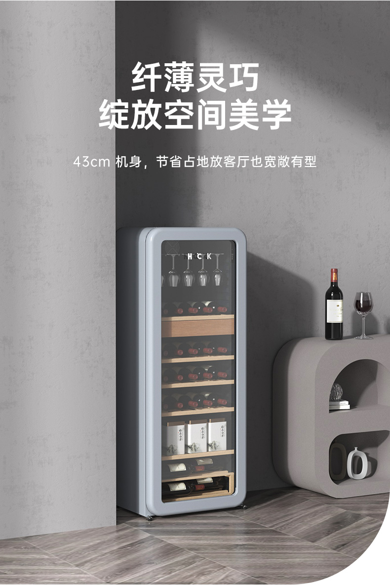 HCK哈士奇208RA恒温红酒柜嵌入式客厅家用超薄冰吧冷藏冰箱茶叶柜