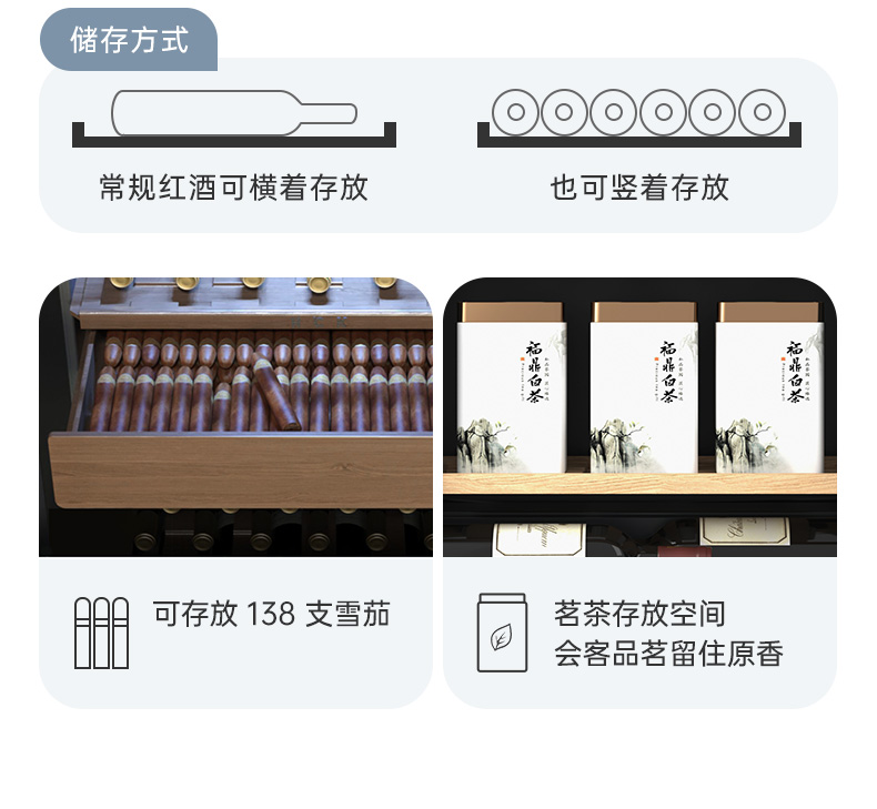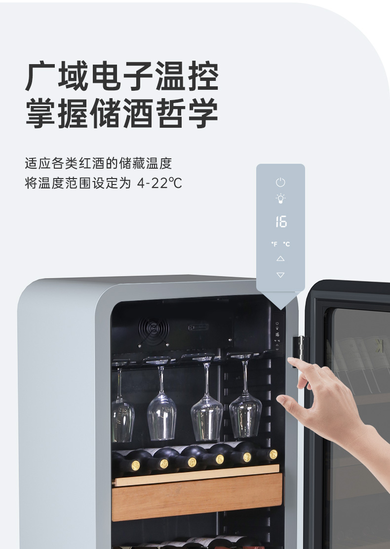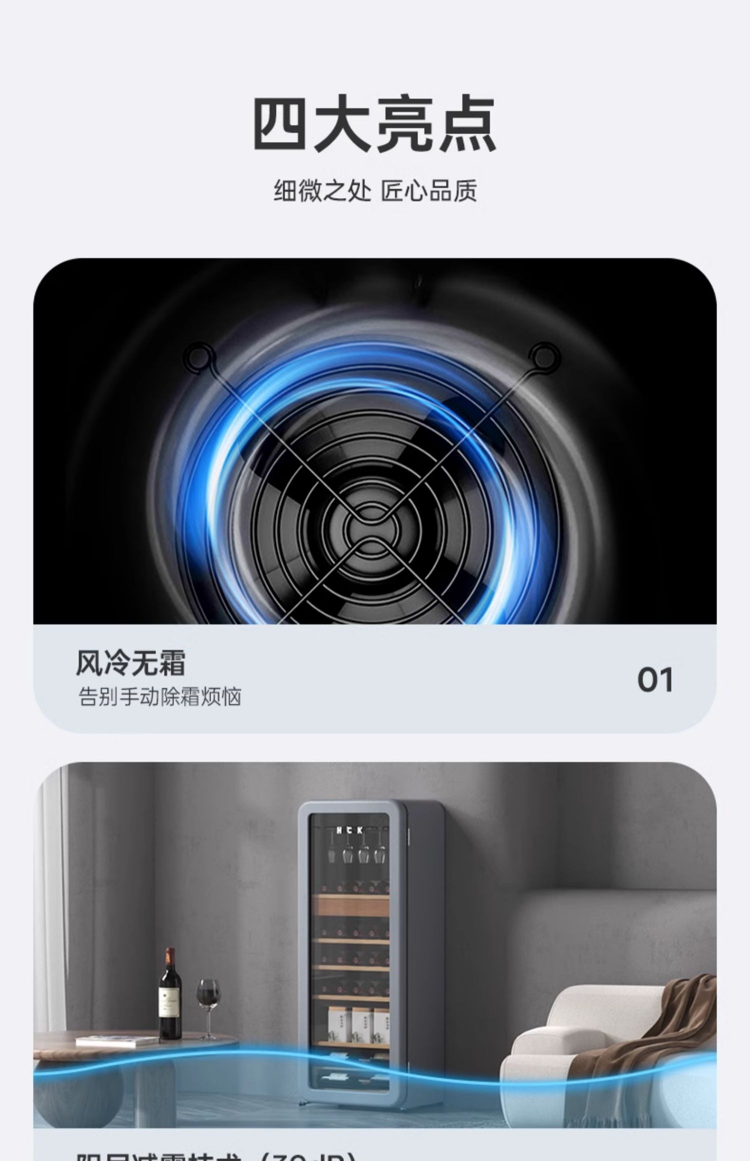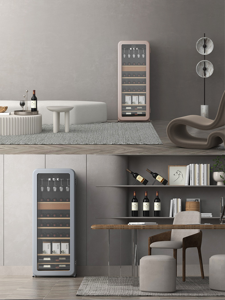 HCK哈士奇208RA恒温红酒柜嵌入式客厅家用超薄冰吧冷藏冰箱茶叶柜