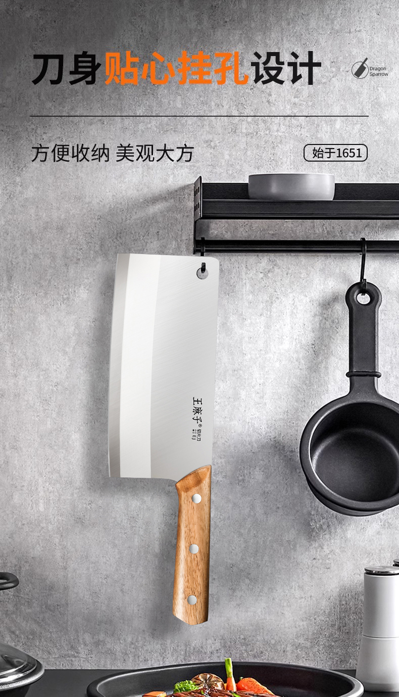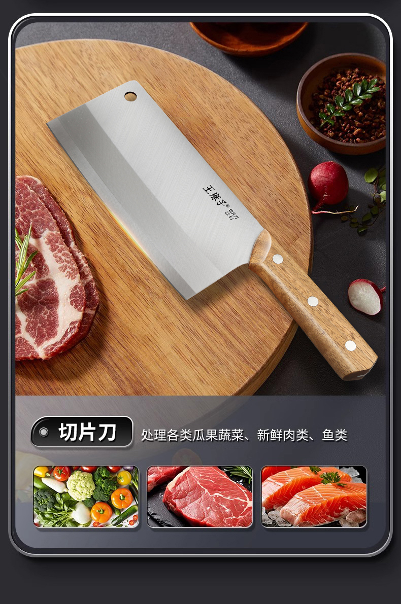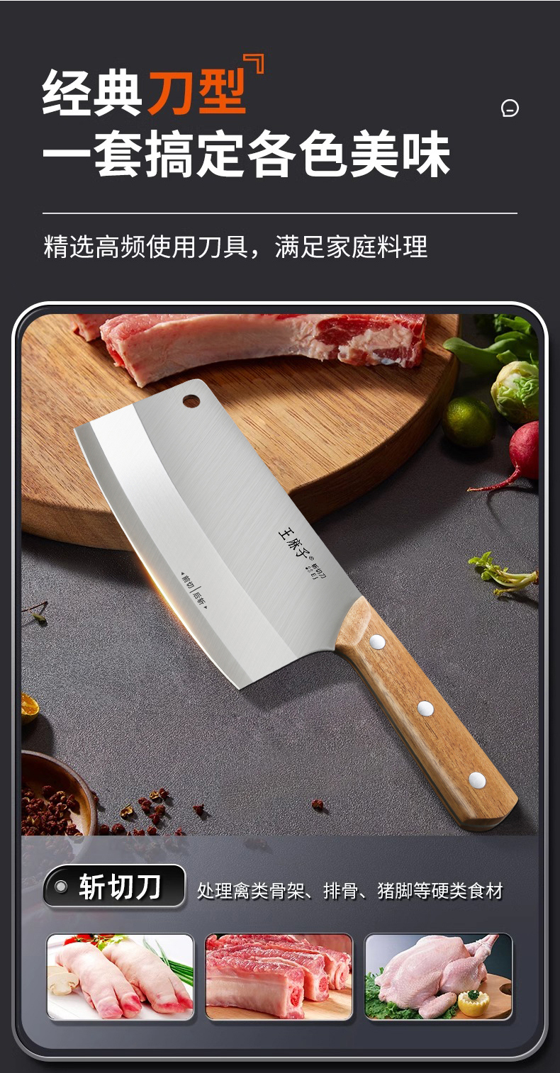 王麻子菜刀家用刀具厨房专用片肉切菜砍骨斩切锋利切丝不锈钢厨刀