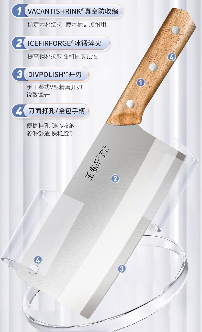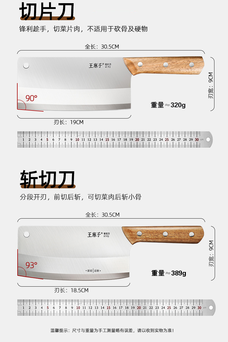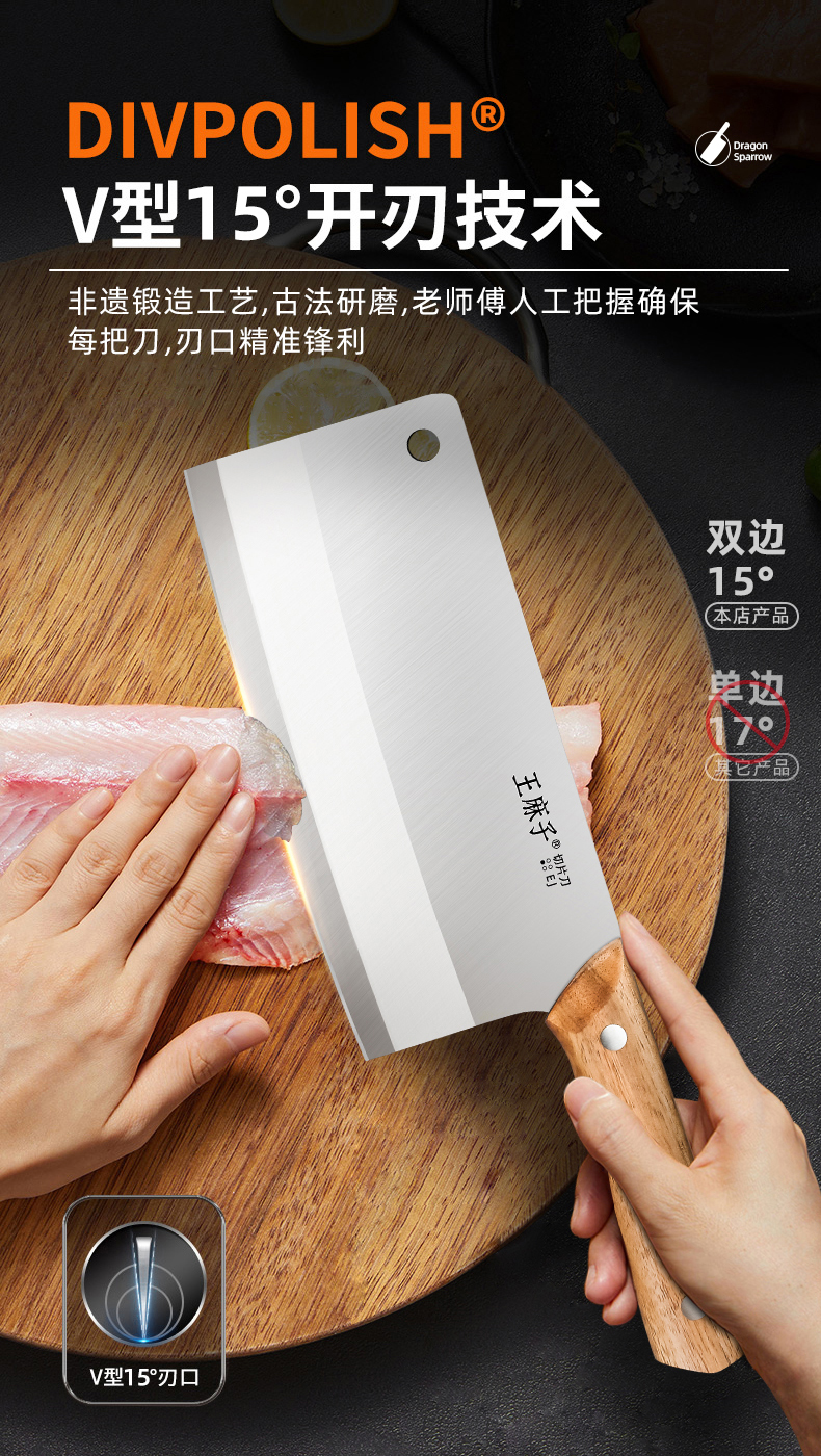 王麻子菜刀家用刀具厨房专用片肉切菜砍骨斩切锋利切丝不锈钢厨刀