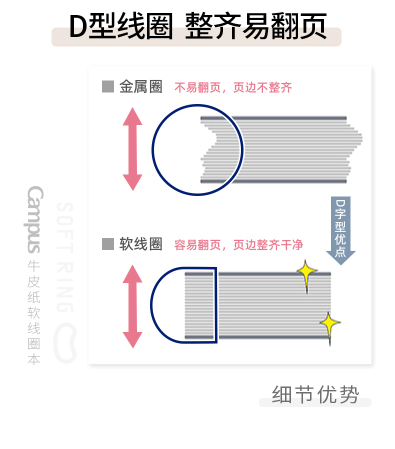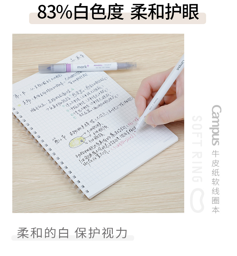 日本国誉牛皮纸软线圈本不硌手campus笔记本子横线方格活页记事本