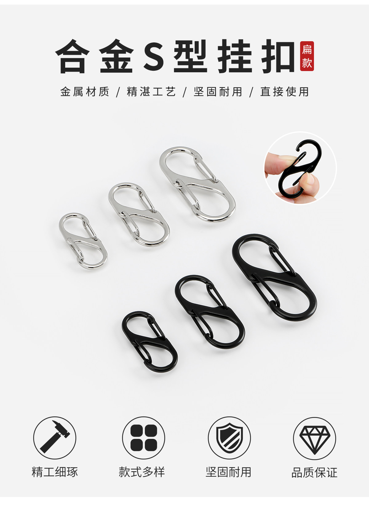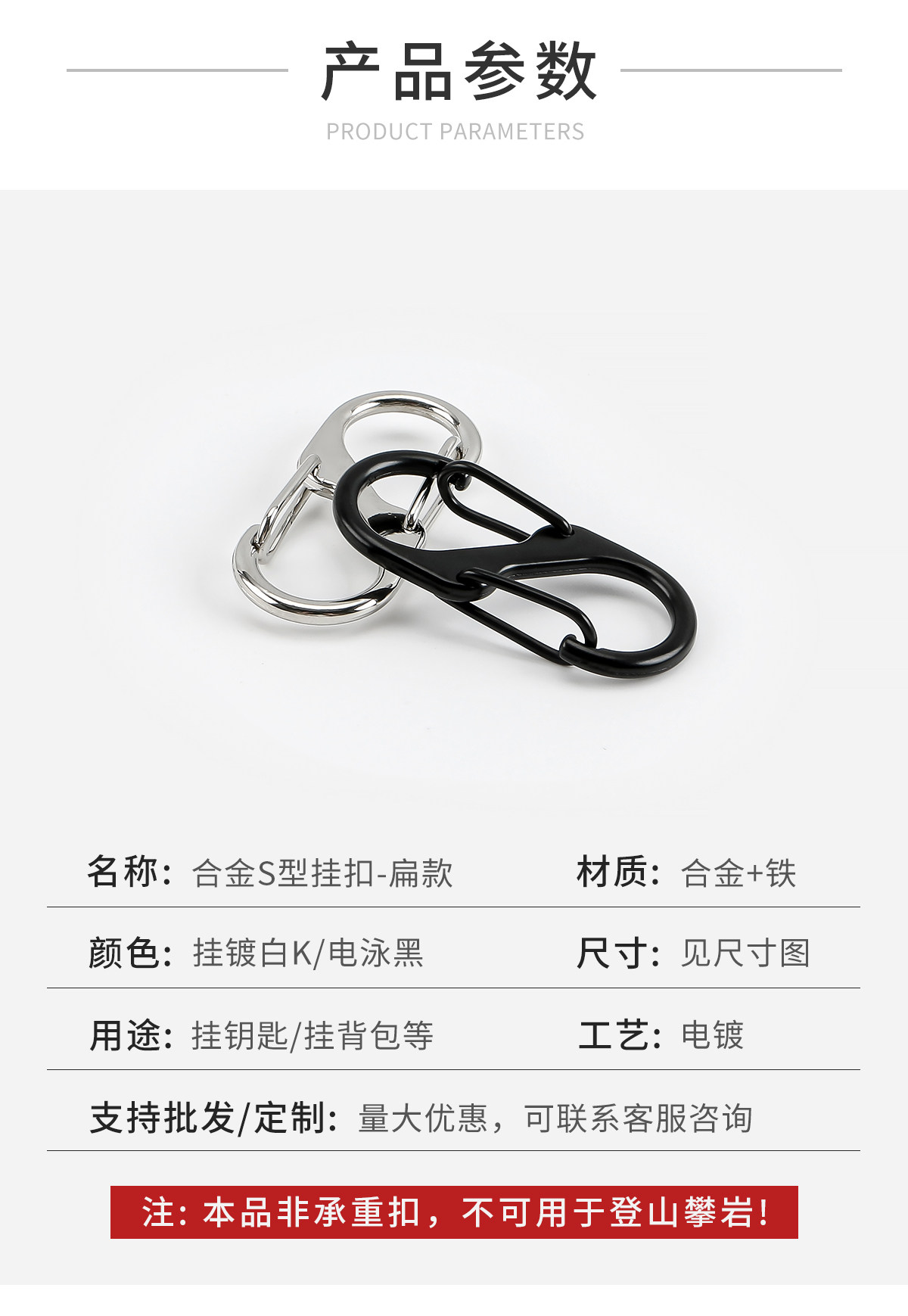 S型登山扣户外旅行露营多功能挂钩箱包挂扣不锈铁异形双挂扣8字扣