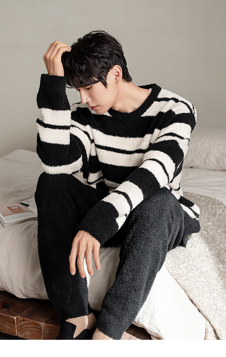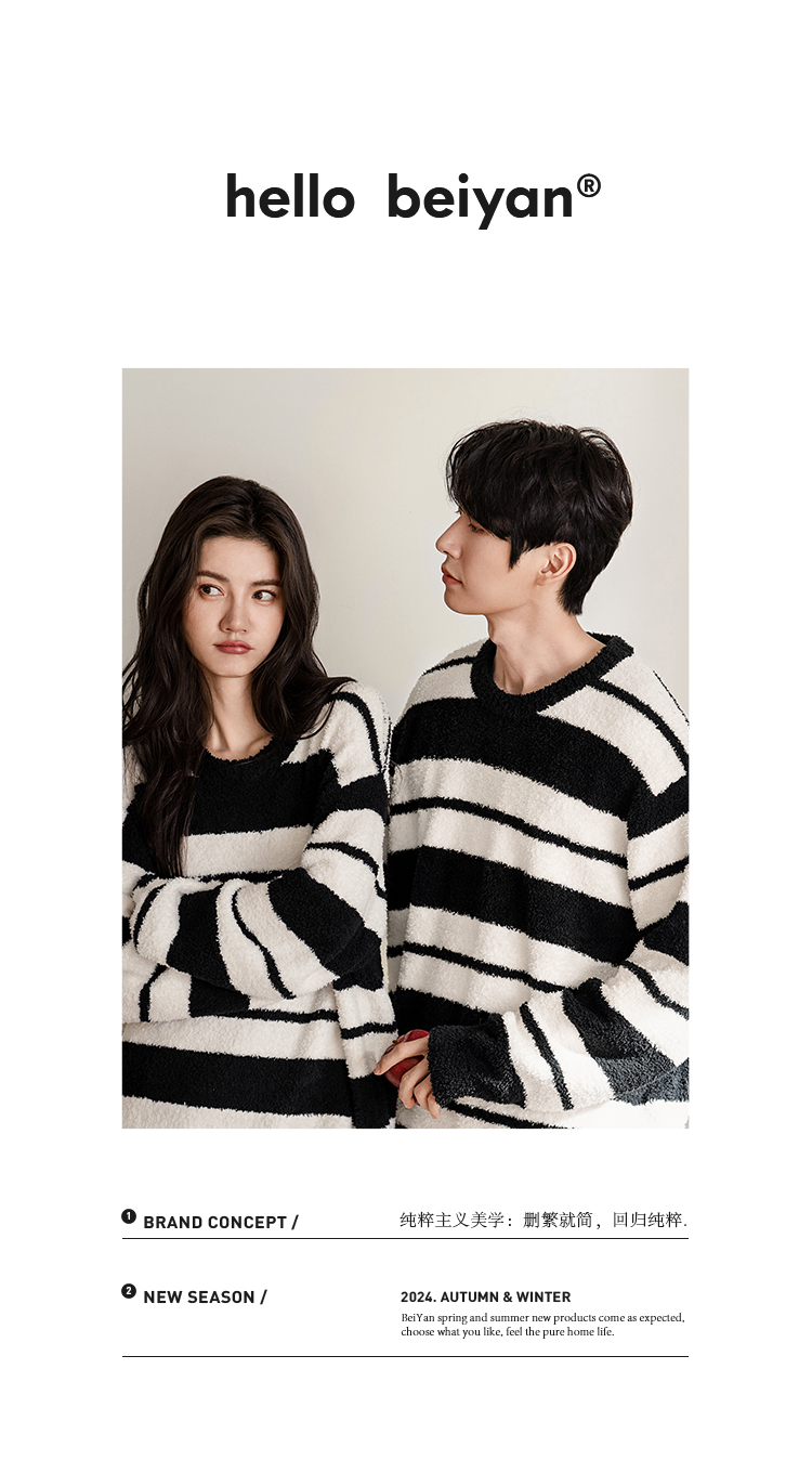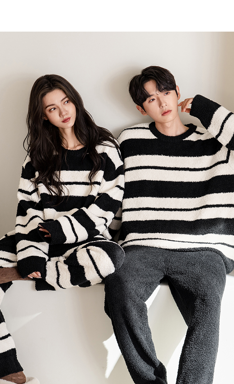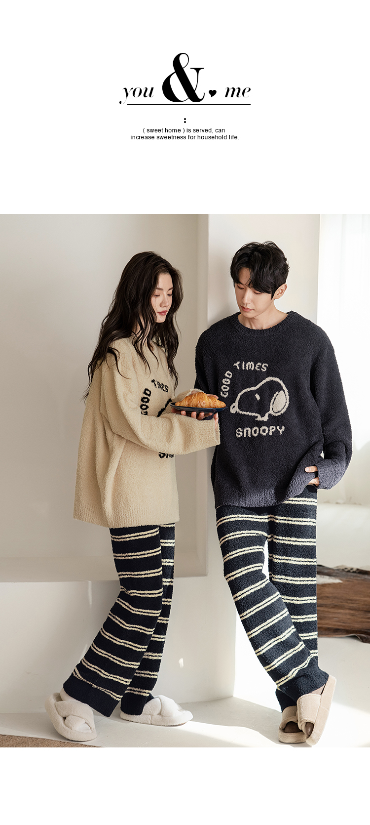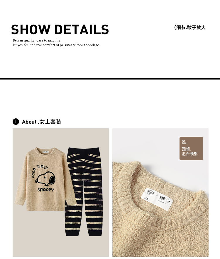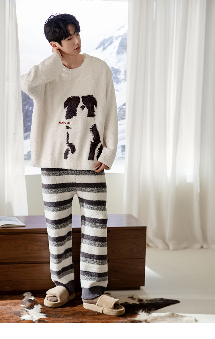 贝妍秋冬季珊瑚绒情侣睡衣女史努比保暖家居服宽松男士半边绒套装
